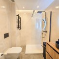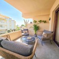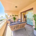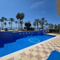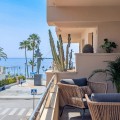- This luxurious 2 bedroom 2 bathroom apartment located in the prestigious beachfront urbanization in San Pedro has been completely transformed with top-quality renovations, offering a modern and sophisticated living experience. Every aspect of the home has been upgraded, including a brand-new water system and electrical wiring throughout. The kitchen is a chef's dream, featuring sleek, high-end furniture from Germany and the latest Bosch appliances, including a 21-bottle wine cooler, dishwasher for 12, induction cooktop, oven, and microwave. State-of-the-art sensor-activated cabinets add a touch of innovation, while a Philips drinking water filtration system ensures convenience and health. The apartment offers luxurious comfort with heated floors in both bathrooms, and a master switch controls all the lights and outlets, giving you complete control over your space. A central air conditioning system keeps the entire apartment cool, and a built-in safe and digital peephole provide additional security. For ultimate ease, a robotic vacuum cleaner takes care of the floors, and the apartment comes with a two-year warranty on all furniture, appliances, and renovations. This is a rare opportunity to own a fully renovated, high-end property in one of the most sought-after beachfront locations, where modern luxury meets coastal serenity.