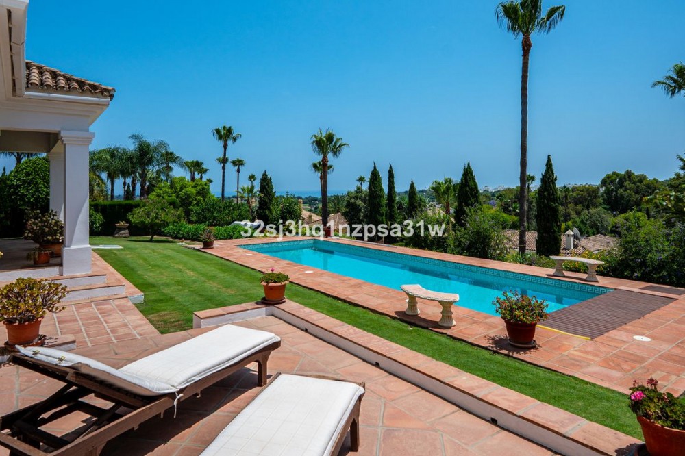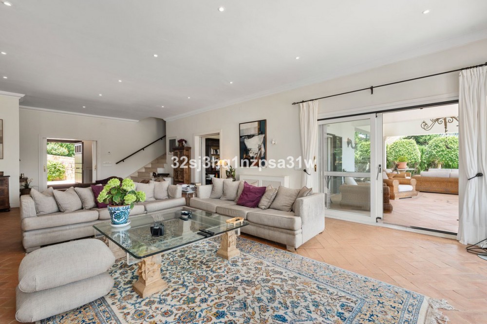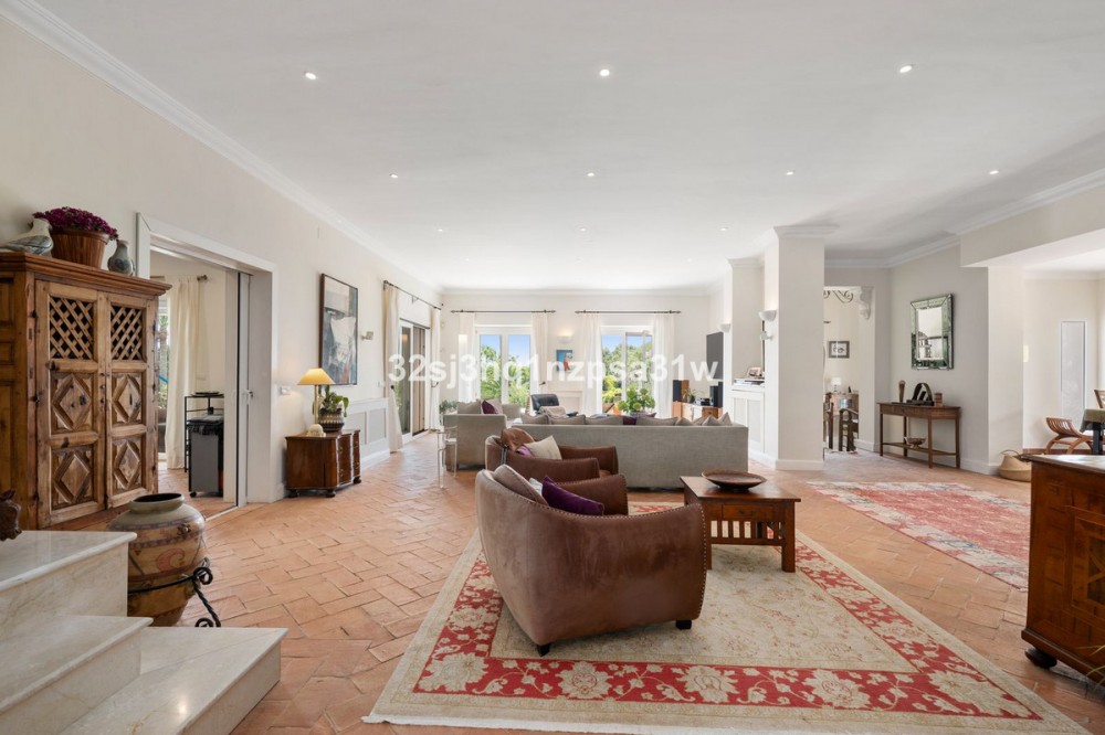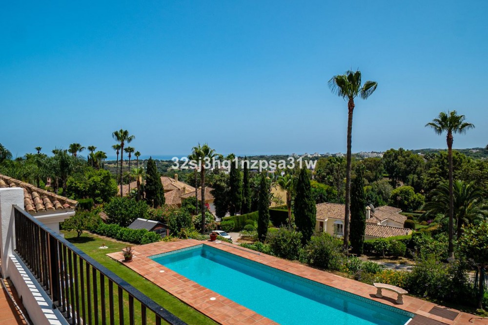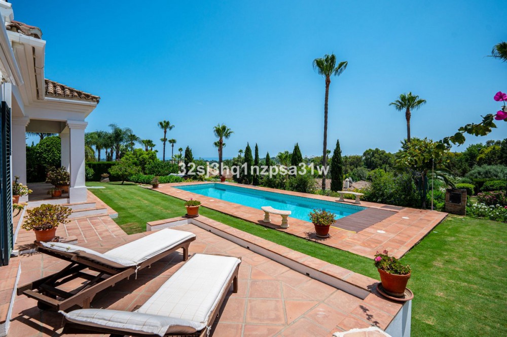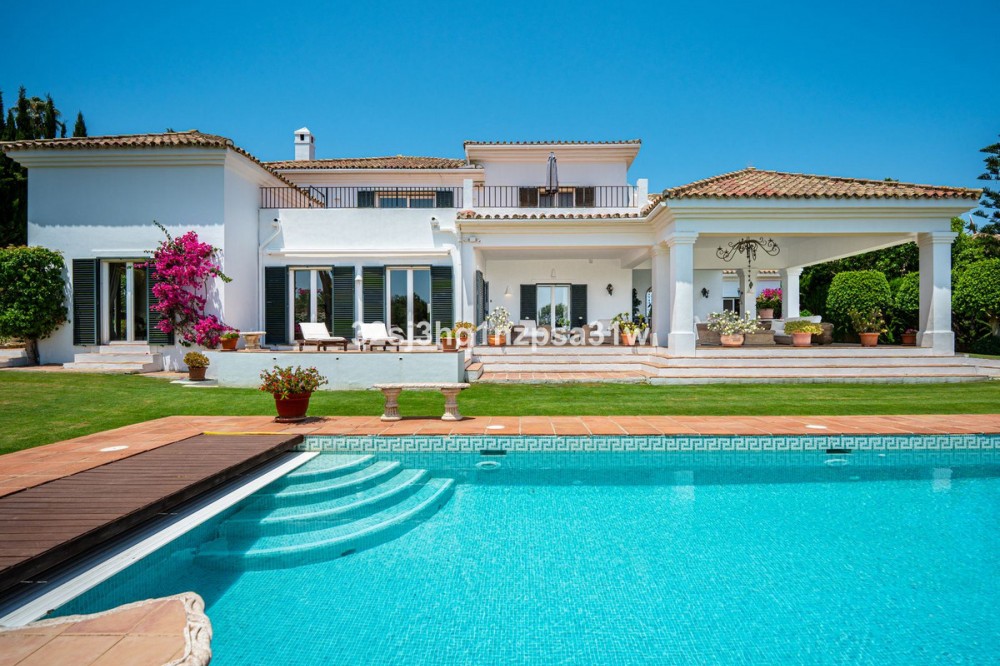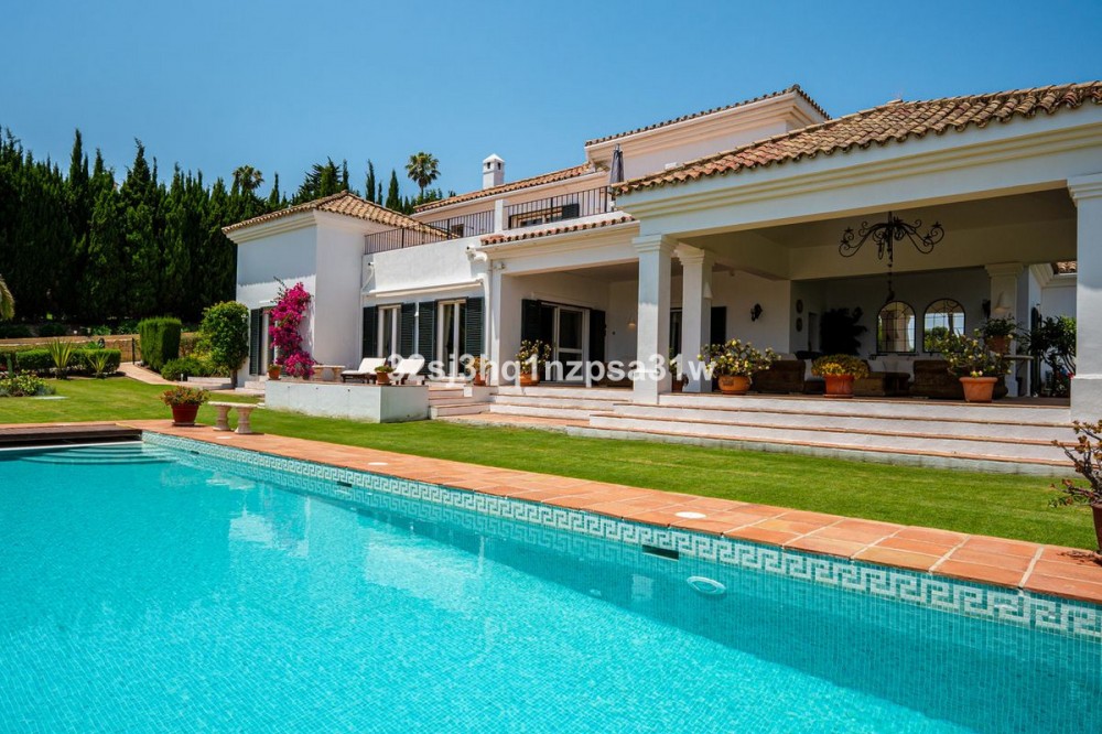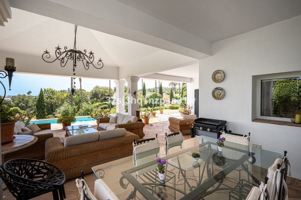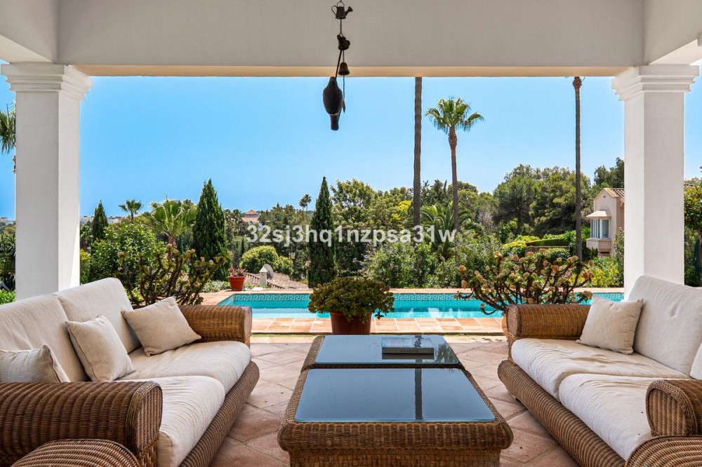 - EXCLUSIVE PROPERTY This stunning south-facing villa with pool, sea & golf views is located in Sotogrande Alto, set on a 2,090 m² plot with 622 m² of built area. It boasts breathtaking sea views and enjoys a prime location near the SO-Hotel, Real Club de Golf Valderrama, and Sotogrande International School. The property features 5 bedrooms, including a spacious master suite on the upper floor with fireplace, en-suite bathroom, dressing room, and private terrace. Three additional en-suite bedrooms are located on the ground floor, along with an independent guest/staff apartment with bedroom, bathroom, and kitchenette. Bright and generous living spaces include a lounge, an elegant dining area, and a TV room with vaulted ceiling. Outside, a covered terrace, long heated pool, and landscaped garden provide the perfect setting for year-round enjoyment. A double garage, ample parking space, and a well-designed layout complete this charming villa that combines comfort, privacy, and timeless Andalusian style.