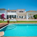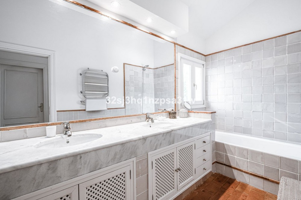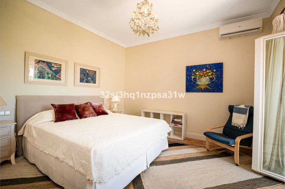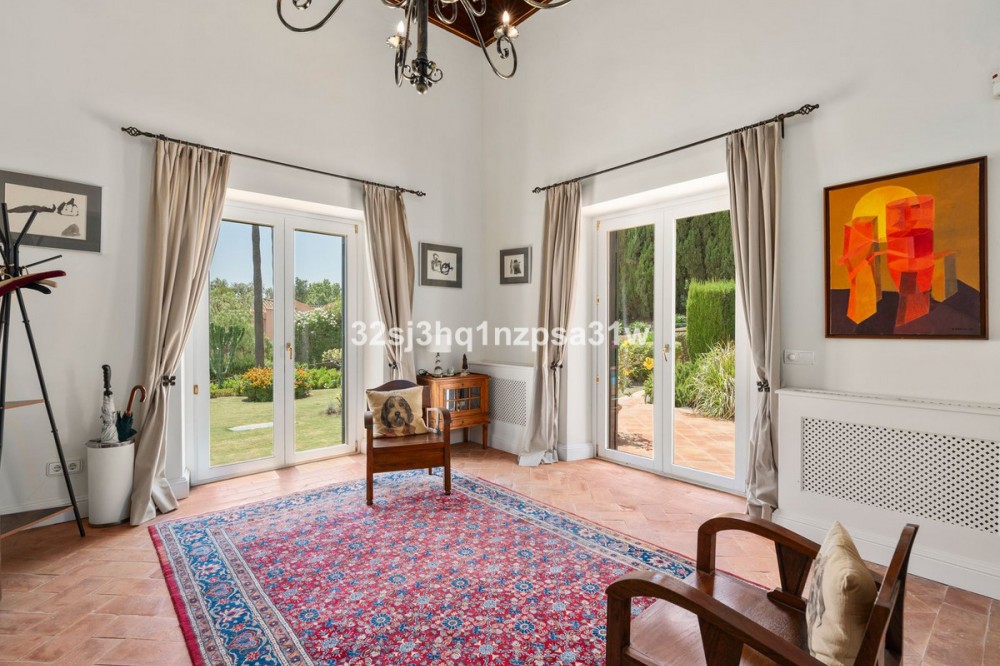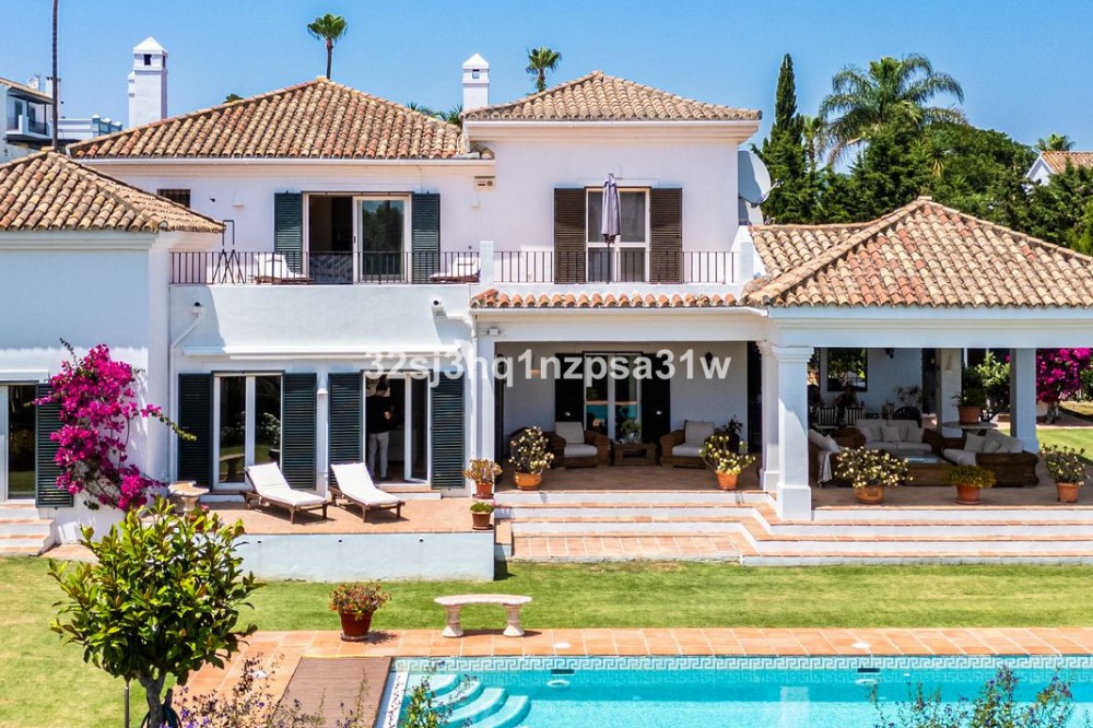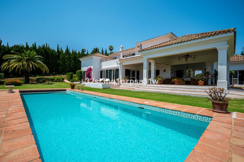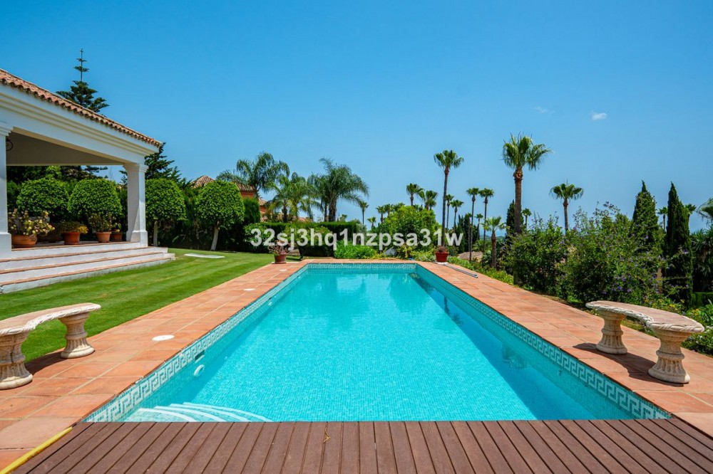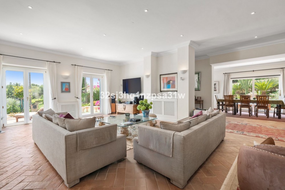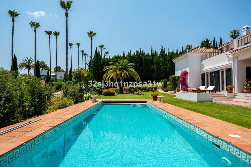 - EXCLUSIVE PROPERTY This stunning south-facing villa with pool, sea & golf views is located in Sotogrande Alto, set on a 2,090 m² plot with 622 m² of built area. It boasts breathtaking sea views and enjoys a prime location near the SO-Hotel, Real Club de Golf Valderrama, and Sotogrande International School. The property features 5 bedrooms, including a spacious master suite on the upper floor with fireplace, en-suite bathroom, dressing room, and private terrace. Three additional en-suite bedrooms are located on the ground floor, along with an independent guest/staff apartment with bedroom, bathroom, and kitchenette. Bright and generous living spaces include a lounge, an elegant dining area, and a TV room with vaulted ceiling. Outside, a covered terrace, long heated pool, and landscaped garden provide the perfect setting for year-round enjoyment. A double garage, ample parking space, and a well-designed layout complete this charming villa that combines comfort, privacy, and timeless Andalusian style.
