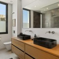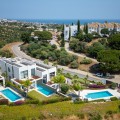 - This stunning semi-detached villa offers panoramic views of the Mediterranean Sea and the lush Cabopino Golf Course, set within the exclusive gated community of Green Hill Marbella. Surrounded by rolling Andalusian hills, the home blends sleek modern design with natural surroundings, creating a private oasis of luxury and tranquility. The heart of the home is a beautifully designed open-plan kitchen and living area. Upstairs, three bedrooms await, including a luxurious master suite with a private balcony, walk-in closet, and spa-like ensuite bathroom. The two additional bedrooms share a bathroom. The lower level, set at street level and includes access to a versatile garage/storage space. Outdoors, the private garden and pool area create a serene setting for relaxation and entertaining. Enjoy sea views from the BBQ area, dine al fresco under the Marbella Sun. The small pool is heated and partially shaded for comfort, and the irrigation system keeps the garden lush year-round. Located in Marbella East’s sought-after Cabopino area—famous for its marina, sandy beaches, and top golf courses—this property offers a perfect blend of relaxed coastal living and upscale convenience. Whether as a permanent home or a high-end rental investment, it delivers luxury, privacy, and location in equal measure