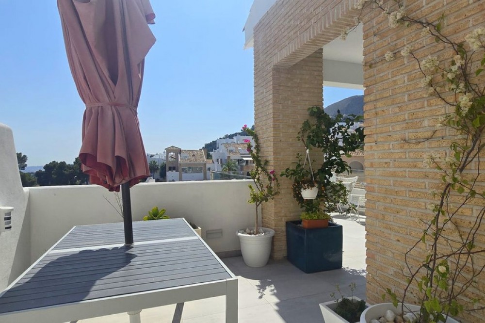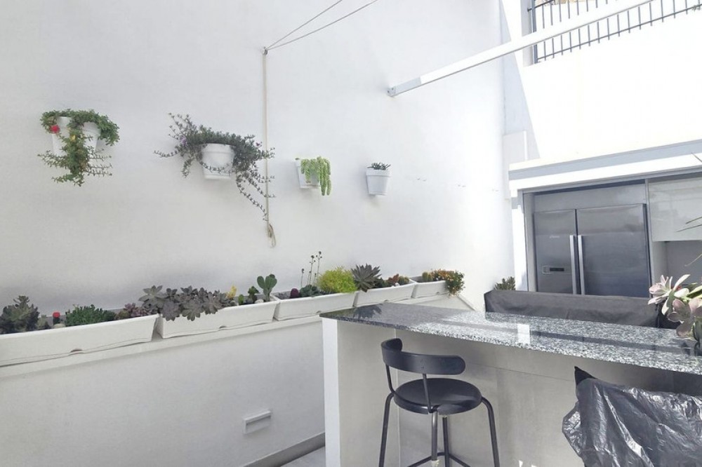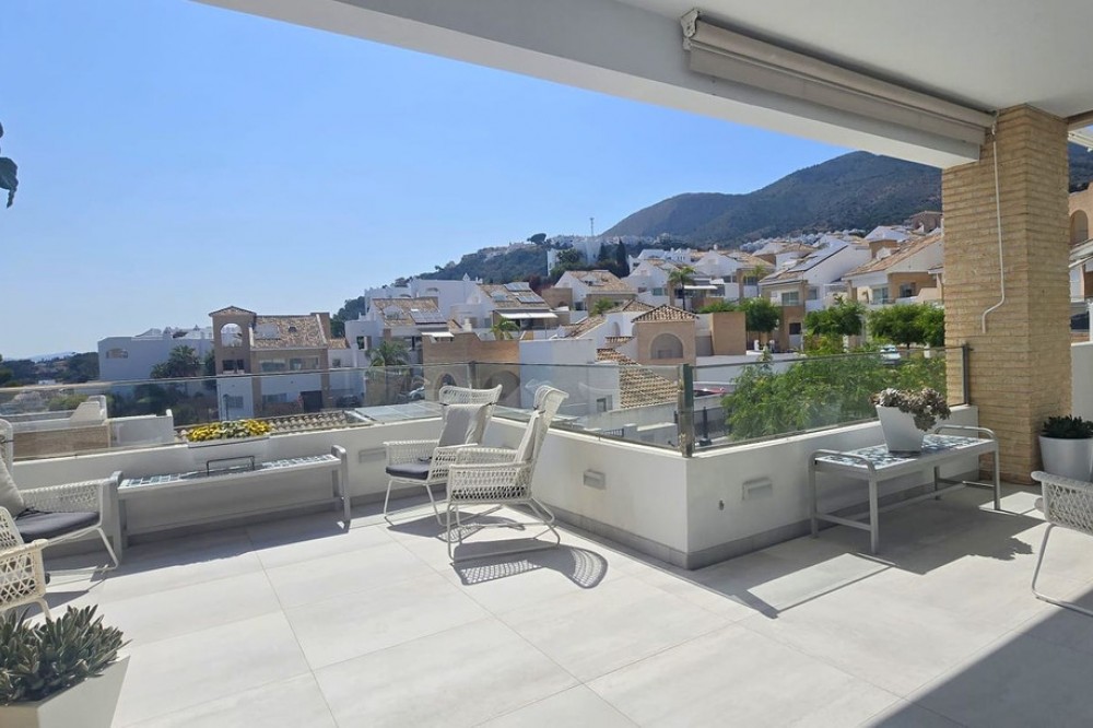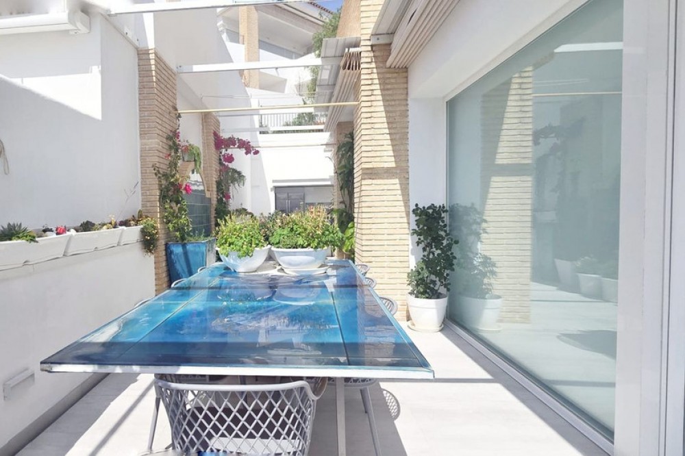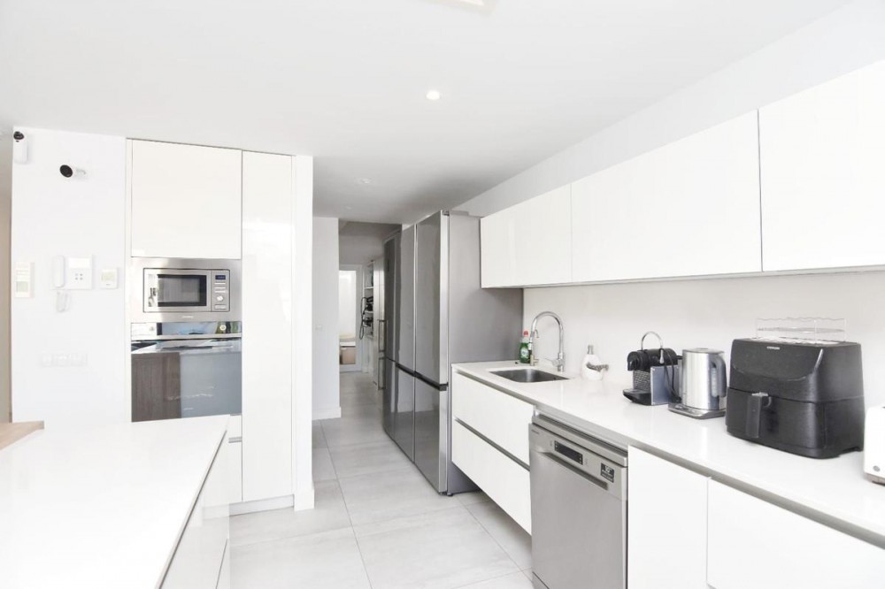 - Contemporary detached villa of 360 m² built in Benalmádena Pueblo, in the prestigious residential area of Torremuelle. It is a house built in 2017, it is in an unbeatable condition and consists of 2 kitchens + 1 bar area, 2 living rooms, a private lift, 3 terraces with spectacular sea views, direct access to the social club and pool area, underfloor heating, air conditioning and solar panels. We present this beautiful and exclusive house of 309 m2, distributed over 3 floors connected by lift, enjoys a modern and functional design and lots of natural light. The property has a fully equipped modern kitchen with a large island and an outdoor kitchen with barbecue, 2 living rooms, 3 bedrooms, all with en-suite bathrooms, 1 guest toilet, 3 terraces, 1 private patio, a closed garage for 2 cars, storage room and photovoltaic panels that significantly reduce electricity consumption. All within the prestigious Big Blue urbanisation, in Torremuelle, Benalmádena Pueblo, with a fantastic communal swimming pool, residents gym, social club and security system. The sea views with the peaceful and green surroundings are truly spectacular, present from several rooms of the house and its terraces, which makes this property a unique place to enjoy the sun and tranquillity all year round. Layout: ???? Access floor (street level): Upon entering we are greeted by a bright and spacious living room with an elegant modern-style bar area and access to a private terrace. This floor houses the spacious and comfortable master bedroom with a dressing room and en-suite bathroom, as well as a second bedroom also with en-suite bathroom. Here you will find the access to the garage for 2 cars and the entrance to the lift that connects the whole house. ???? First floor (main floor): This floor houses the heart of the house: a very spacious open concept living room, with direct access to a spectacular terrace that surrounds the entire house. The interior is divided into several well-defined areas: dining area, relaxation area, reading corner and large open-plan living room with plenty of natural light. The spacious and modern interior kitchen is fully equipped and includes a pantry and separate laundry area. From the living room there is access to the south-west facing terrace with beautiful sea views. On one of its sides there is an outdoor kitchen next to the barbecue area, ideal for celebrations or outdoor meals. Also from this floor there is access to a cosy private patio. ???? Upper floor (third floor): On this level there is a third bedroom suite with dressing room, private bathroom and access to a large terrace with panoramic sea views. From this terrace there is direct access to the communal areas of the urbanization, such as the swimming pool and the social club, which makes this level a perfect space for relaxing, teleworking or receiving guests with total independence. Located in one of the most sought after areas of the Costa del Sol, the property is within a 15 minute walk to the local train station and the beach. With easy access to the picturesque centre of Benalmádena Pueblo with its exquisite restaurants and charming cobbled streets, this property represents a unique opportunity for those seeking a luxury, efficient home with views to fall in love with, where design, location and quality come together in perfection. The house has been tastefully renovated and decorated, incorporating high quality materials such as porcelain stoneware floors, underfloor heating, modern energy efficient systems and architectural solutions that elevate comfort and style.
