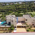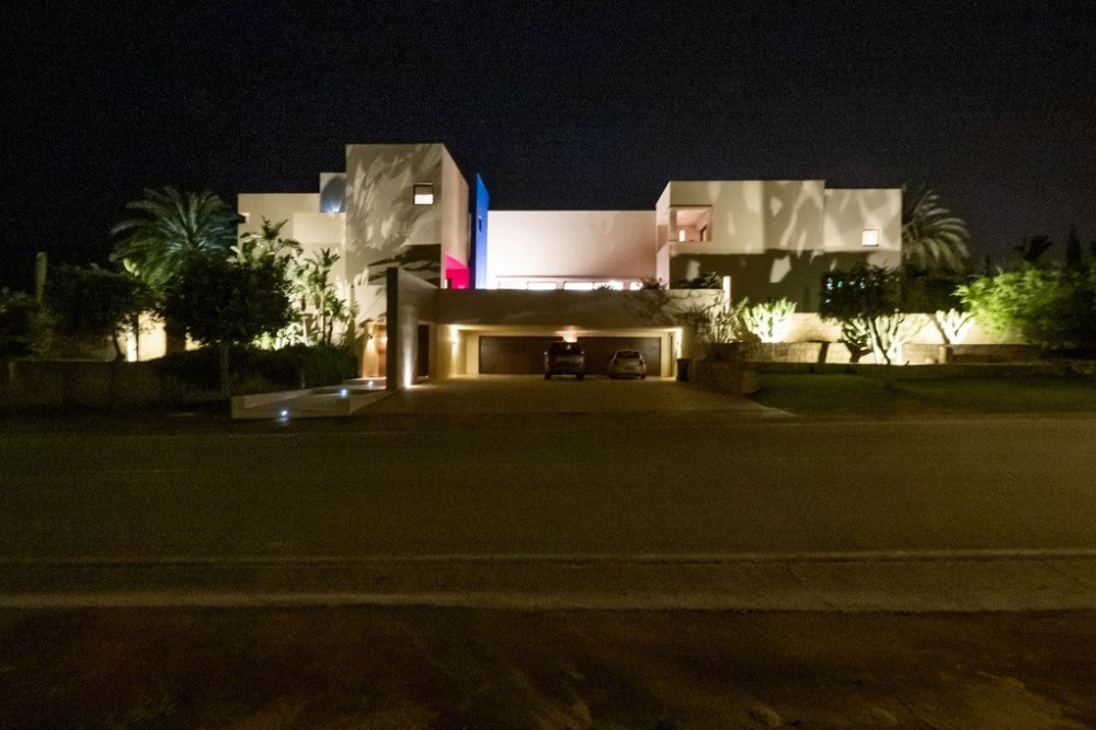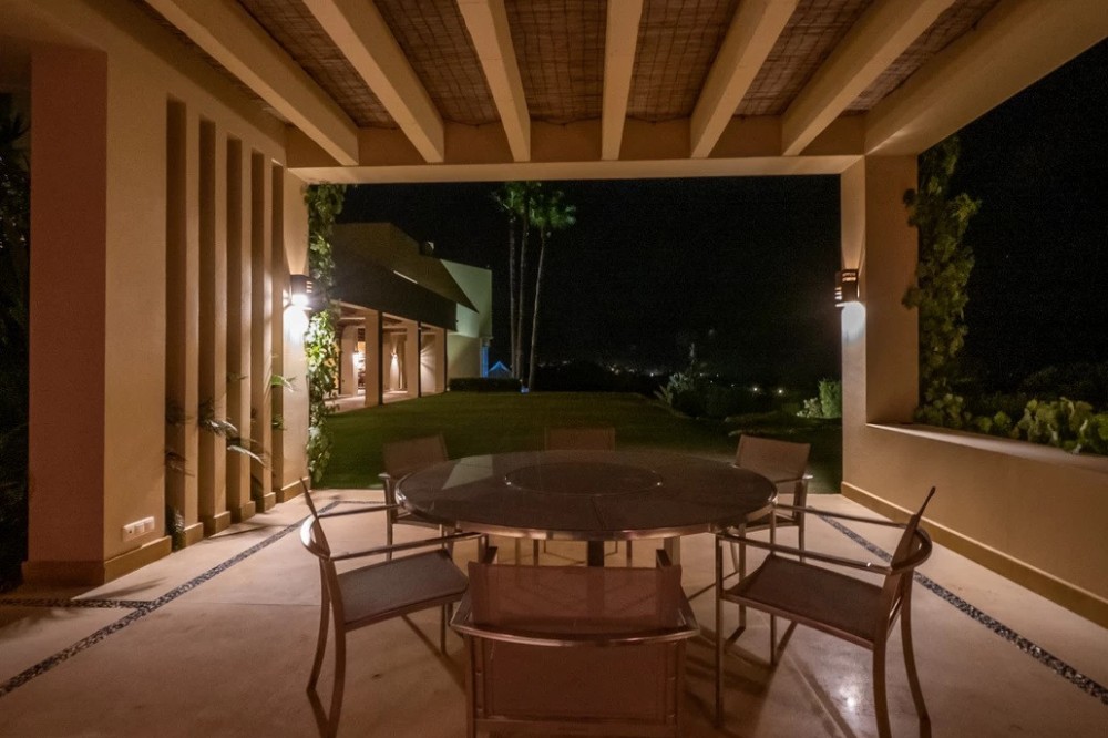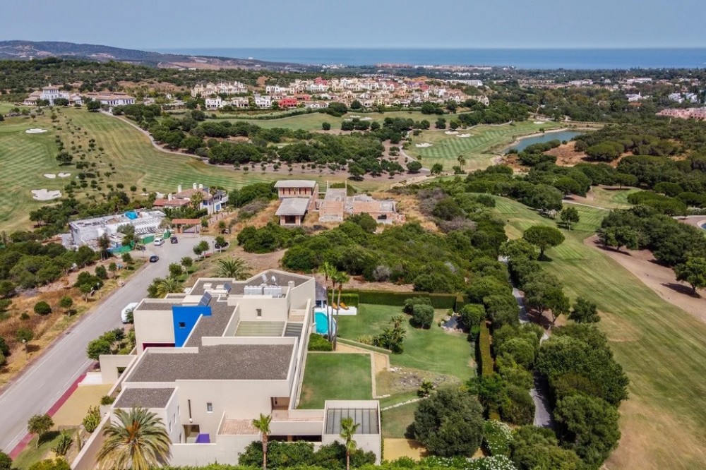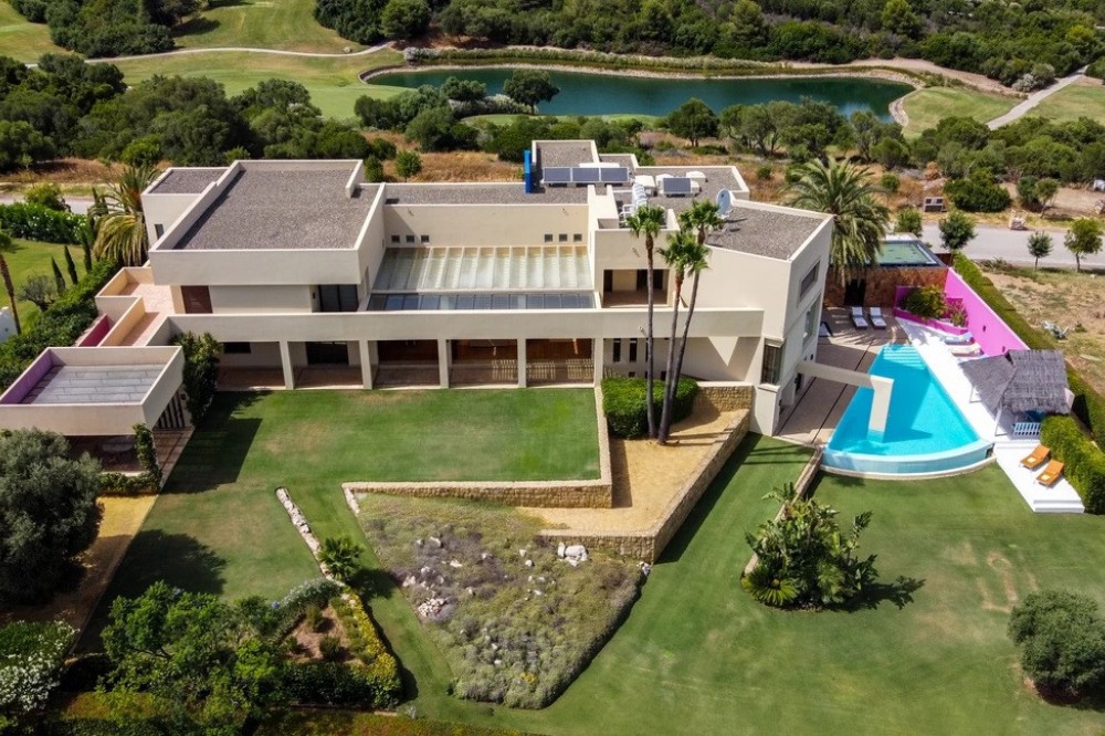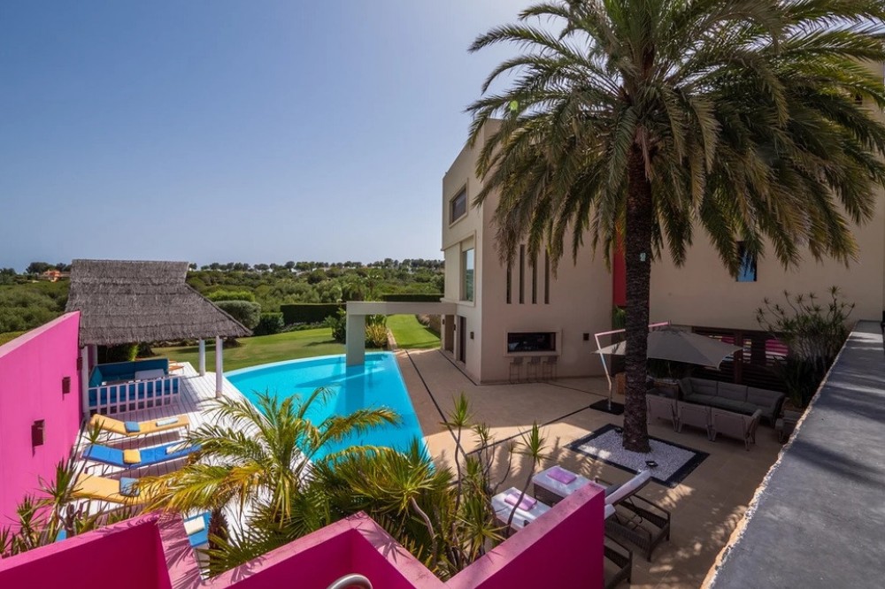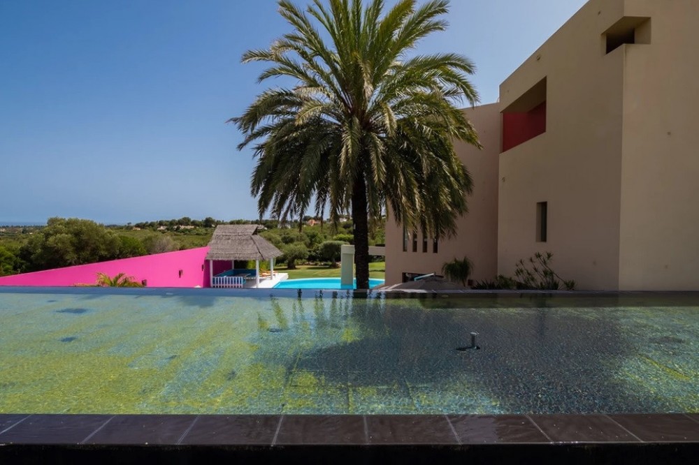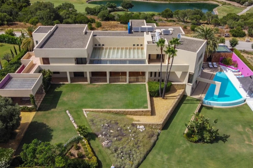 - Unique luxury mansion located south facing the extensive coastline with splendid views to the sea and the African border and surrounded by the famous 18 holes golf course La Reserva de Sotogrande and next to the Valderrama championship course. Designed and decorated by renowned architects and designers, it comprises, on the ground floor: a long corridor/gallery connecting the east wing with the tremendous living area and the study to the west wing's dining area. Sliding doors separating the dining room and the spacious kitchen with top-of-the-line equipment. Behind is the wet kitchen with a walk-in freezer, larder room, separate laundry room and the designed guest washroom. The upper floor consists of all the 5 bedrooms with en-suite bathrooms. The east wing is reserved for the master suite, consisting of the bedroom with panoramic window to the sea, rising TV screen in front of the bed, en-suite bathroom with terrace and outdoor shower. The walk-in closet is custom designed with wooden cabinets. The lower floor consists of one side of the house for housekeeping quarters with living room, kitchenette and separate toilet, bedroom, bathroom and spacious patio. In between is a 6-car garage and hobby room. The south side has a cinema room, massage room, wine cellar, pool/bar room as well as an extensive gym area, inside jacuzzi, Klafs Swedish sauna with infrared. The main rooms, decorated with the nicest Georgetti furniture and kitchen all have access to the outdoor with certain areas having the Barragan-specific strong colours. Bright walls accentuate the space on the terraces near the Koi pond and the sun protected outside BBQ area, which connects to a split-level garden with fountain and strong colour wall surrounding, protected to wind and offering total privacy. The infinity swimming pool with stunning Siccis mosaic, IPE wooden terrace and Mexican style hut. The most dramatic style part of this mansion is the spacious outdoor living area with glass roof and electric sculpted lattice shutters which play with ever changing quality of light and shade from roof and front part separating the garden without taking away the sea view. This one-of-a-kind villa is located in Sotogrande, in the South of Spain, close to Marbella, Malaga and Gibraltar. It is set in a gated residential complex at the end of a cul-de-sac and at the entrance of the world renown Club Reserva de Sotogrande Golf Course. A five-minute drive will bring you to the beach of the Mediterranean Sea and all of its entertainment. Stores, shopping malls and supermarkets are close by. The Málaga International Airport is over an hour's drive away. The adjoining plot is available at the price of 1,000,000 EUR (4,146 m2).