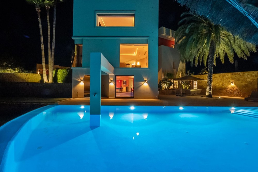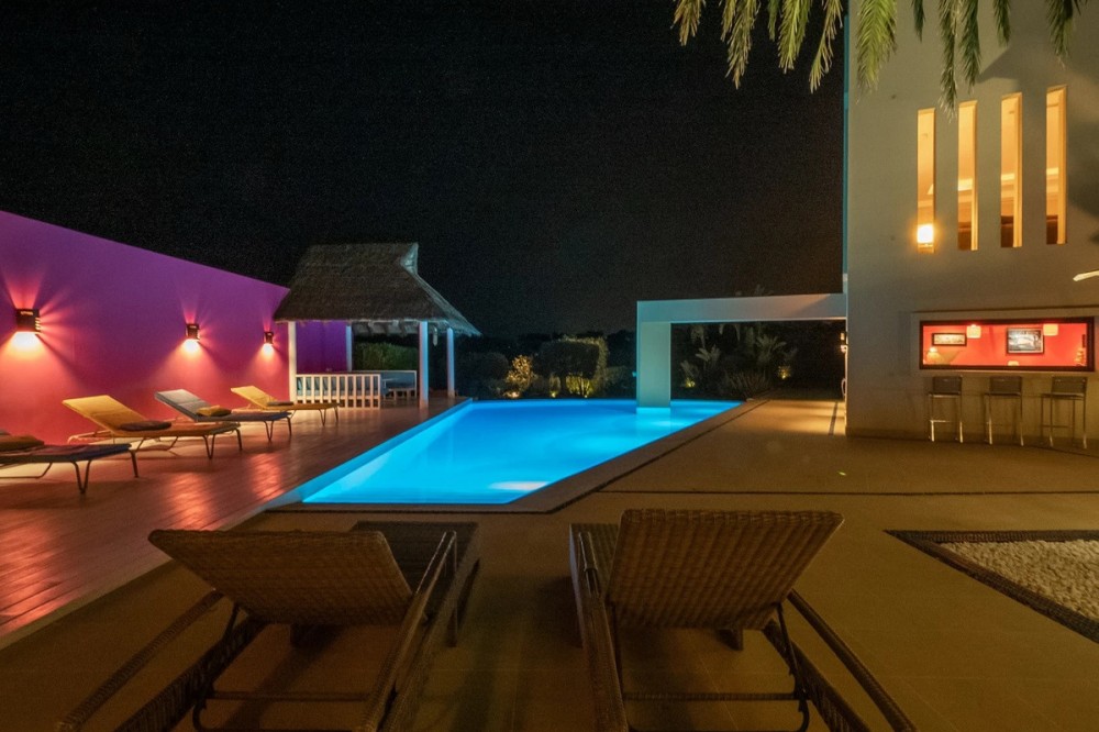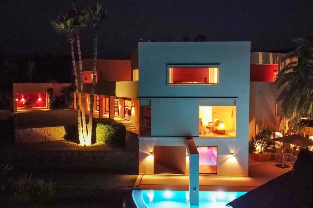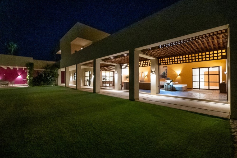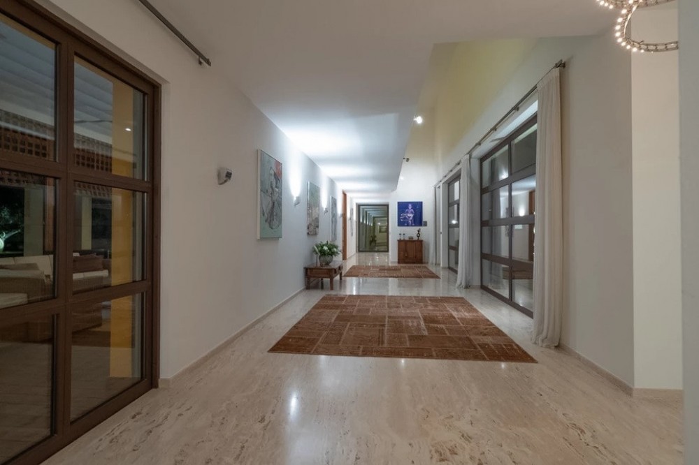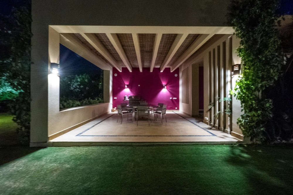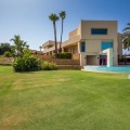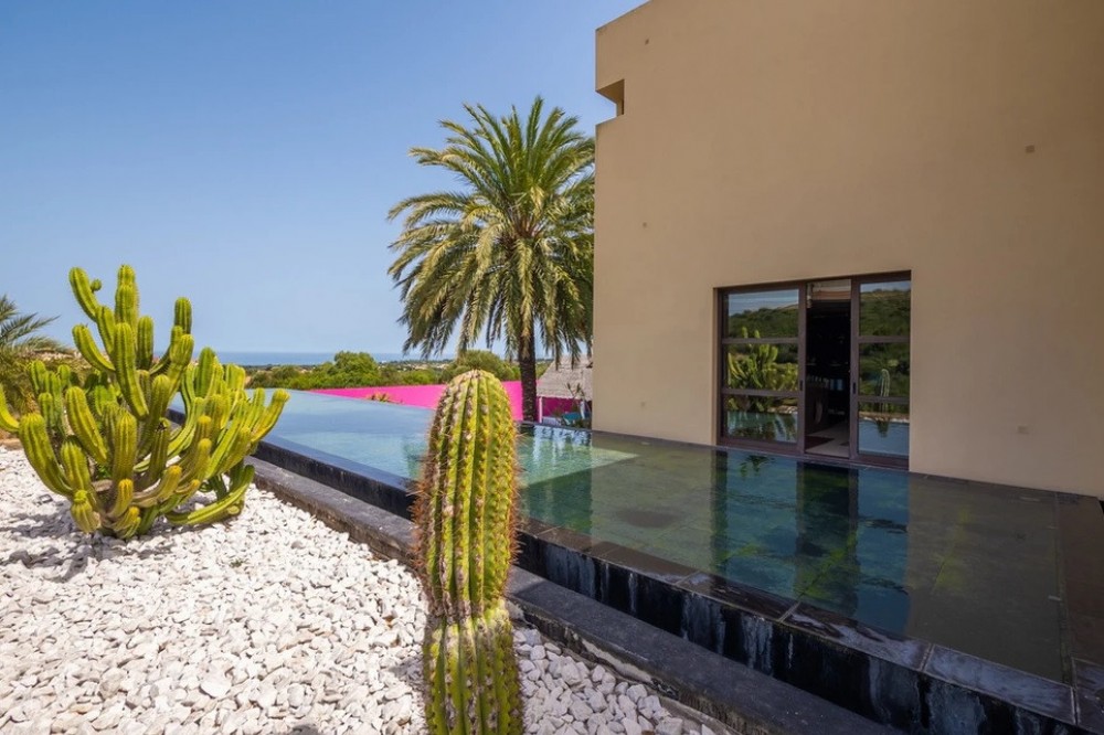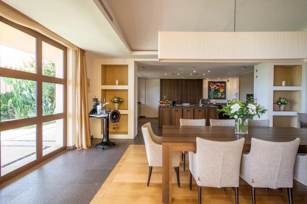 - Unique luxury mansion located south facing the extensive coastline with splendid views to the sea and the African border and surrounded by the famous 18 holes golf course La Reserva de Sotogrande and next to the Valderrama championship course. Designed and decorated by renowned architects and designers, it comprises, on the ground floor: a long corridor/gallery connecting the east wing with the tremendous living area and the study to the west wing's dining area. Sliding doors separating the dining room and the spacious kitchen with top-of-the-line equipment. Behind is the wet kitchen with a walk-in freezer, larder room, separate laundry room and the designed guest washroom. The upper floor consists of all the 5 bedrooms with en-suite bathrooms. The east wing is reserved for the master suite, consisting of the bedroom with panoramic window to the sea, rising TV screen in front of the bed, en-suite bathroom with terrace and outdoor shower. The walk-in closet is custom designed with wooden cabinets. The lower floor consists of one side of the house for housekeeping quarters with living room, kitchenette and separate toilet, bedroom, bathroom and spacious patio. In between is a 6-car garage and hobby room. The south side has a cinema room, massage room, wine cellar, pool/bar room as well as an extensive gym area, inside jacuzzi, Klafs Swedish sauna with infrared. The main rooms, decorated with the nicest Georgetti furniture and kitchen all have access to the outdoor with certain areas having the Barragan-specific strong colours. Bright walls accentuate the space on the terraces near the Koi pond and the sun protected outside BBQ area, which connects to a split-level garden with fountain and strong colour wall surrounding, protected to wind and offering total privacy. The infinity swimming pool with stunning Siccis mosaic, IPE wooden terrace and Mexican style hut. The most dramatic style part of this mansion is the spacious outdoor living area with glass roof and electric sculpted lattice shutters which play with ever changing quality of light and shade from roof and front part separating the garden without taking away the sea view. This one-of-a-kind villa is located in Sotogrande, in the South of Spain, close to Marbella, Malaga and Gibraltar. It is set in a gated residential complex at the end of a cul-de-sac and at the entrance of the world renown Club Reserva de Sotogrande Golf Course. A five-minute drive will bring you to the beach of the Mediterranean Sea and all of its entertainment. Stores, shopping malls and supermarkets are close by. The Málaga International Airport is over an hour's drive away. The adjoining plot is available at the price of 1,000,000 EUR (4,146 m2).