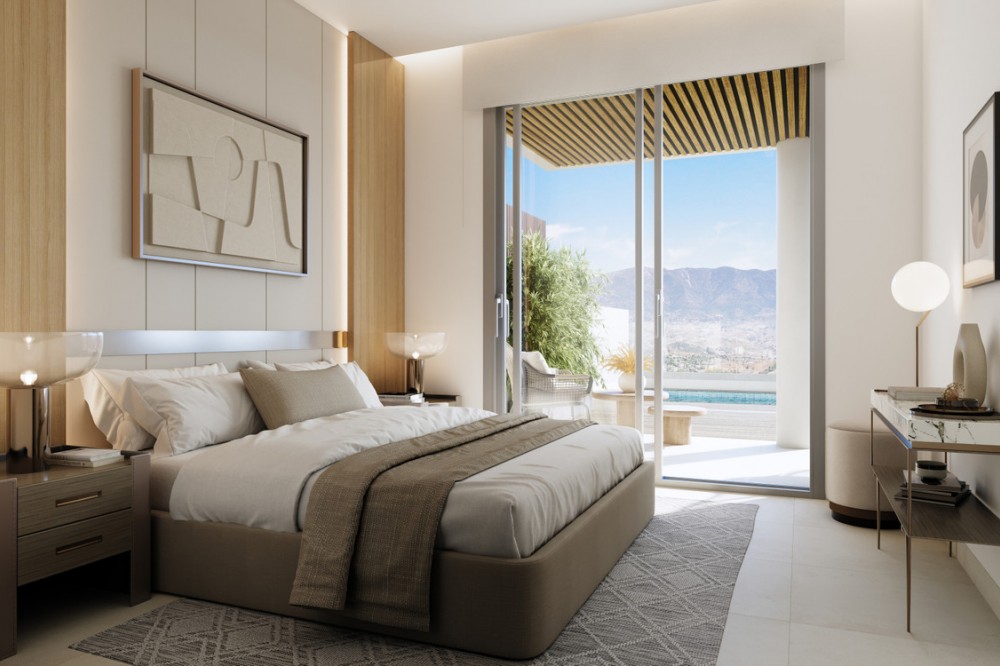 - New Development: Prices from €472,900 to €729,900. [Bedrooms: 2 - 3] [Bathrooms: 2] [Built size: 132m2 - 239m2]. This project is an exclusive new-build urbanization located in La Cala de Mijas, Málaga, Costa del Sol. Designed for those seeking a tranquil lifestyle close to golf. The project consists of 48 modern homes distributed in 4 blocks, with spacious terraces, sea views and situated on the front line of golf. The urbanization offers green spaces, communal pool, leisure areas and 24-hour security, combining comfort, contemporary design and natural surroundings. Its location allows easy access to beaches, local services and top-level golf courses, ideal both for permanent residence and investment.