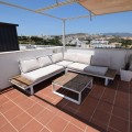 - Fantastic 3 bedroom 2 bathroom penthouse only 11 minutes walk to La Cala beach. Located in the sought after Angel de Miraflores urbanization, this lovely penthouse also has a 70m2 solarium with stunning 360 degree views to enjoy all year round. Internally the property comprises of an lounge/dining room with direct access to the terrace, a semi-open plan kitchen, three double bedrooms, a bathroom and a shower room. From the lounge terrace you have access to the large solarium via a spiral staircase and once on the solarium you can enjoy views in all directions, open and covered seating areas and a sunbathing area. Power and water are supplied to the solarium making it easy for you to create an expansive outdoor living area. Included in the price is a secure, underground parking space and a generous storage room. There are a total of three swimming pools in this community, two large pools and a children's pool. One swimming pool is conveniently located directly behind the block of this penthouse. Lift access from the underground parking area and pedestrian entrance further enhance the appeal of this property.