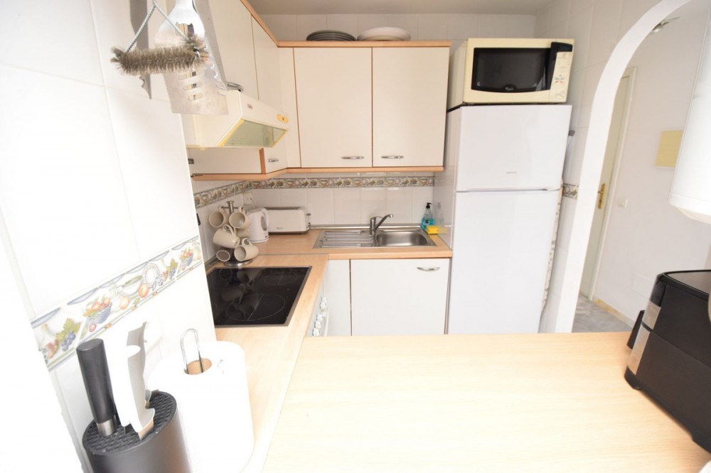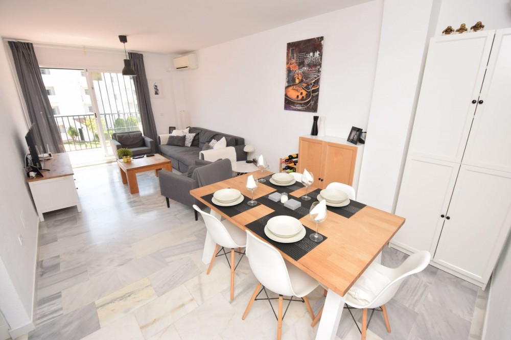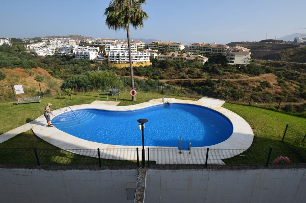 - Fantastic 3 bedroom 2 bathroom penthouse only 11 minutes walk to La Cala beach. Located in the sought after Angel de Miraflores urbanization, this lovely penthouse also has a 70m2 solarium with stunning 360 degree views to enjoy all year round. Internally the property comprises of an lounge/dining room with direct access to the terrace, a semi-open plan kitchen, three double bedrooms, a bathroom and a shower room. From the lounge terrace you have access to the large solarium via a spiral staircase and once on the solarium you can enjoy views in all directions, open and covered seating areas and a sunbathing area. Power and water are supplied to the solarium making it easy for you to create an expansive outdoor living area. Included in the price is a secure, underground parking space and a generous storage room. There are a total of three swimming pools in this community, two large pools and a children's pool. One swimming pool is conveniently located directly behind the block of this penthouse. Lift access from the underground parking area and pedestrian entrance further enhance the appeal of this property.