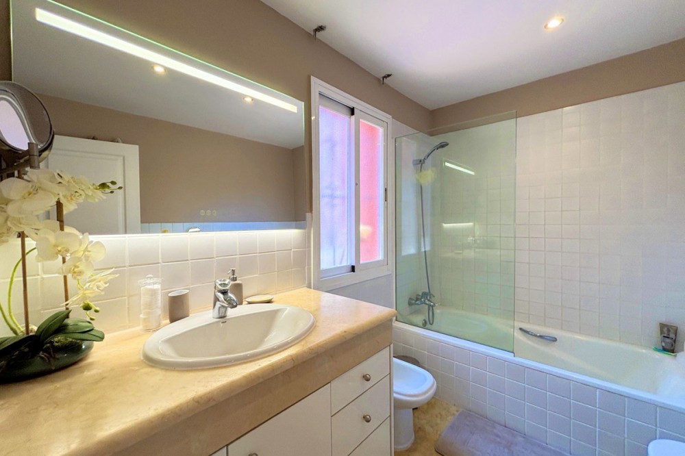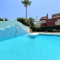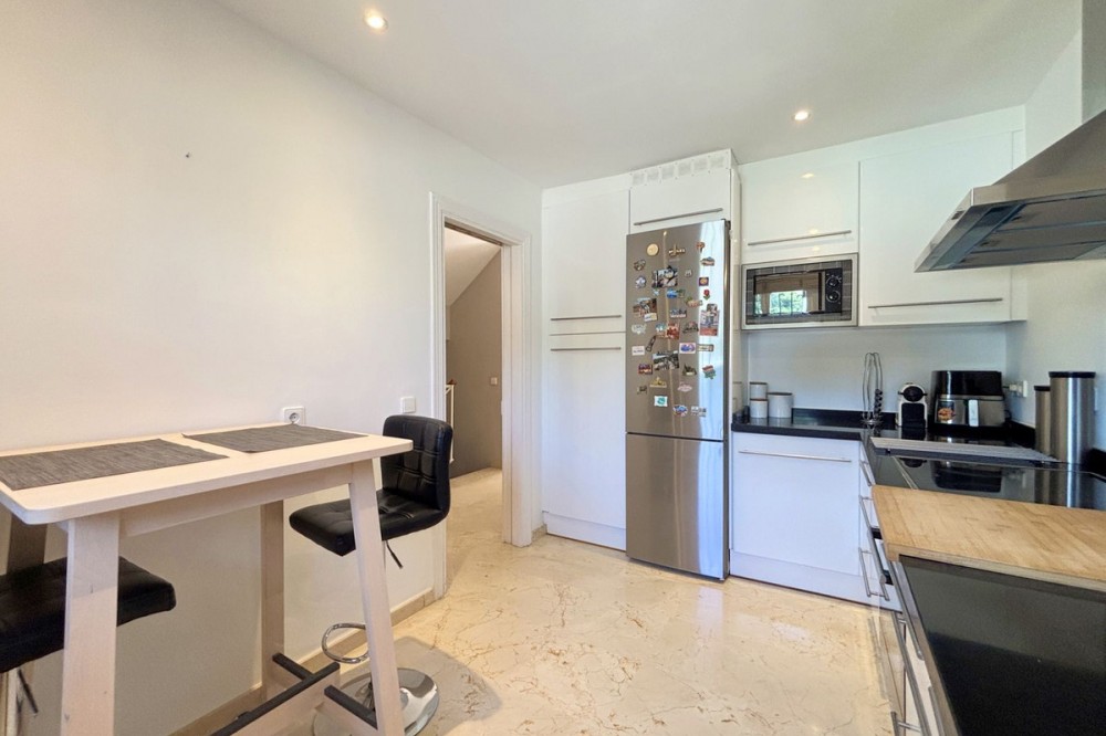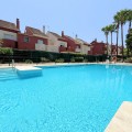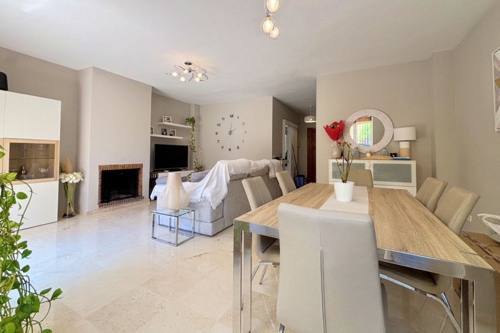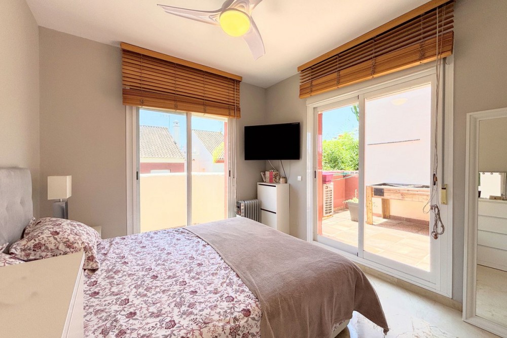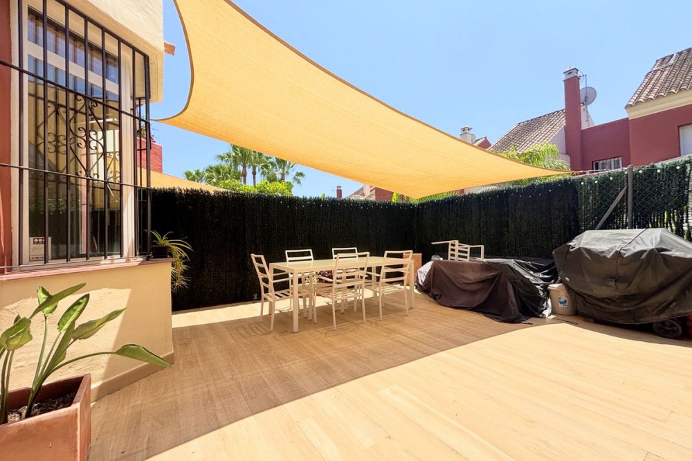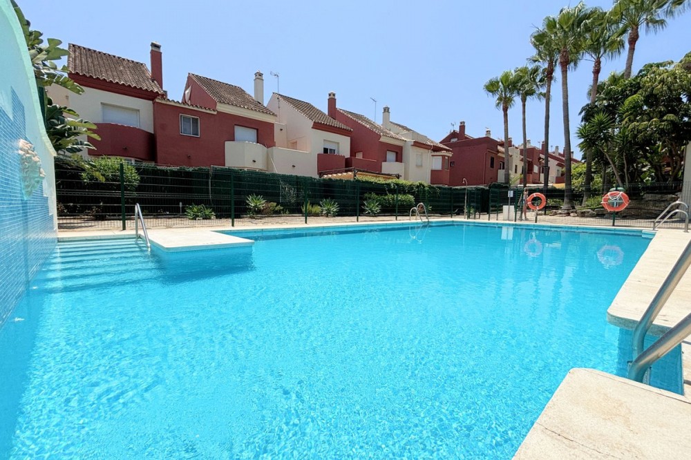 - CHARMING TOWNHOUSE WITH TERRACE, PRIVATE GARAGE, AND SOUTH-FACING ORIENTATION Located in a peaceful residential development in Estepona, just a few minutes' drive from all amenities, shops, and schools, this bright south-facing townhouse is spread over three comfortable levels — perfect for families or as a second home on the Costa del Sol.The basement level features a spacious 53 m² private garage, ideal for both vehicles and storage.The main floor offers a guest toilet, an independent kitchen, and a cozy living-dining room with direct access to a pleasant terrace, which in turn provides easy access to the communal areas and swimming pool — perfect for enjoying the Mediterranean climate.Upstairs, there are three naturally bright bedrooms and a full bathroom; the master bedroom also includes a small private terrace.The community is well-maintained and quiet, with a swimming pool and green areas, all with low maintenance costs.An excellent investment opportunity, whether for year-round living or as a high-yield rental during the peak season.Don’t hesitate to come and visit!