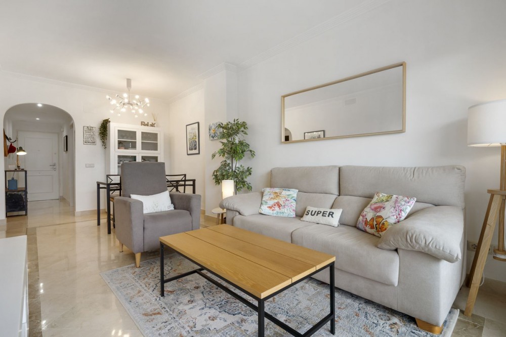 • A beautiful apartment for those who want to live close to both golf and the center of La Cala de Mijas. Because all this is just a few minutes' drive away. The complex is fully gated and has a concierge present. It is very well maintained and has 2 swimming pools, one of which is open all year round and surrounded by beautiful gardens. For sports enthusiasts, there is also a paddle court available. The apartment has a cozy living room that gives access to the terrace. The kitchen is spacious and fully equipped. The apartment has 2 bedrooms and 2 bathrooms, where the master bedroom has an ensuite bathroom and also gives access to the terrace. One bathroom has a shower, and the other bathroom has a bathtub. The apartment is well maintained and suitable for permanent residence, vacation stays, or as an investment. There is a parking space available in the underground garage for 1 car. In short, a perfect apartment at a very interesting price!