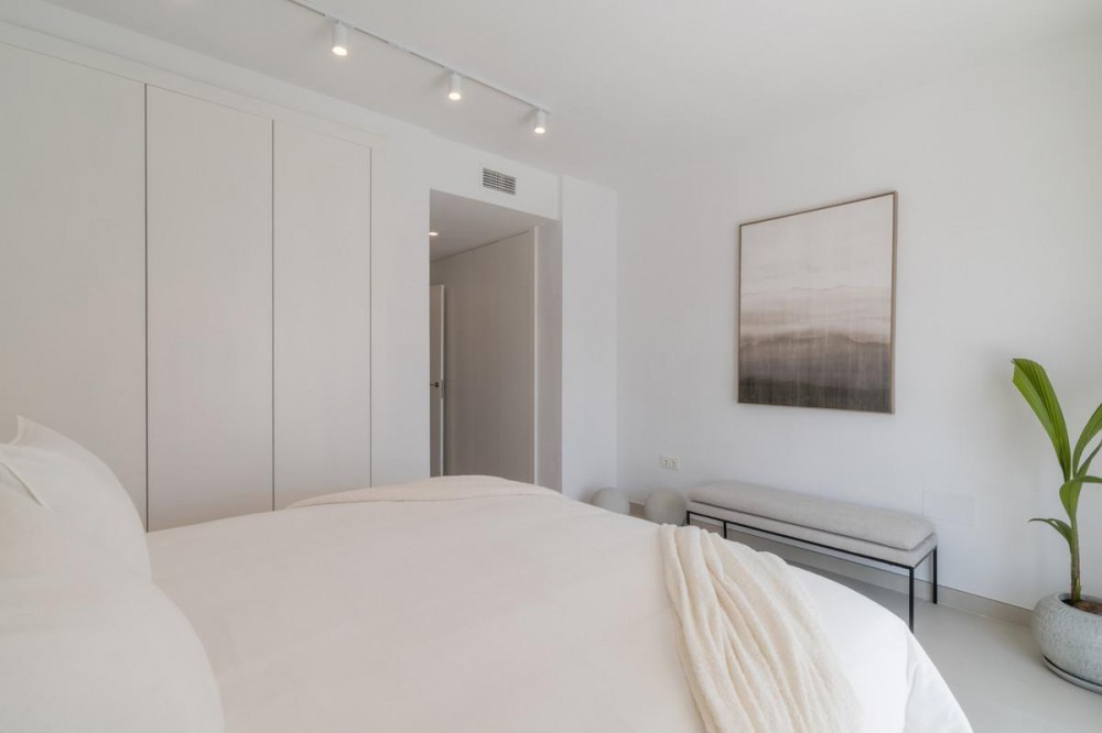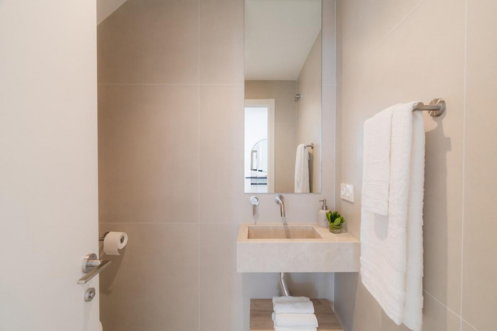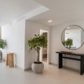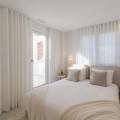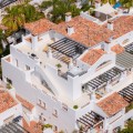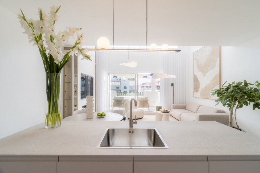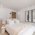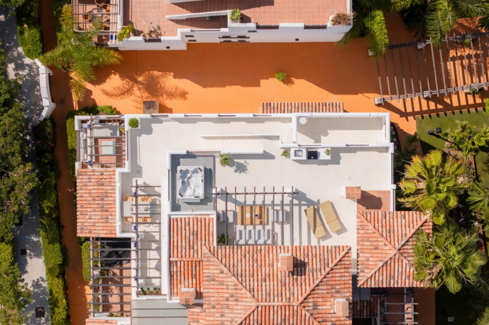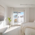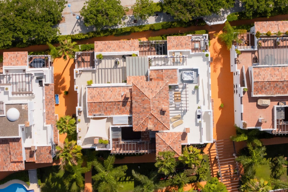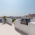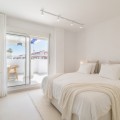 - Step into this beautifully renovated 3-bedroom, 3.5-bathroom duplex penthouse, ideally situated just steps from the beach and within easy walking distance to shops, the town center, restaurants, and bars. Nestled within a small and exclusive gated community, the property offers access to a communal swimming pool surrounded by beautifully landscaped and well-maintained gardens, providing a serene and private atmosphere. Furnished in elegant Scandinavian style, the home features a bright open-plan kitchen, and a spacious living area with a charming vaulted ceiling. Glass doors that open out to a private terrace with an outdoor dining table—perfect for enjoying the Mediterranean lifestyle. Upstairs, the master suite spans the entire top floor and features its own en-suite bathroom and private terrace which leads to a stunning upper patio with a jacuzzi and barbecue, offering panoramic and sea views—ideal for relaxing or entertaining. The property also includes an underground parking with enough space for two cars and a private storage room. A move-in ready beachside home in a boutique community—offering modern comfort, privacy, and elegant coastal living.