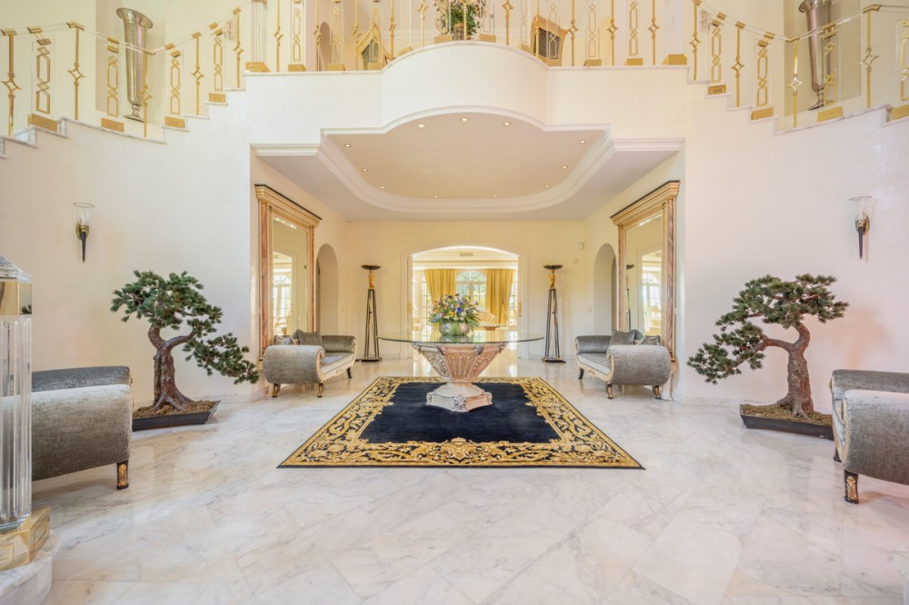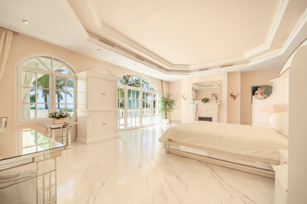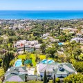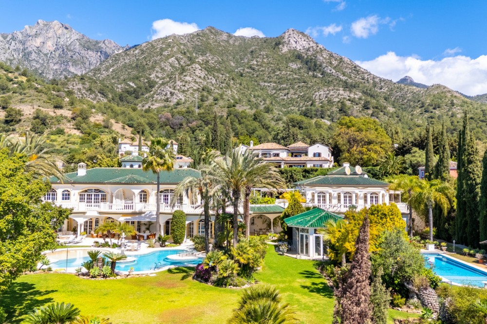 - This exceptional property is set on a generous, elevated plot of 7,200 m² in the exclusive, gated Cascada de Camoján community in Marbella and offers breathtaking views of the Mediterranean Sea. The impressive luxury residence consists of three separate properties: the four-bedroom main house, an adjoining, connected seven-bedroom guest house, and a self-contained four-bedroom guest finca with its own tennis court. The property welcomes you with an imposing entrance gate leading to a spacious driveway. This provides access to a four-space underground garage, two further garages on the ground floor, and ample space for eight additional vehicles outside. The entrance of the main house opens into a magnificent double-height reception hall with a stunning imperial double staircase. The ground floor houses the elegant living room with large French windows that let in plenty of natural light, a stylish study, a fully equipped gym, and a spacious kitchen. Directly adjacent to the living room is a spacious dining room for up to 12 people, which offers access to a long, elegant indoor bar with seating for at least 10. This is also connected to an outdoor bar, ideal for entertaining guests on the spacious terrace. The kitchen is also connected to the garages on this level via an adjoining utility room. Upstairs, you'll find four luxurious bedrooms, each with its own bathroom. From here, there is also direct access to the adjoining guest house, which includes seven additional bedrooms, several bathrooms, and a total of three fully equipped kitchens. The basement of the main house houses four additional garage spaces, several storage rooms, and the property's utility rooms. Both the main house and the guest house have their own lavishly landscaped gardens and a heated pool – each completely independent of the other. The separate guest finca, ideal for visitors or staff, features four bedrooms, private living areas, and a special highlight, a private tennis court. In addition to its unique living comfort, this property also offers enormous potential as an exclusive investment: Due to the exceptional size of the plot, there is the possibility of building up to six luxurious villas on this site – a rare opportunity in one of Marbella's most desirable locations. This property combines outstanding architecture, absolute privacy, luxurious amenities, and excellent development opportunities at the highest level. Discover a new level of living in Cascada de Camoján – an oasis of tranquility with spectacular views. Contact us today for an exclusive viewing of this unique property.
