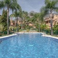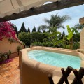 - Situated in the prestigious Oasis de Nagüeles urbanization on Marbella’s sought-after Golden Mile, this spacious 5-level townhouse offers a unique opportunity to create your ideal home in one of the best areas of the Costa del Sol. The property is distributed as follows: Ground floor: guest toilet, a bright living room with fireplace, fully fitted kitchen, and access to a charming private patio with a small pool, leading directly to the lush tropical communal garden with a large shared swimming pool. First floor: two bedrooms, both with en-suite bathrooms. Second floor: a lovely terrace with awning, plus a spiral staircase leading to an additional rooftop terrace – perfect for sunbathing or enjoying open views. Basement level: an additional bedroom with a bathroom, plus access to the private garage. While the property would benefit from modernization, this is reflected in its very attractive price, making it a smart investment opportunity. Its location is unbeatable: only 5 minutes from Marbella center and 4 minutes from Puerto Banús, and close to the area’s top international schools. Whether you're looking for a family home, holiday residence, or investment project, this townhouse has exceptional potential