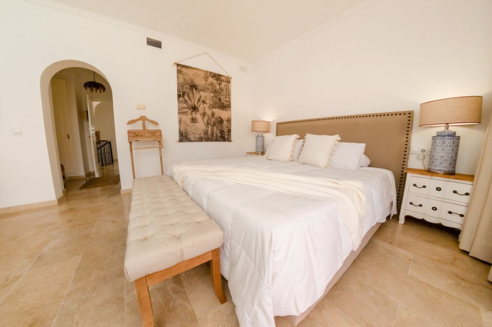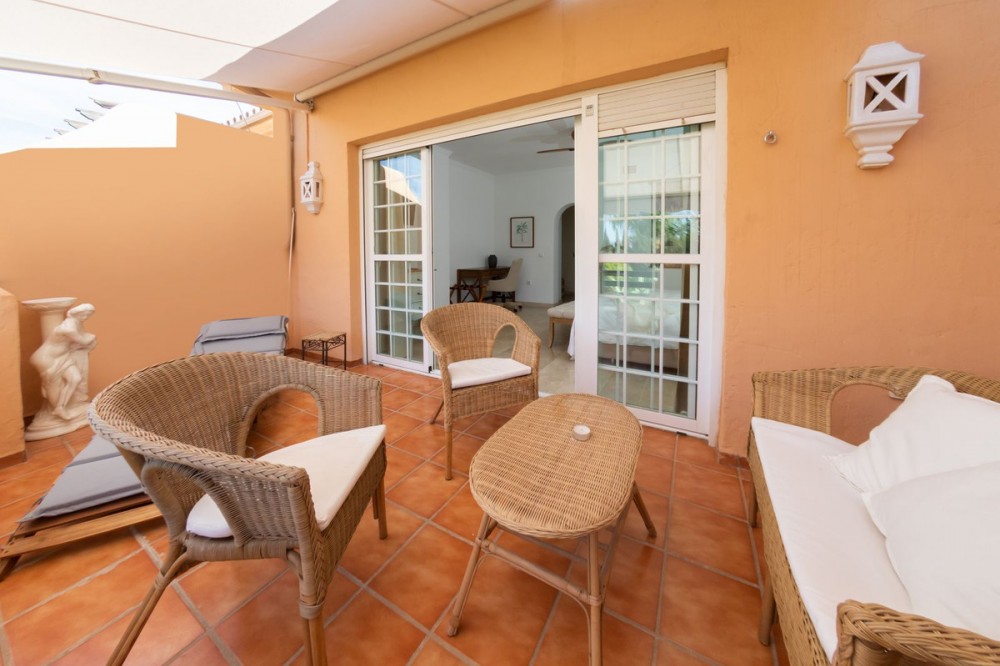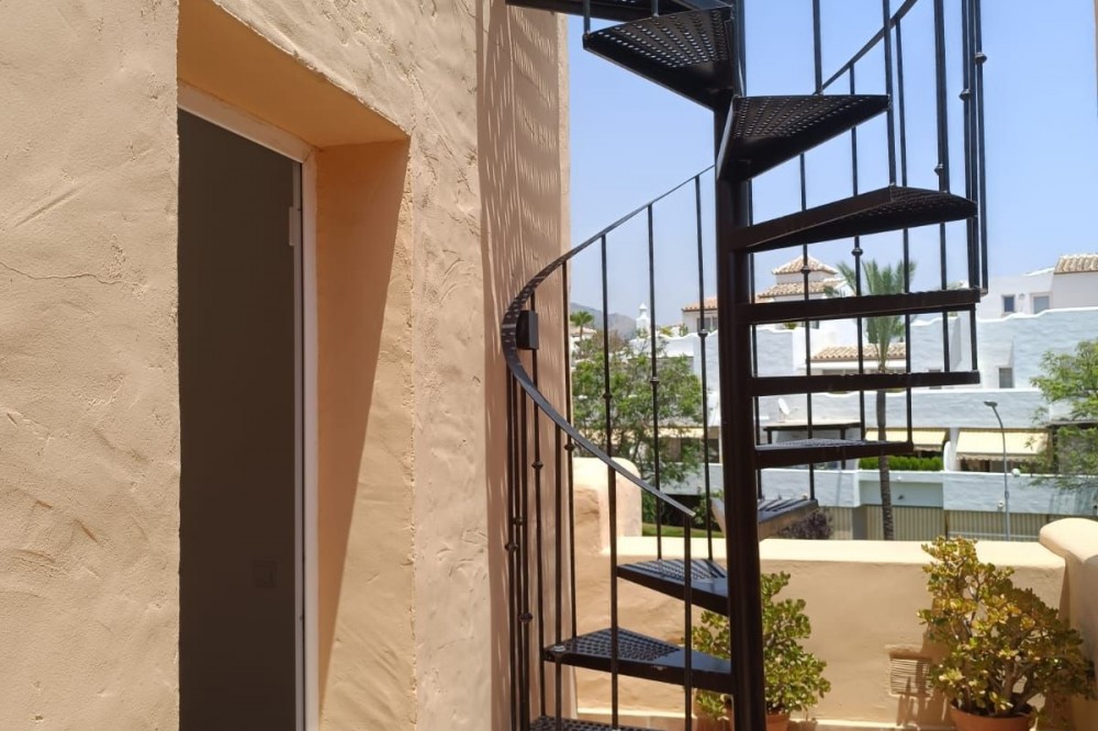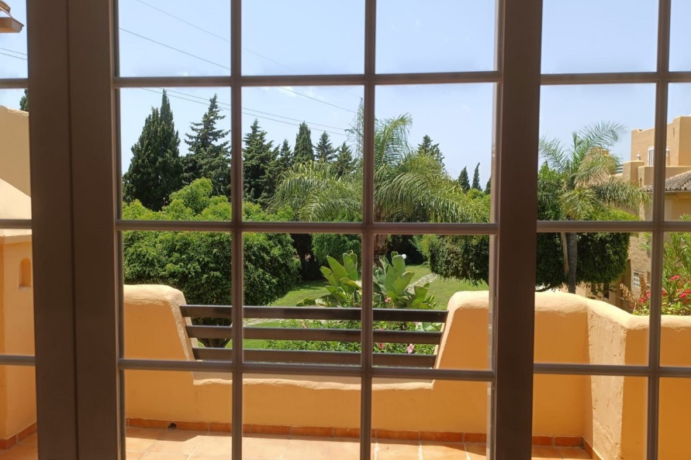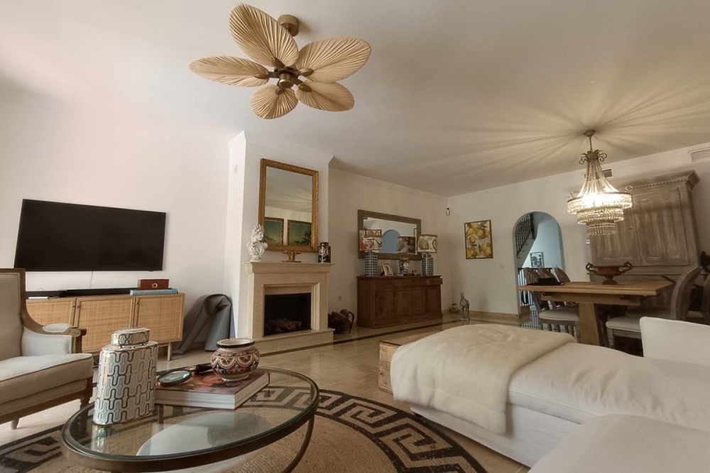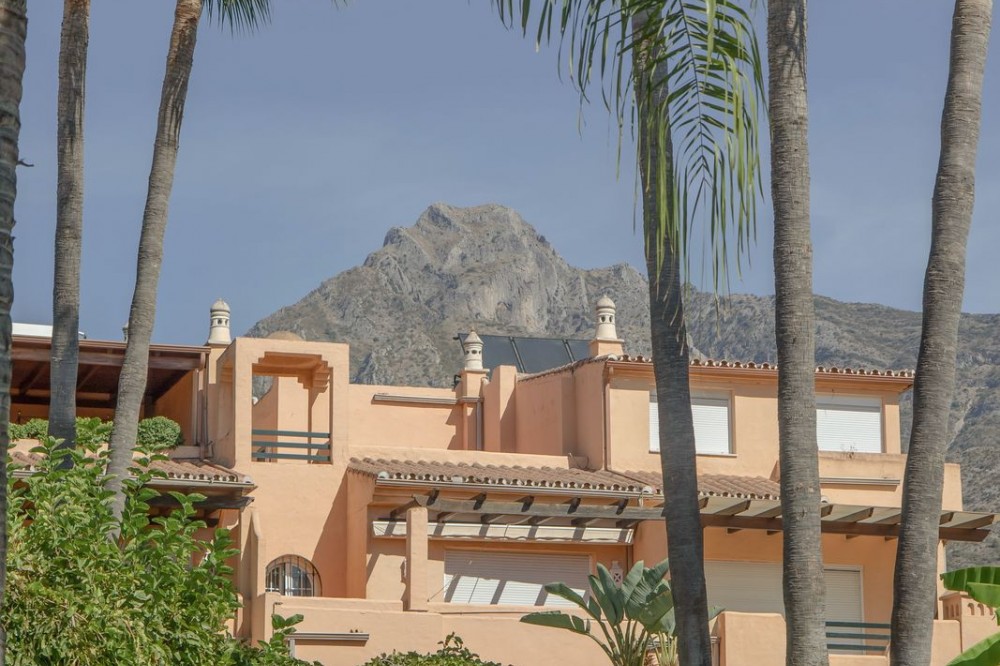 - Situated in the prestigious Oasis de Nagüeles urbanization on Marbella’s sought-after Golden Mile, this spacious 5-level townhouse offers a unique opportunity to create your ideal home in one of the best areas of the Costa del Sol. The property is distributed as follows: Ground floor: guest toilet, a bright living room with fireplace, fully fitted kitchen, and access to a charming private patio with a small pool, leading directly to the lush tropical communal garden with a large shared swimming pool. First floor: two bedrooms, both with en-suite bathrooms. Second floor: a lovely terrace with awning, plus a spiral staircase leading to an additional rooftop terrace – perfect for sunbathing or enjoying open views. Basement level: an additional bedroom with a bathroom, plus access to the private garage. While the property would benefit from modernization, this is reflected in its very attractive price, making it a smart investment opportunity. Its location is unbeatable: only 5 minutes from Marbella center and 4 minutes from Puerto Banús, and close to the area’s top international schools. Whether you're looking for a family home, holiday residence, or investment project, this townhouse has exceptional potential