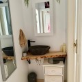 - Exquisite 3-Bedroom Townhouse in an Exclusive Community Discover this beautiful, recently renovated 3-bedroom townhouse that combines modern luxury with a sustainable lifestyle. With solar panels on the roof, you can enjoy virtually zero electricity costs while embracing a greener lifestyle. Located in an exclusive community of just seven homes, this property boasts a spacious, private front garden filled with vibrant flowers and stunning mountain views. Ground Floor: - The entrance hall leads to a modern bathroom equipped with a shower and washer/dryer. - To the left is a versatile third bedroom, currently used as an office. - The open-concept living and dining area receives abundant natural light and has access to a covered terrace with a Jacuzzi. - The private L-shaped garden is immaculately maintained and offers a peaceful outdoor space, with a separate dog area. Lower Floor: - Internal access to a spacious storage room and two private parking spaces. Upper Floor: - Two well-designed bedrooms and a second luxurious bathroom with a bathtub. - An additional sink in the hallway for added convenience. The newly renovated kitchen combines elegance and functionality, with plenty of storage space. Located just a 7-minute walk from the village and 12 minutes from the metro, this exceptional home offers the perfect combination of elegance, comfort, and practicality. Your ideal home awaits!