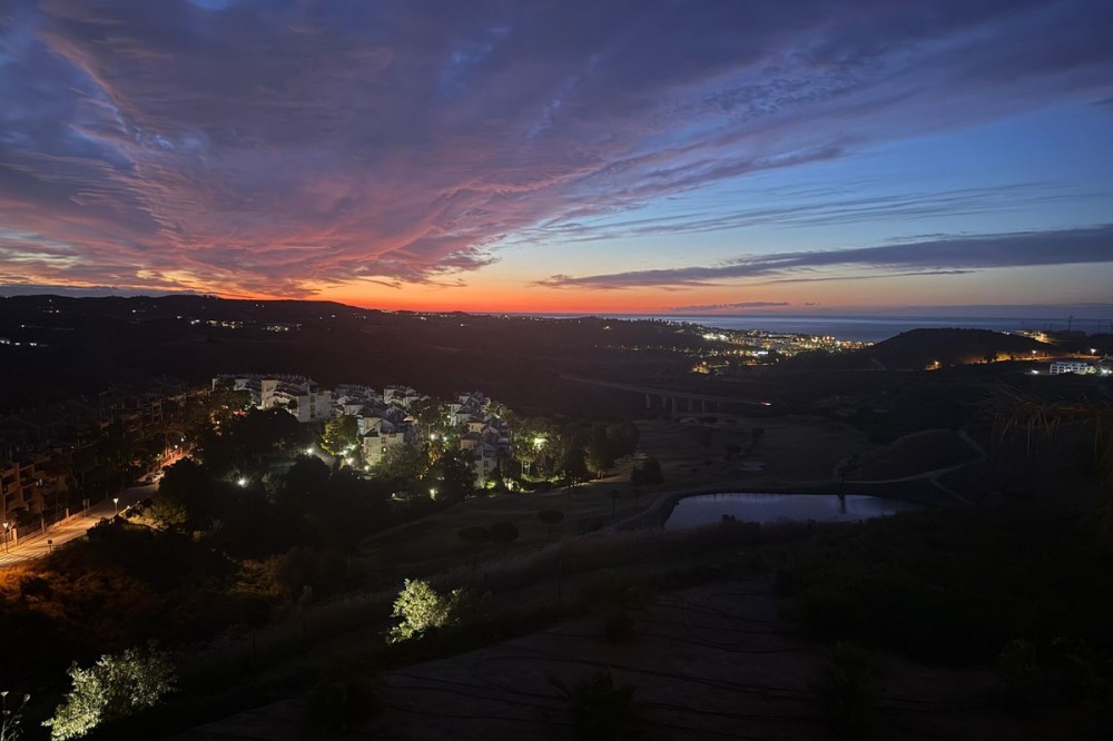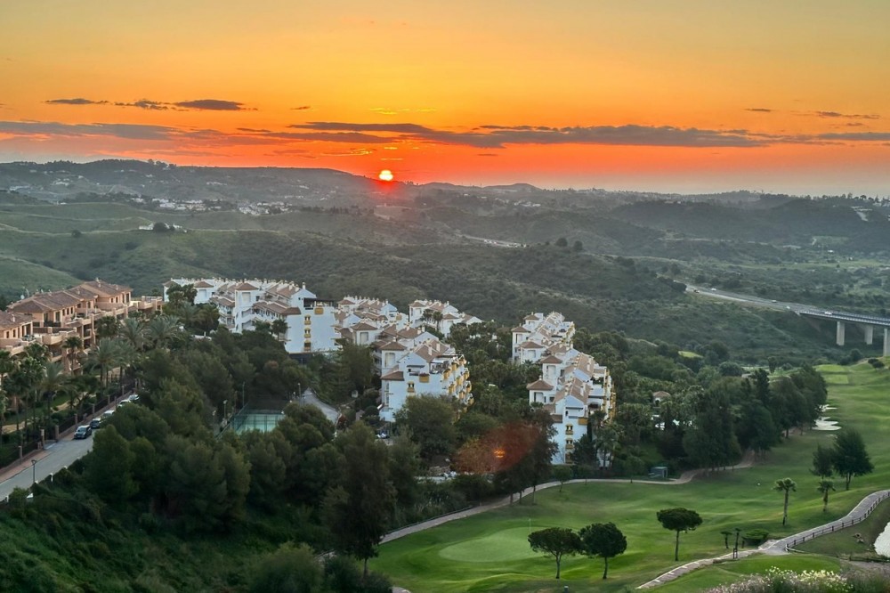 - For Sale: Luxurious 3-Bedroom Apartment with Breathtaking Views and Year-Round Sunrises – Calanova Golf, Mijas Costa Discover this exceptional three-bedroom apartment located in a prestigious gated development in the highly sought-after Calanova Golf area of La Cala de Mijas. Each bedroom includes a private en-suite bathroom and opens onto a spacious terrace with stunning panoramic views of the Calanova Golf course, the Mediterranean Sea, and the surrounding mountains. One of the apartment’s most captivating features is its year-round sunrise views. In winter, the sun rises directly from the sea, casting golden reflections over the horizon. In summer, it emerges majestically from behind the Sierra Nevada mountains, offering a truly magical start to each day. This exclusive residence offers an unmatched lifestyle with world-class amenities: two outdoor swimming pools, a state-of-the-art spa featuring a jacuzzi, sauna, and Turkish bath, a private cinema, a professional golf simulator, a wine cellar, and a stylish co-working space. A poolside bar and 24-hour security with concierge services ensure both relaxation and peace of mind. Fitness enthusiasts will also appreciate the fully equipped gym. The apartment includes two underground parking spaces and a private storage room. High-end finishes and features include underfloor heating throughout, a guest bathroom, a laundry room, and a contemporary open-plan living space with a sleek kitchen island, leading onto a large terrace ideal for entertaining. Perfectly located just minutes from the vibrant town center of La Cala de Mijas, residents enjoy close proximity to top restaurants, bars, supermarkets, and beach clubs. The renowned Calanova Golf Club is just a short walk away, offering a top-tier restaurant, golf academy, and one of Europe’s largest pro shops. This property seamlessly combines modern luxury with the serenity of golf-front living—an outstanding opportunity for those seeking elegance, comfort, and exclusivity on the Costa del Sol.