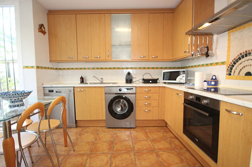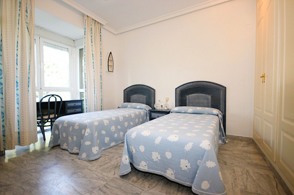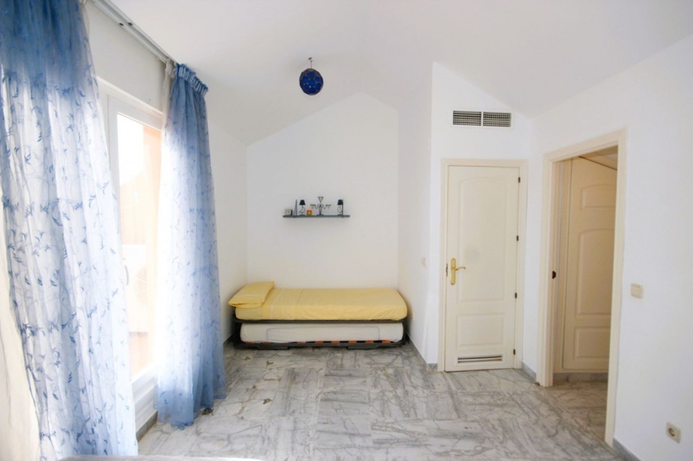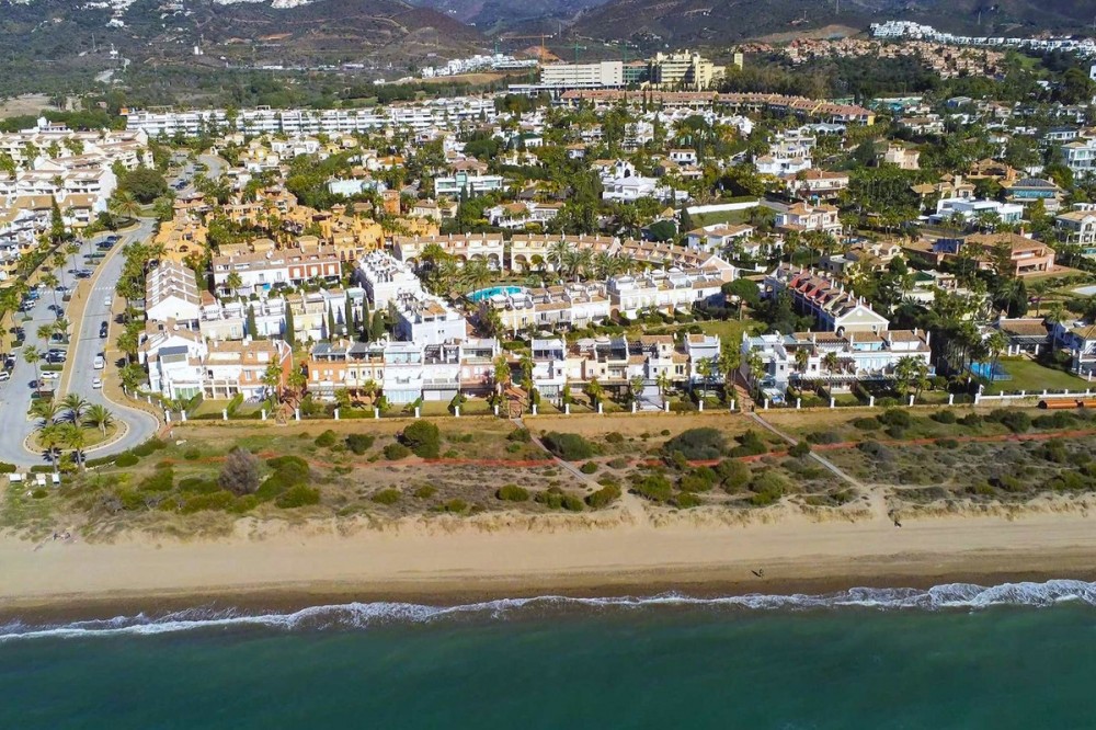 - Nestled within one of Bahía de Marbella's most sought-after beachfront urbanizations, this stunning townhouse offers an unparalleled coastal living experience. Imagine waking up to the sound of the waves and having direct, private access to the golden sands of the beach just steps from your door. This exclusive community provides peace of mind with 24-hour security, ensuring a safe and serene environment for you and your family. The meticulously manicured lush gardens create a vibrant oasis, complemented by an extraordinarily large and beautiful swimming pool, perfect for leisurely dips on warm Mediterranean days. A Home Designed for Comfort and Elegance Step inside this meticulously designed townhouse and discover a harmonious blend of comfort and style across multiple levels. Boasting three generously sized bedrooms and three modern bathrooms, plus a convenient guest toilet, there's ample space for family and friends. Thoughtful Layout Across Three Floors: Ground Floor: The heart of the home, featuring a bright and inviting living-dining room. This open-plan space seamlessly connects to the main private terrace, ideal for al fresco dining or simply enjoying the tranquil surroundings. A contemporary, fully equipped kitchen and a guest toilet complete this level. First Floor: Dedicated to comfort and privacy, this floor offers two spacious bedrooms, each benefiting from its own luxurious en-suite bathroom. Second Floor: Ascend to the pinnacle of relaxation – the master bedroom suite. This private sanctuary includes a well-appointed en-suite bathroom and its own private terrace. From here, you'll savour panoramic views of the vibrant gardens below and the majestic mountains in the distance, providing a picturesque backdrop to your daily life. Basement: huge basement parking space, providing secure off-street parking for up to two vehicles – a true luxury in a beachfront location. Premium Features and Unbeatable Convenience This townhouse is equipped with a host of modern amenities designed to enhance your lifestyle. Enjoy year-round comfort with hot and cold air conditioning throughout the house. Practical features like electric shutters offer convenience and added security, while Wi-Fi connectivity keeps you seamlessly connected. huge basement parking space, providing secure off-street parking for up to two vehicles – a true luxury in a beachfront location. Prime Marbella Location The location couldn't be more ideal. You're just a short 5-minute drive from the vibrant heart of Marbella town, offering an array of world-class restaurants, designer boutiques, and lively entertainment options. For international travel, Málaga-Costa del Sol Airport is a convenient 35-minute drive away, making this an easily accessible retreat. This townhouse represents a rare opportunity to own a piece of paradise in one of Marbella's most desirable beachfront urbanizations. Are you ready to experience the ultimate in Mediterranean living?