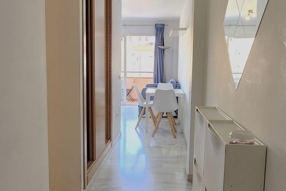 - Apartment two steps from the center of Fuengirola Apartment with Sunny Terrace and Communal Pool - Garage Space Included - Walking distance to Fuengirola Center Discover this cozy one bedroom apartment, located in a gated community with pool and surrounded by tranquility, just a few minutes walk from the heart of Fuengirola. Perfect as a permanent residence, second home or tourist investment thanks to its high profitability and its registration as a tourist apartment. Located on a second floor with elevator, the apartment offers 40 m² built very well used. It has a bedroom, bathroom, built-in closet, equipped kitchenette and a very bright living room with direct access to a large terrace of 8 sqm with west orientation, ideal for enjoying the sun in the evenings and outdoor dining with unobstructed views. In addition, the price includes a private parking space in the same building, an essential added value in the area. Located within walking distance of all services: supermarkets, public transport, the town hall of Fuengirola and leisure areas such as the water park. All this without giving up the calm of a residential urbanization. An excellent opportunity on the Costa del Sol, either to live or to invest with guarantees.