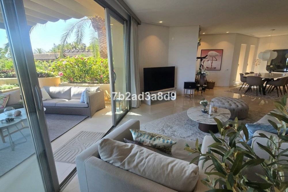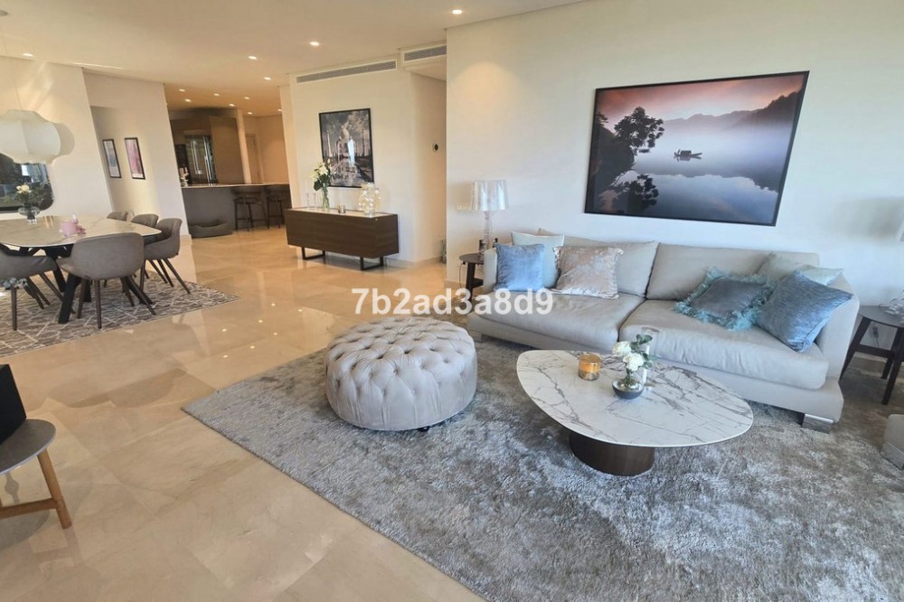 - Spectacular Apartment with the Best View in One of the Most Exclusive Developments on Marbella’s Golden Mile A truly rare opportunity to acquire the best-positioned apartment in the prestigious Mansion Club, one of Marbella’s most sought-after gated communities. Perfectly situated slightly ahead of the other units, this residence boasts uninterrupted panoramic views of the Mediterranean Sea and the lush surrounding landscape — a vantage point that is simply unmatched within the complex. Exceptional Features: 156 m² of bright and elegant interior living space Private terrace of approx. 50 m², perfect for sunbathing, outdoor dining, and enjoying the breathtaking views 2 spacious bedrooms with abundant natural light 2 refined bathrooms with high-quality finishes Private underground garage and a secure storage room Sold Fully Furnished This apartment is offered fully furnished with premium designer pieces from Louis Poulsen, Calligaris, and Cane Line, creating a stylish, luxurious, and comfortable living environment from the moment you arrive. Move-In Ready No work needed. No delays. Just arrive, unpack, and begin enjoying the Marbella lifestyle immediately. First-Class Amenities at Mansion Club: Indoor and outdoor swimming pools State-of-the-art fitness centre Sauna and steam room Beautifully maintained tropical gardens 24/7 security with night patrols and a trained guard dog for total peace of mind Located just minutes from Marbella’s famed Golden Mile, Mansion Club offers unrivalled privacy, prestige, and proximity to the beach, top restaurants, and luxury boutiques. A Unique Opportunity This is the most spacious and best-located apartment in Mansion Club. A property where luxury, space, comfort, and the finest views in Marbella converge into one exceptional offering.