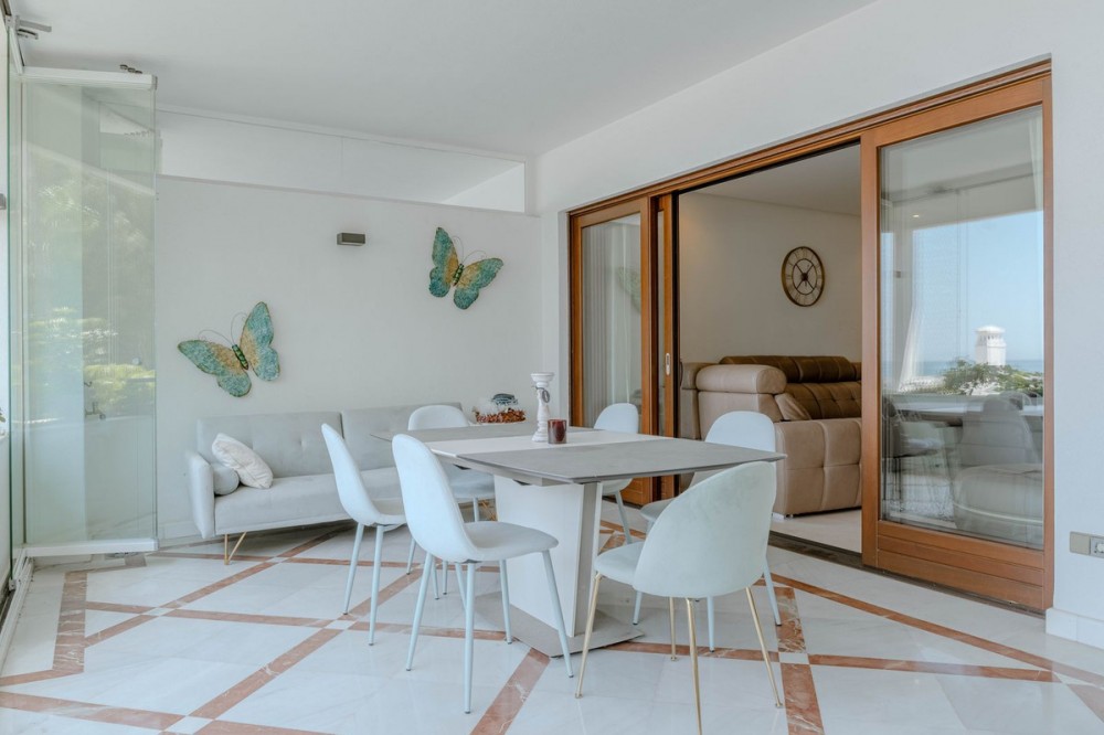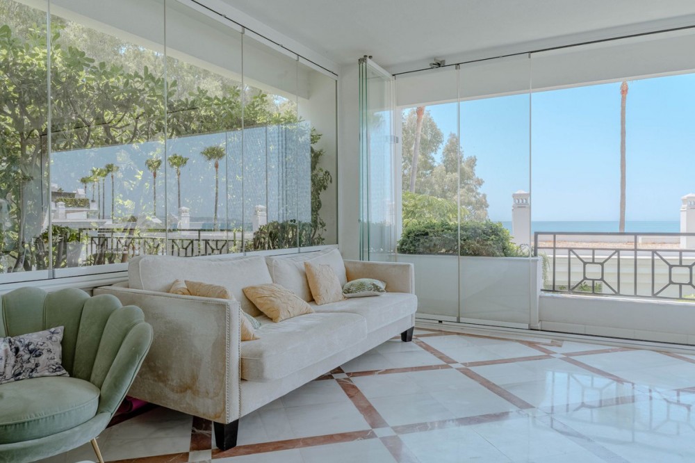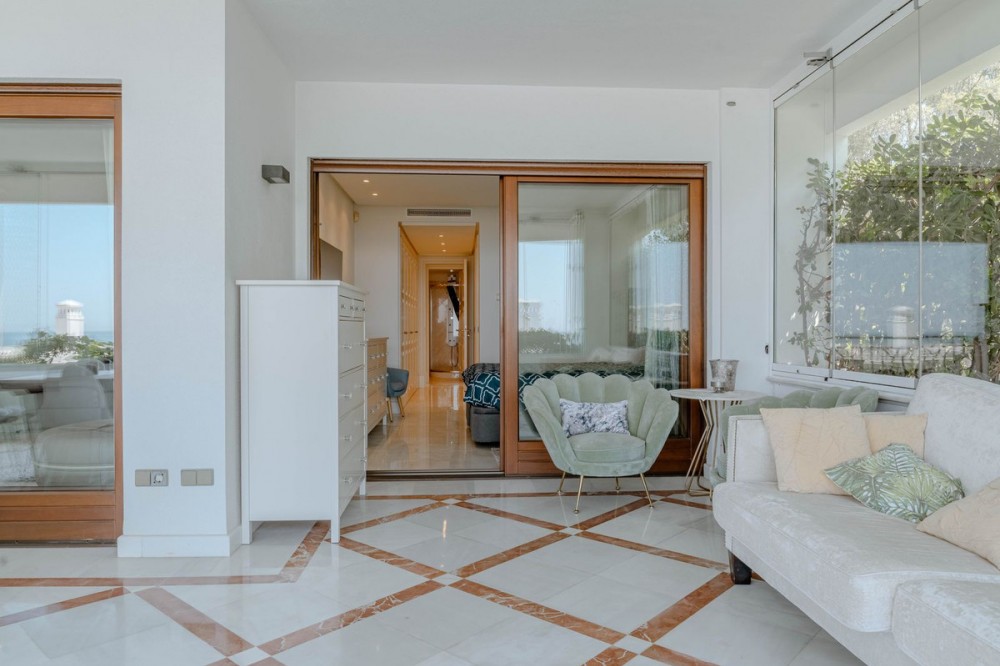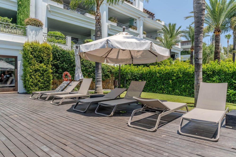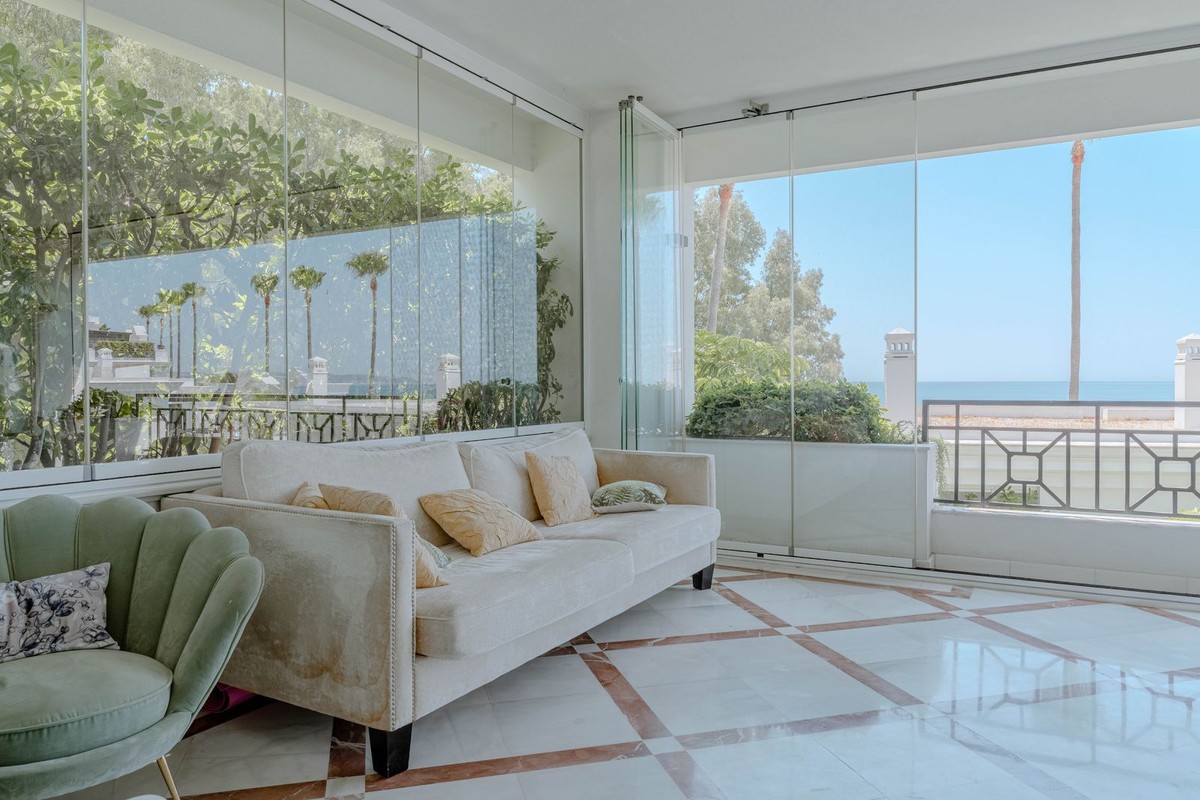 - Doncella Beach – Luxury beachfront apartments in Estepona Zeus Groundfloor A Located directly on the seafront promenade of Estepona, just minutes from the marina, Doncella Beach offers four exclusive apartments for sale. All units feature high-end finishes and access to premium communal facilities. Currently available: • 2 ground floor apartments with 1 bedroom – Artemisa block Each with a private garden and glazed terrace. Functional layout, good orientation, and direct access to landscaped areas. Ideal as a residence or investment. • 1 middle-floor apartment with 2 bedrooms – Hermes block Bright property with spacious living room, covered terrace and open views. Two bedrooms, one with en-suite bathroom, and well-distributed interiors. • 1 elevated ground floor apartment with 3 bedrooms – Zeus block Elevated above garden level for extra privacy. Large terrace, generous interior space and direct access to the communal areas. Three bedrooms and spacious living room. ⸻ Development highlights: • Tropical wood carpentry with double glazing • Marble floors throughout (indoors and terraces) • Zoned air conditioning, electric blinds, home automation • High-end finishes in kitchens and bathrooms Communal areas include: • Outdoor pool with sea views • Heated pool, gym, sauna and jacuzzi • Mature gardens, direct beach and promenade access • Underground parking and storage for each unit A rare opportunity to acquire a high-end property by the sea, in one of the most prestigious communities on the Costa del Sol. For more details, please contact us directly.
