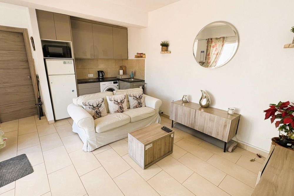 - This is a super 1 bedroom apartment with a lovely sunny terrace, ideally located just a stone’s throw from the vibrant marina at La Duquesa. This property offers the perfect balance of leisure and convenience, being only a short 5-minute walk to the bustling seaside village of Sabinillas too, with a vast array of shops, supermarkets, and charming tapas bars. Furthermore, the beach is just a 10-minute stroll away. This bright and quirky property has been tastefully combined, providing spacious living area and a fabulous terrace overlooking Duquesa Golf course. Located within a well-established complex characterized by its Mediterranean “pueblo” style—complete with whitewashed walls, walkways, and charming plazas— the complex also boasts access to a large swimming pool area and an on-site bar and restaurant. Upon entering the property, you are welcomed into a bright, open-plan living area that seamlessly connects to a modern, fully fitted kitchen. This inviting space extends directly onto a sunny terrace, perfect for relaxing or entertaining. At the rear of the property, you'll find a generously sized double bedroom featuring built-in wardrobes and a private en suite bathroom. Adjacent to the living space is a delightful south-facing terrace offering open views, enjoying all day sunshine. Due to the convenient location and great outdoor space, this property would make a super holiday retreat with excellent rental potential or as a more permanent residence.