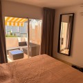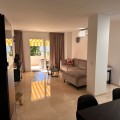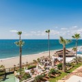 - 1st line beach on the New golden Mile between Marbella and Estepona! Top-floor apartment on 1st floor with large south facing terrace, partly covered. Built area of 96 sqm. Offering entrance area leading to the open plan kitchen-dining lounge with outgoing to the terrace. Spacious master bedroom with en-suite bathroom, 2nd bedroom and a 2nd bathroom separate. Storage room. Parking space internal in the gated community in front of the entrance of the apartment. The apartment is located in the lower building-part of Dominion Beach, which has 2 storys. 24-hours security urbanisation with 24-hours guardians. Tropical, old grown community gardens with 2 swimming pools, one on beachfront with direct access to the beaches. To the urbanisation belongs as well a restaurant and bar next to the beachfront swimming pool. Features: creme marble floors, built-in wardrobes, new aircondition hot/cold, new built-in wardrobe doors, double glazing windows and doors, security entrance door, sun blinds, furnished, new modern contemporary kitchen fitted with all appliances, open plan, storage room. The apartment is completely new refurbished. Beautiful manicured gardens with water features such as fountains and mosaic themed little ponds Gym and social area Administration office Private slipway to the beach and sea for easy access of waterski / jet-ski and windsurfing equipment Busstop in front of the complex. Golf courses are several around in only few minutes drive. Supermarket, bars and restaurants as well as Laguna Village with beach club is in walking distance. 5 minutes drive to Estepona and 10 minutes drive to the the famous and sophisticated port of Puerto Banus. High rental potential and very good investment opportunity at one of the high class areas west side of Marbella.