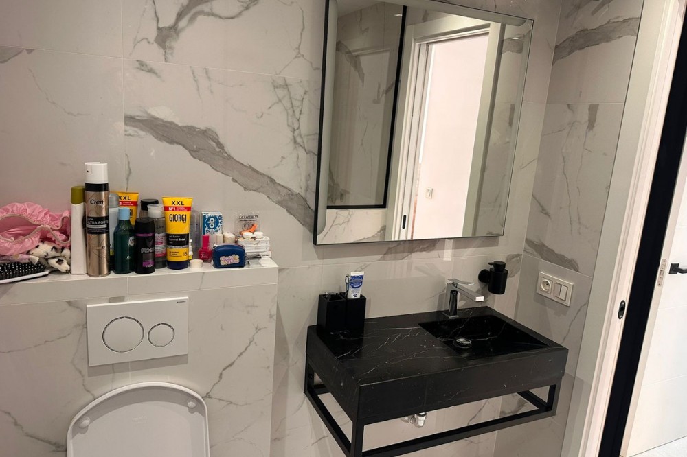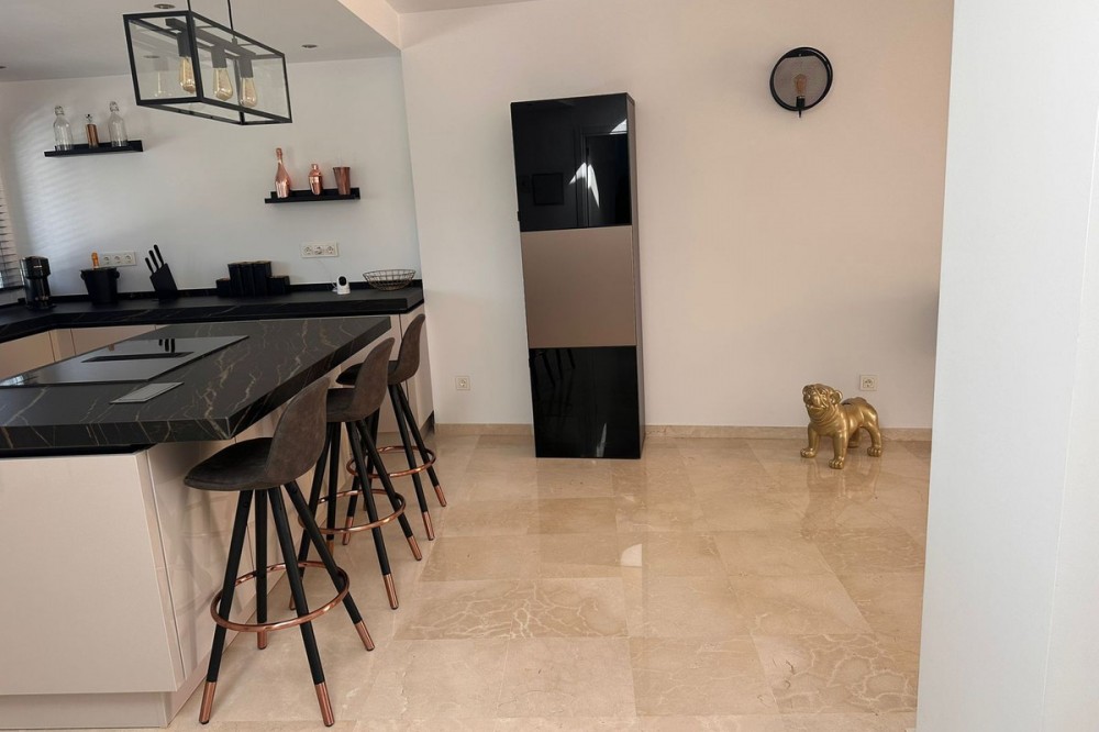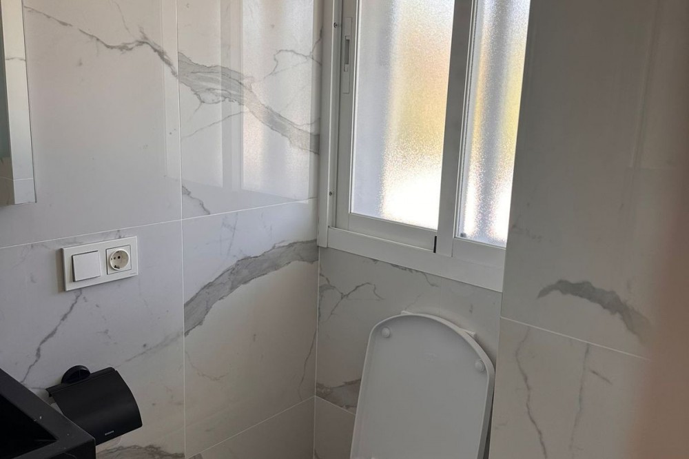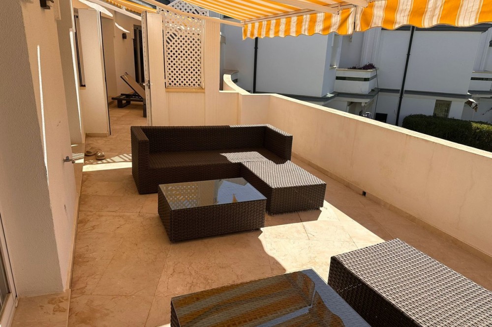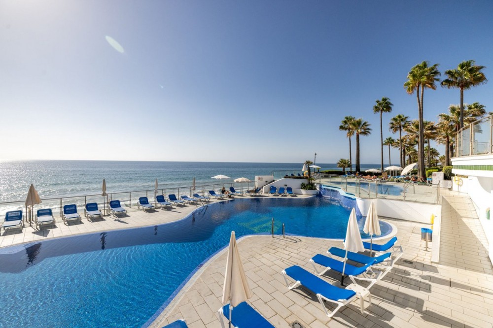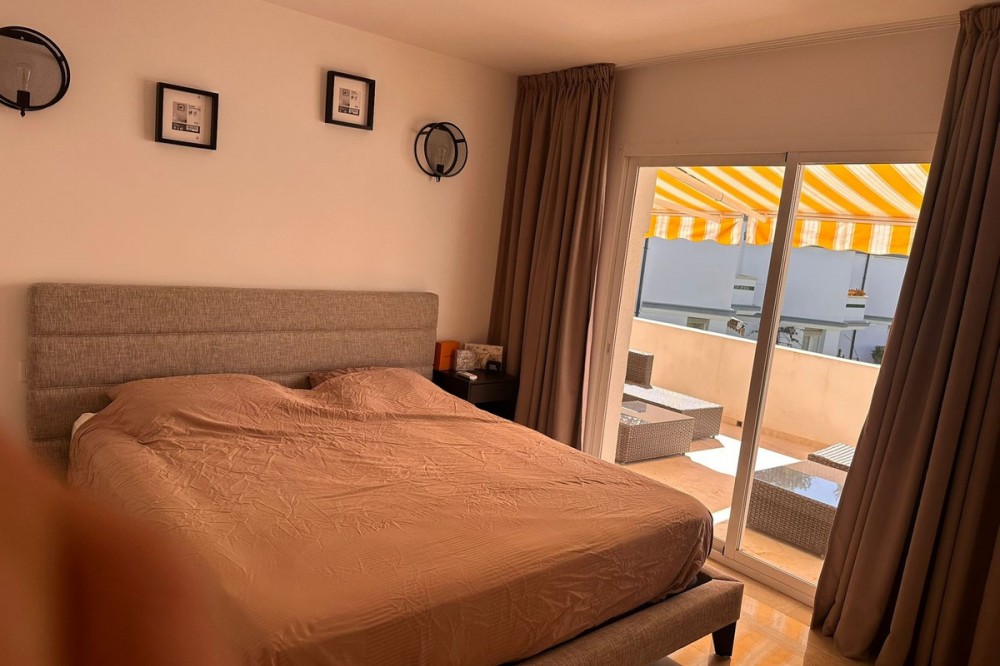 - 1st line beach on the New golden Mile between Marbella and Estepona! Top-floor apartment on 1st floor with large south facing terrace, partly covered. Built area of 96 sqm. Offering entrance area leading to the open plan kitchen-dining lounge with outgoing to the terrace. Spacious master bedroom with en-suite bathroom, 2nd bedroom and a 2nd bathroom separate. Storage room. Parking space internal in the gated community in front of the entrance of the apartment. The apartment is located in the lower building-part of Dominion Beach, which has 2 storys. 24-hours security urbanisation with 24-hours guardians. Tropical, old grown community gardens with 2 swimming pools, one on beachfront with direct access to the beaches. To the urbanisation belongs as well a restaurant and bar next to the beachfront swimming pool. Features: creme marble floors, built-in wardrobes, new aircondition hot/cold, new built-in wardrobe doors, double glazing windows and doors, security entrance door, sun blinds, furnished, new modern contemporary kitchen fitted with all appliances, open plan, storage room. The apartment is completely new refurbished. Beautiful manicured gardens with water features such as fountains and mosaic themed little ponds Gym and social area Administration office Private slipway to the beach and sea for easy access of waterski / jet-ski and windsurfing equipment Busstop in front of the complex. Golf courses are several around in only few minutes drive. Supermarket, bars and restaurants as well as Laguna Village with beach club is in walking distance. 5 minutes drive to Estepona and 10 minutes drive to the the famous and sophisticated port of Puerto Banus. High rental potential and very good investment opportunity at one of the high class areas west side of Marbella.