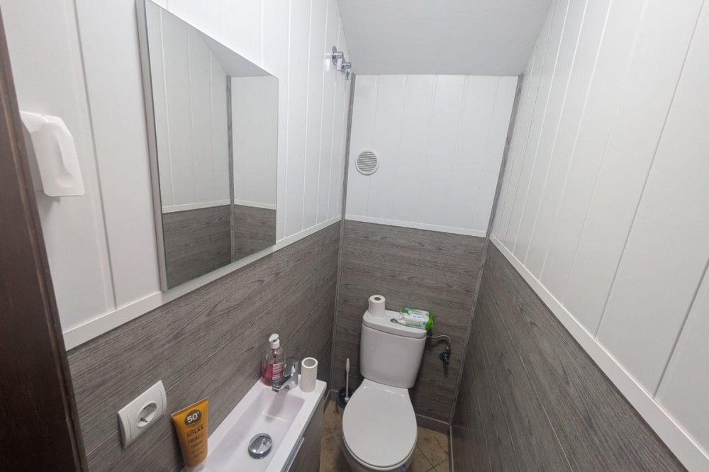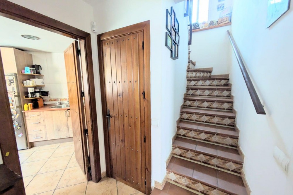 - Eng.: Unbeatable location: Just a 2-minute walk to the train station and several supermarkets. Close to schools and all essential services. Features: - Part of a gated community with a pool and lounge areas. - Ground floor: separate kitchen, laundry room, toilet, living-dining room with fireplace, and patio with access to the communal pool. - Upper floor: 3 bedrooms (2 with built-in wardrobes), bathroom, and terrace. - Built in 2004 with partial renovations, including double-glazed windows and new flooring. - Underground parking space and 2 storage rooms included in the price. A great opportunity to acquire an impeccably designed home in a prime location!