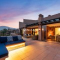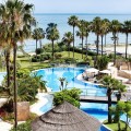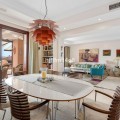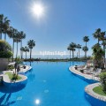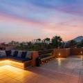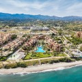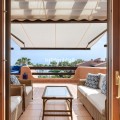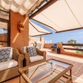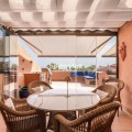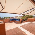 - This exceptional 3-bedroom penthouse in Mar Azul, Estepona, offers a luxurious coastal lifestyle, combining elegance, comfort, and breathtaking sea views. Located on the sought-after New Golden Mile, Mar Azul is a prestigious beachfront urbanization next to the renowned Kempinski Hotel. Residents enjoy direct beach access and are just minutes from high-end boutiques, cafés, and restaurants. The charming Estepona town centre is only a 5-minute drive away. Just ten-minutes walk to luxurious Laguna Beach with several restaurants. One of the standout features of this unique penthouse is that it is built entirely on one level, offering ease of living and a seamless flow throughout the home. The highlight is the unusually large southwest-facing terrace, accessible directly from the living room. This expansive outdoor space includes a lounge area, space for sunbeds, and a glazed corner dining area that can be opened or closed depending on the season — ideal for year-round use and entertaining. Additionally, the apartment and terrace are equipped with 8 integrated Sonos speakers, providing premium-quality sound throughout. Inside, the property welcomes you with a bright and spacious open-plan living and dining area, bathed in natural light through floor-to-ceiling glass doors. The refurbished modern, fully fitted kitchen is equipped with high-end appliances, offering both functionality and style. Underfloor heating and aircondition in all rooms. There are three generously sized bedrooms, one of them in-suite and the other two sharing one bathroom. Providing comfort and privacy for family and guests alike. Two of the bedrooms has directly access to separate outdoor space. Additional features include two underground garage spaces, ensuring secure parking and two store rooms. From the garage there is an elevator with direct access to the entrance of the apartment. Interior 112m2, plus terrace 72 m2. The community of Mar Azul offers resort-style amenities, including several outdoor swimming pools, an indoor heated pool, a fully equipped gym, spa, and sauna. The complex is gated with 24-hour security, ensuring peace of mind and an exclusive living environment. This remarkable penthouse, with its rare single-level layout, expansive terrace, and unbeatable southwest orientation, represents a rare opportunity to enjoy true beachfront luxury between Marbella and Estepona.