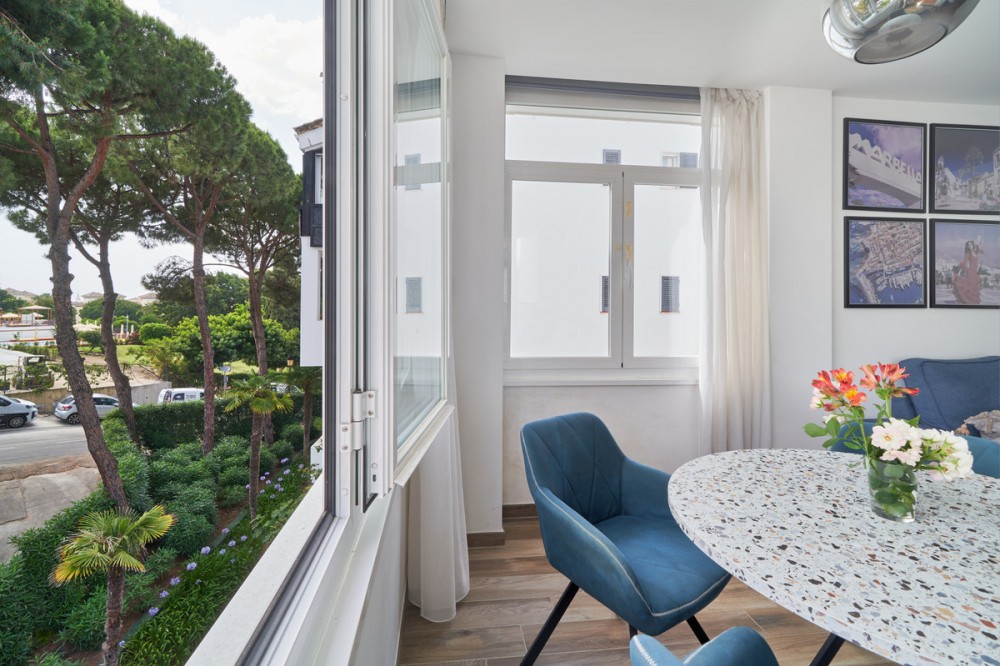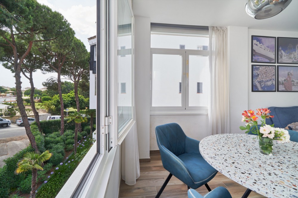 - Just moments from the shoreline, this elegant 2-bedroom, 2-bathroom apartment is nestled within the sought-after gated community of Jardines de las Golondrinas, just 200 metres from one of Marbella’s finest sandy beaches. Set in the prestigious area of Elviria, and adjacent to the grounds of the iconic Don Carlos Hotel, the apartment offers a refined blend of comfort, privacy, and Mediterranean charm. Spanning beautifully maintained subtropical gardens and pinewoods, the residence enjoys a peaceful ambiance and the convenience of being within walking distance to high-end beach clubs, restaurants, supermarkets, and year-round leisure amenities. Designed for relaxed coastal living, the apartment features bright, open-plan interiors that flow onto a private terrace—ideal for enjoying warm evenings or morning sun. Residents of this secure community enjoy access to three swimming pools, including a dedicated children’s pool, as well as a poolside bar and restaurant open seasonally. For those seeking an active lifestyle, nearby facilities include tennis courts, a golf course, driving range, and water sports, all within easy reach. This apartment offers an exceptional opportunity for those looking to enjoy the vibrant lifestyle of Marbella in a setting of serenity and natural beauty.