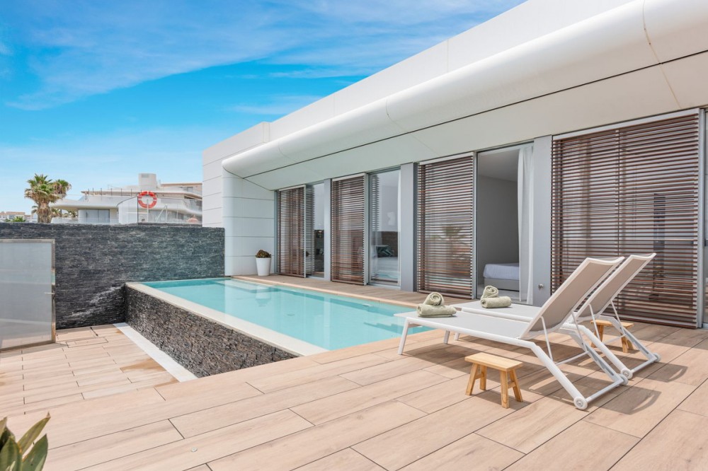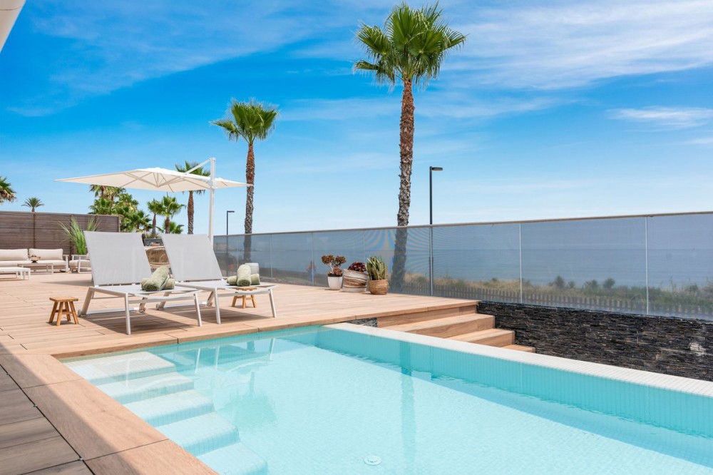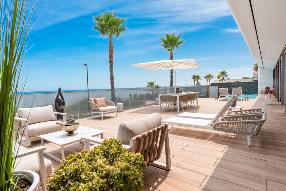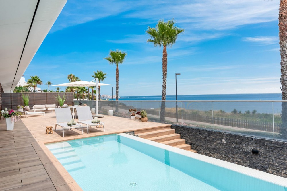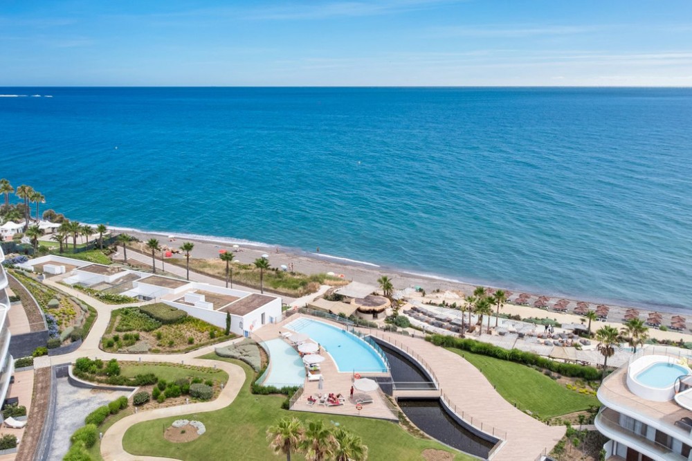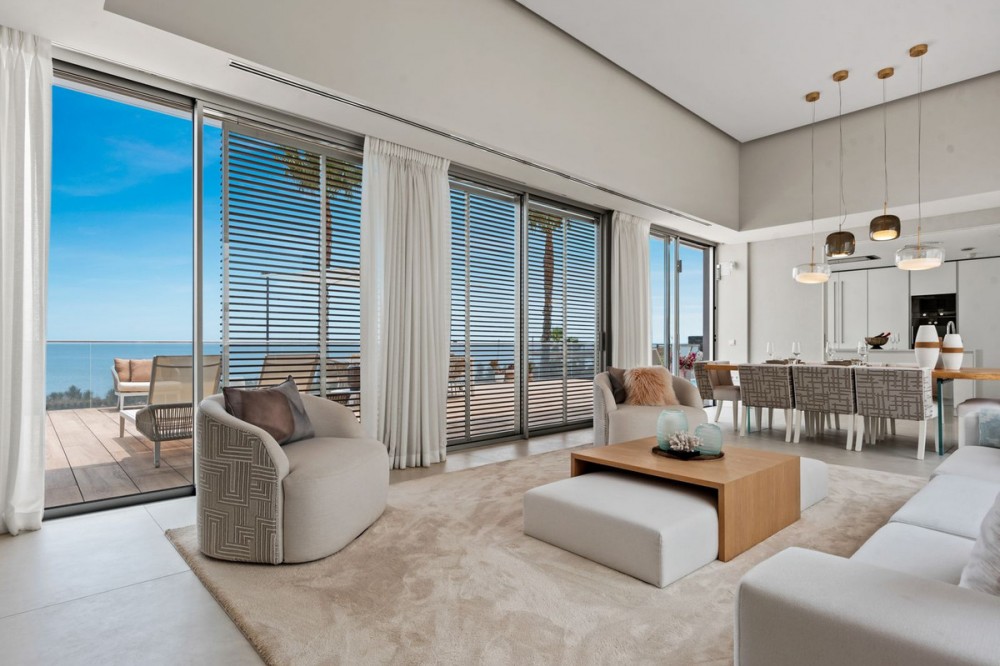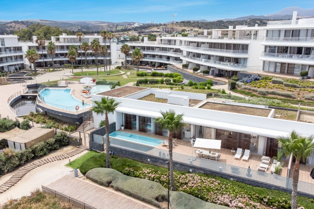 - Discover an exceptional opportunity to own one of only two exclusive frontline villas in The Edge, Estepona’s most sought-after luxury beachfront development. This stunning 4-bedroom, 3-bathroom villa (plus guest toilet) offers direct panoramic sea views, absolute privacy, and a private swimming pool — all within a secure gated community with world-class resort facilities. Key Features ✅ Frontline beachfront position with uninterrupted views of the Mediterranean Sea ✅ Private swimming pool and generous outdoor terraces for true indoor-outdoor living ✅ 333 m² built area with spacious open-plan living, designer kitchen and high ceilings ✅ 4 large bedrooms, 3 modern bathrooms and a separate guest toilet ✅ Private underground parking, storage, and direct access to the beach ✅ Exclusive use of The Edge facilities: infinity pools, heated indoor pool, full spa with sauna, Turkish bath & Jacuzzi, state-of-the-art gym, paddle tennis court, co-working lounge and 24/7 security ✅ Walking distance to Estepona marina, fine dining, and golf courses Why This Villa This is not just an apartment — it is a one-of-a-kind stand-alone villa in a premium resort setting, combining the privacy of an independent house with the ease of luxury community living. Perfect for discerning buyers seeking a low-maintenance, turnkey home with exceptional rental potential or as a family retreat.