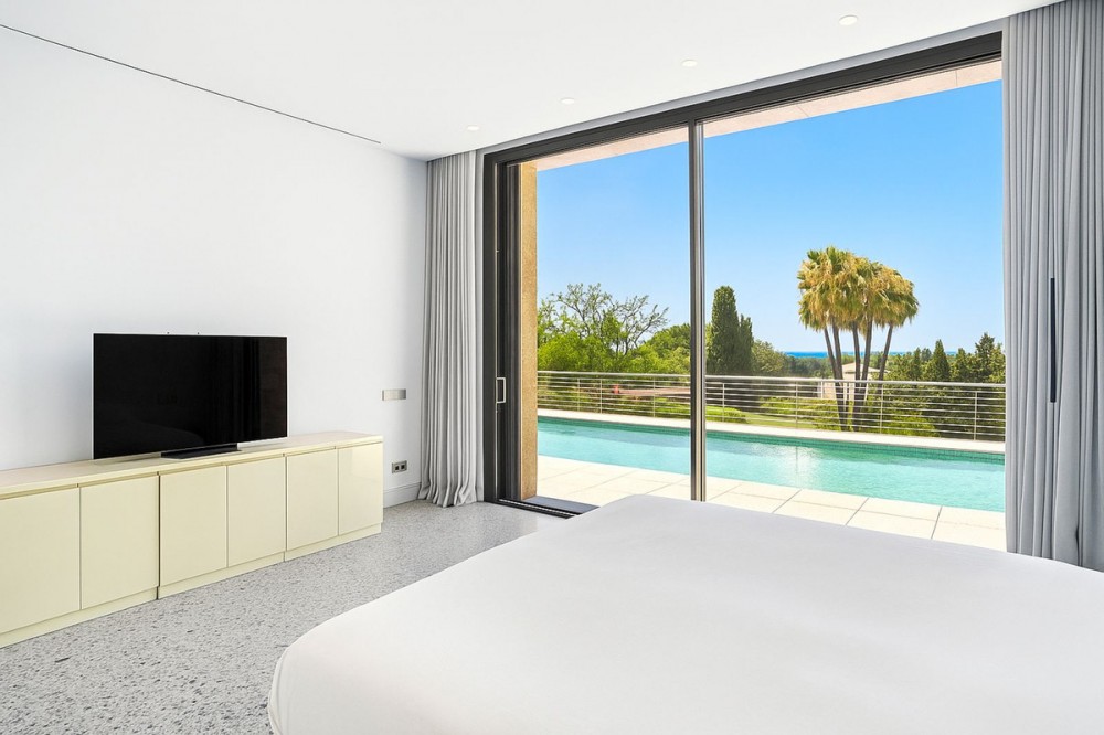 - Exclusive Villa in the Heart of Elviria, East Marbella Located in one of the most desirable areas of Elviria, East Marbella, this stunning contemporary villa offers unparalleled luxury and comfort at every turn. Built with the finest materials and equipped with the latest technologies, this property is the epitome of modern living. Entrance Level: The entrance level consists of a private, self-contained 1-bedroom apartment, 2 guest bedrooms with en-suite bathrooms, and an office space. There's a 4-car garage with an electric car charging point, 2 large storage rooms, and a technical room housing all the villa's machinery. Upper Level: Access to the superior level is via a unique spiral staircase or an elevator with a 4-person capacity. This level opens into a spacious open-plan living, dining, and kitchen area that leads out to a partially covered terrace, heated pool, and outdoor kitchen. The entire exterior terrace is designed as a "floating terrace," allowing rainwater to flow beneath the surface and be collected in a water reservoir for reuse in irrigation. Also on this level is the master bedroom, featuring a walk-in closet, his and hers wardrobes, and a large en-suite bathroom. This floor offers stunning south and southwest views toward Marbella, providing breathtaking scenery from every angle. State-of-the-Art Features Include: Gaggenau Kitchen: Featuring an induction hob and gas cooktops, 2 ovens (one conventional and one steam), and a separate plate warmer. An ideal setup for gourmet cooking and culinary enthusiasts. Polished Concrete Floors: These unique floors extend throughout the villa, including the spiral staircase, adding elegance and modernity to every space. Underfloor Heating: Powered by a water pipe system, ensuring optimum comfort throughout the year. 34 Solar Photovoltaic panels which take care if practically all the electricity needs of the property. Electric Blinds & Mosquito Nets: All windows and sliding patio doors are equipped with electric blinds and integrated mosquito nets, offering both comfort and functionality at the touch of a button. Heated Saltwater Pool: The 14-meter long pool is designed for year-round enjoyment and comes with a quality cover to minimize maintenance. Upgraded Jacuzzi with Hydrospa: An enhanced spa experience for ultimate relaxation. Pellet Stove Fireplace: Installed in the living area, offering a warm and cozy atmosphere in the cooler months. Infrared Sauna: Perfect for improving both physical and mental well-being. Water Softener: Ensures pure, high-quality water throughout the house, protecting all appliances. This villa, with its modern design and luxurious features, offers an exceptional living experience. Situated in one of the most prestigious areas of Marbella, it presents a unique opportunity to enjoy the best of contemporary lifestyle in an enviable location.