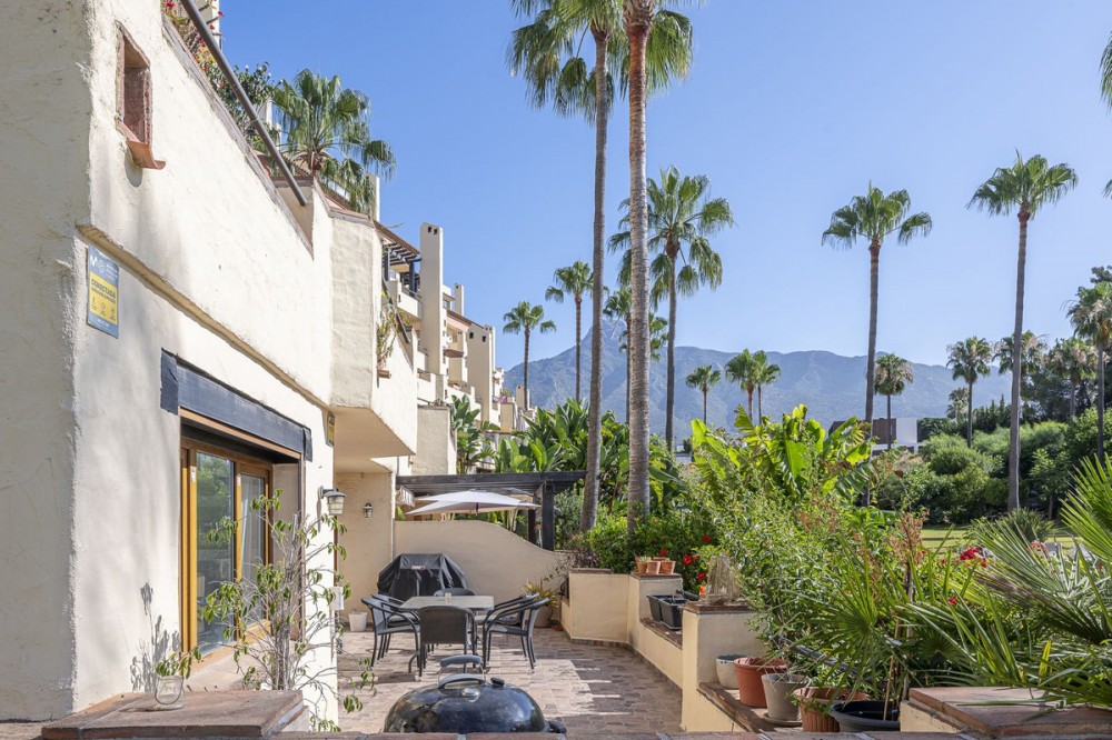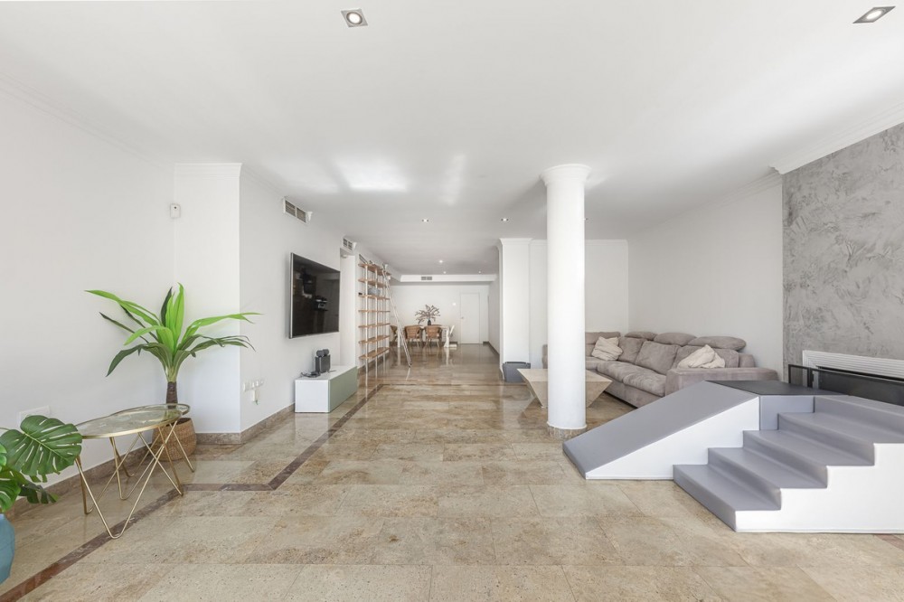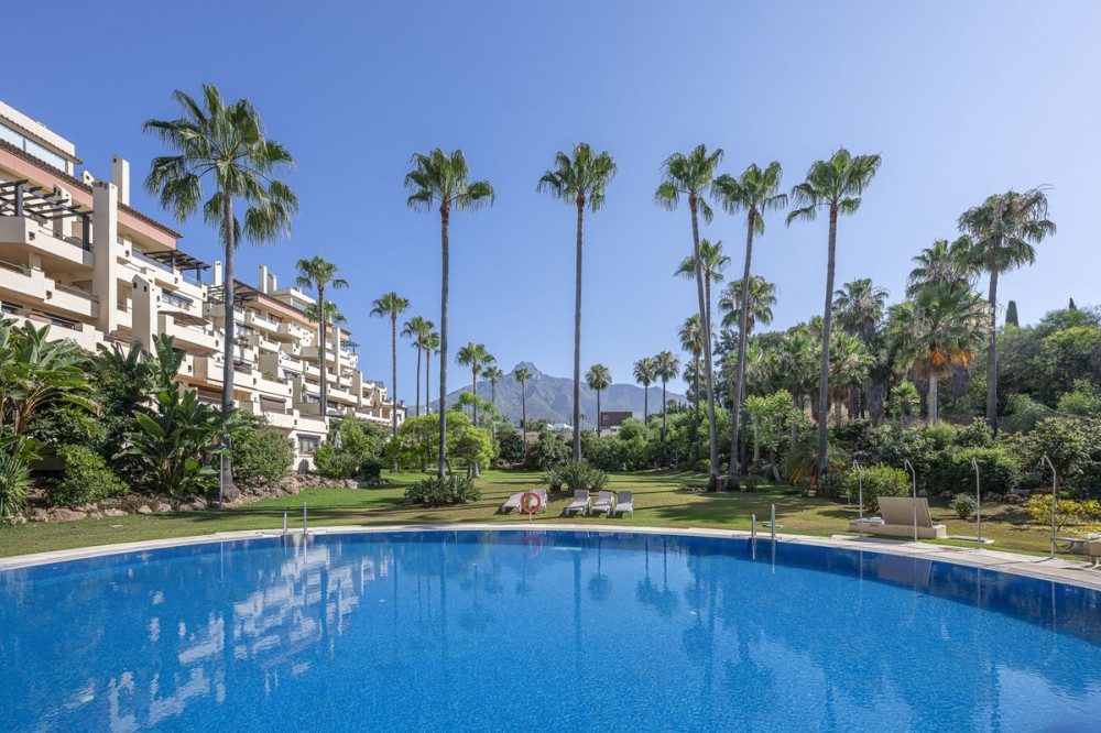- Spacious apartment with sea views and direct access to the community garden, located in one of the most peaceful and secure areas of the Golden Mile – Las Lomas del Marbella Club. Just 3 minutes from the beaches and lifestyle of Puente Romano, this apartment stands out for its generous and comfortable spaces. Partially renovated and perfectly oriented to enjoy the sun without overheating in summer. The property offers 3 bedrooms, two of them with en-suite bathrooms, plenty of wardrobes, and separate areas for privacy. The kitchen has been renovated and includes a laundry area on a separate terrace. The living and dining room feature a fireplace and open onto a large terrace with lovely views of the pool and the sea. A parking space and a storage room with lift access are included in the price. Ideal as a holiday home, rental investment, or for year-round living. The complex also offers concierge service and night-time security.