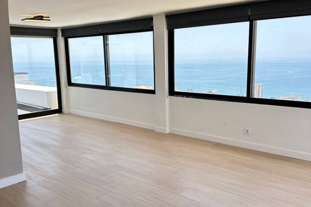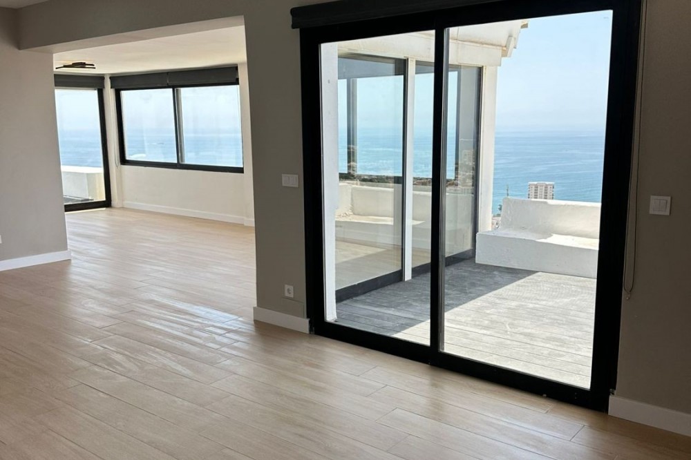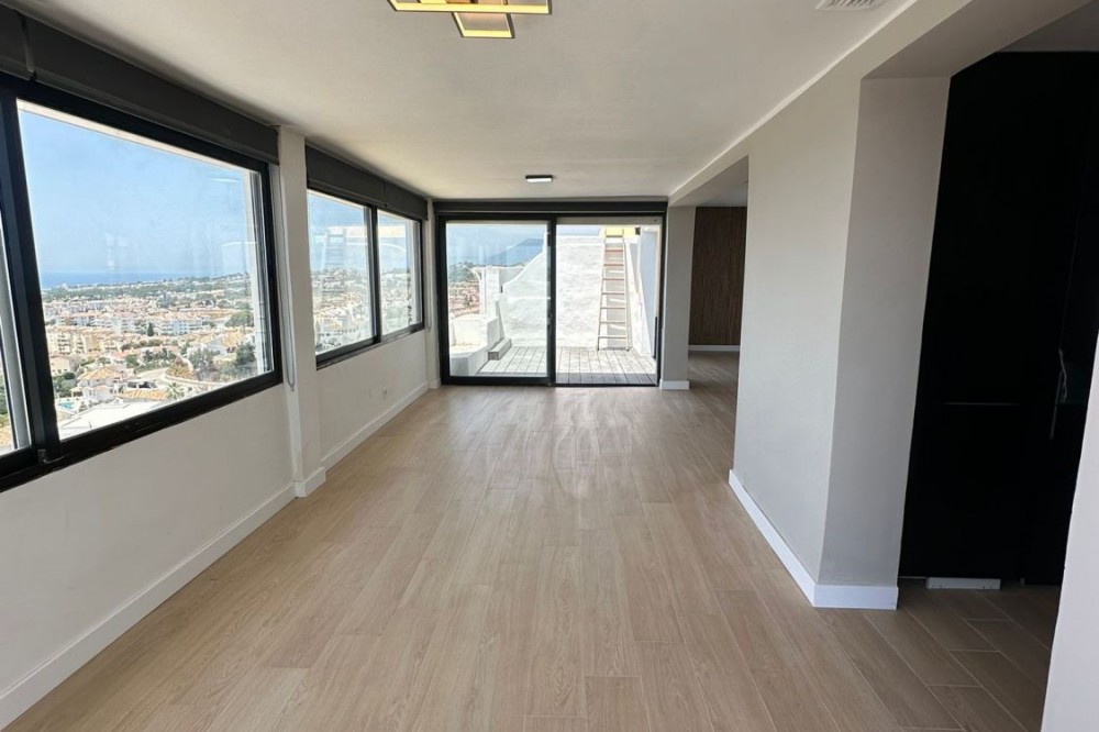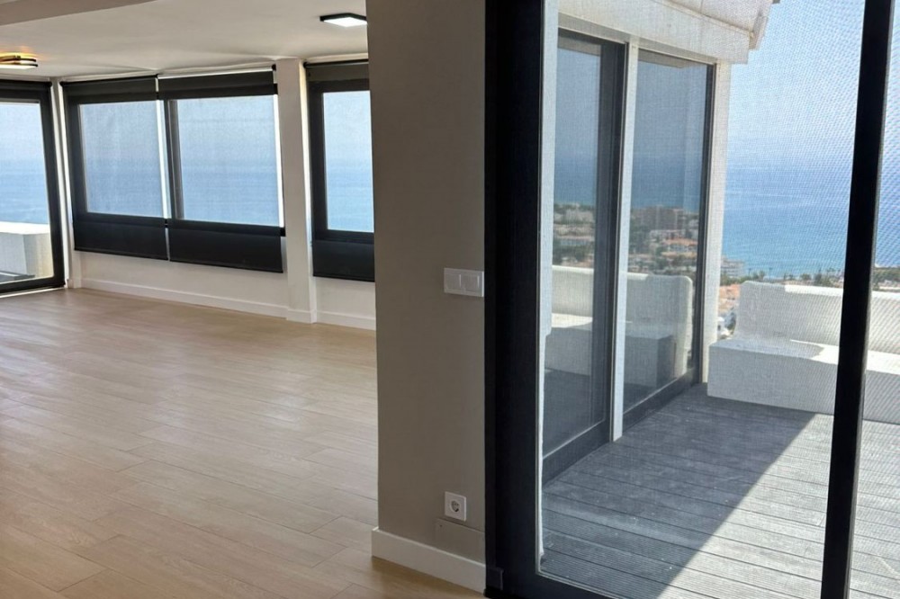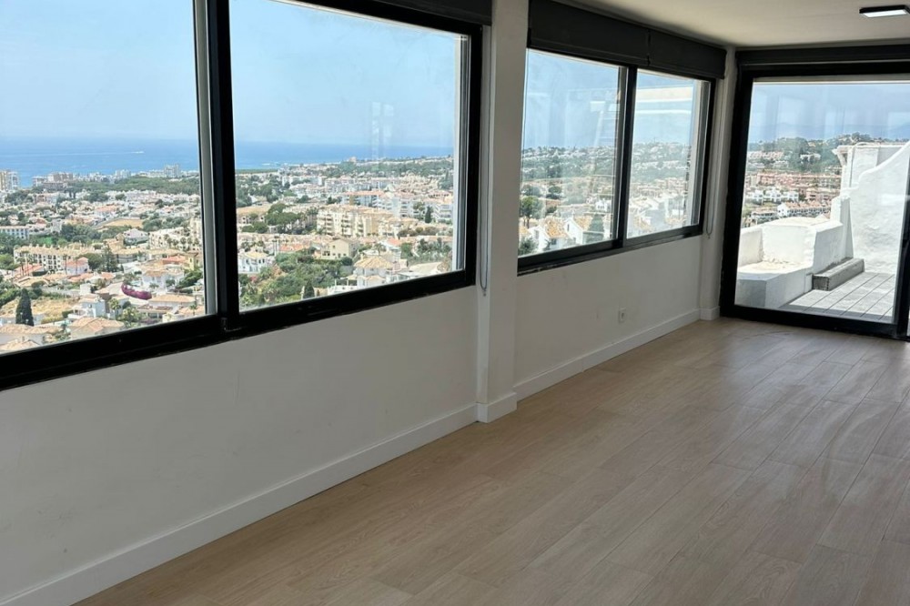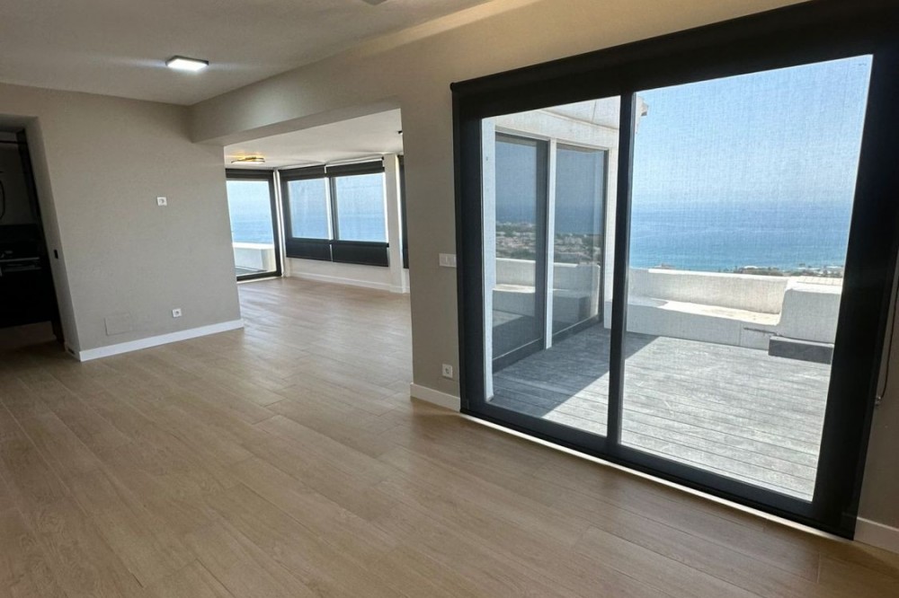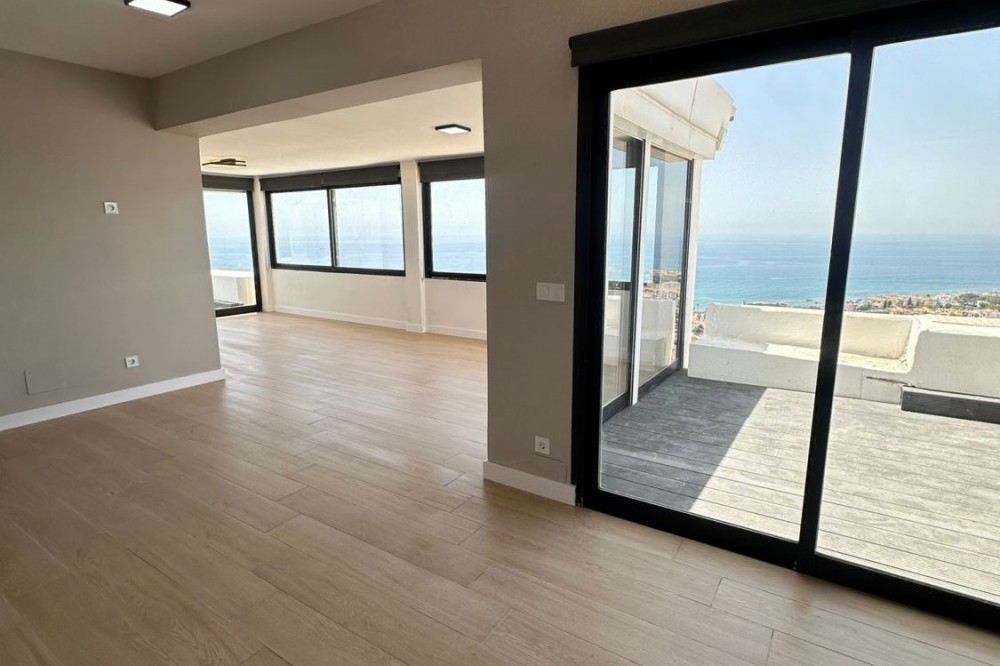 - We offer this wonderful penthouse for sale in the coastal town of Mijas, province of Málaga. Located in a gated community with a communal pool and well-maintained landscaped areas, this apartment will make your stay a healthy experience, filling you with vitality and good humor. 17 km from the center of Málaga city, it will provide you with access to all the services and facilities you may need (shops, supermarkets, sports, educational, and health centers, public transportation, hospitality and catering services, government offices, and leisure facilities, such as the Miraflores Golf Course (1.7 km) or Torre Nueva Beach (2 km), among others. This wonderful home is located on a single floor and is located in the penthouse of a residential building. This first-floor apartment, with no elevator, occupies an exclusive wing of the floor, ensuring privacy as it is not shared with neighbors. It has a constructed area of 115 m², distributed among: 3 bedrooms with built-in wardrobes, a separate kitchen, two full bathrooms (one en suite), and a spacious living-dining room with access to a 22 m² terrace. This spacious area, which seems to divide the terrace in two, is located inside the living room. It features large windows and large glass doors, from which you can enjoy the beautiful 360º panoramic sea views in any season, regardless of the weather (it is sunny for most of the day). You can also spend unforgettable moments with your loved ones enjoying the beneficial Mediterranean climate on the terrace on summer nights. This apartment is located in a residential area with a communal pool and gardens, providing a relaxing and fresh atmosphere during the summer. In terms of mobility, it has good connections by road (with easy access to the Mediterranean Motorway and the A-7) and public transport (bus service every half hour, nearby bus stop on line M-119, Fuengirola train station 18 minutes by car, and Plaza Mayor public transport station 28 minutes away), allowing quick access to neighboring towns such as Marbella and Fuengirola, and their wonderful leisure opportunities. This is a unique opportunity to acquire a home on the Costa del Sol with privacy, good transport links, and at an unbeatable price, as it is completely renovated and brand new. If you want to live in a quiet, residential area with all the amenities at your fingertips, this is your great opportunity. It is a unique opportunity to acquire this magnificent home at an exceptional price, which you can take advantage of for both your tourist and residential investment. Want to know more? NOTICE: The information contained in this advertisement may be subject to errors or omissions. Properties may be subject to price changes, sale, or withdrawal from the market. For more information, please do not hesitate to contact us. CONTACT US, WE WILL BE HAPPY TO ASSIST YOU. Our agency fees are already included in the sale price, so you will not have to pay any fees for management or real estate advice. In compliance with Andalusian Regional Government Decree 218/2005 of October 11, we inform you that notary, registry, property transfer (ITP), and other expenses inherent to the sale are not included in the price.