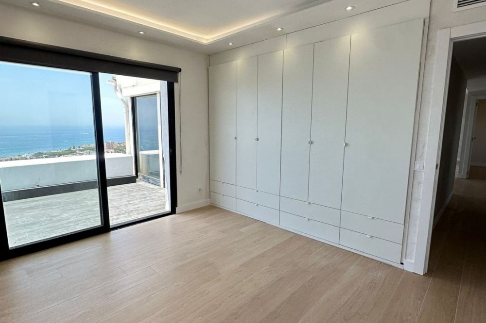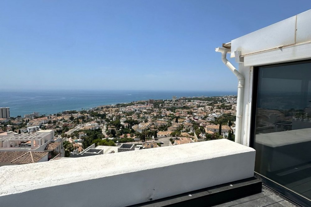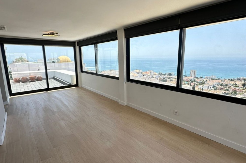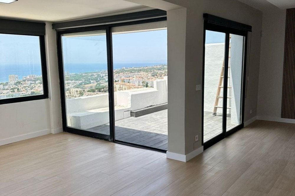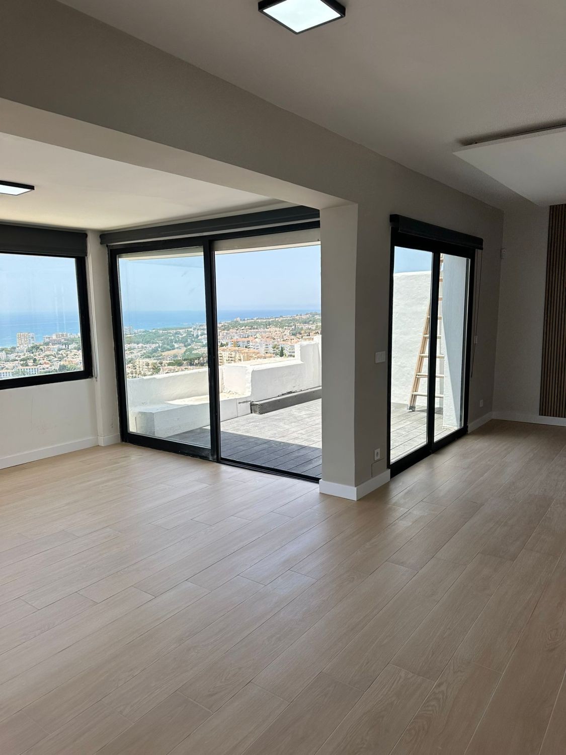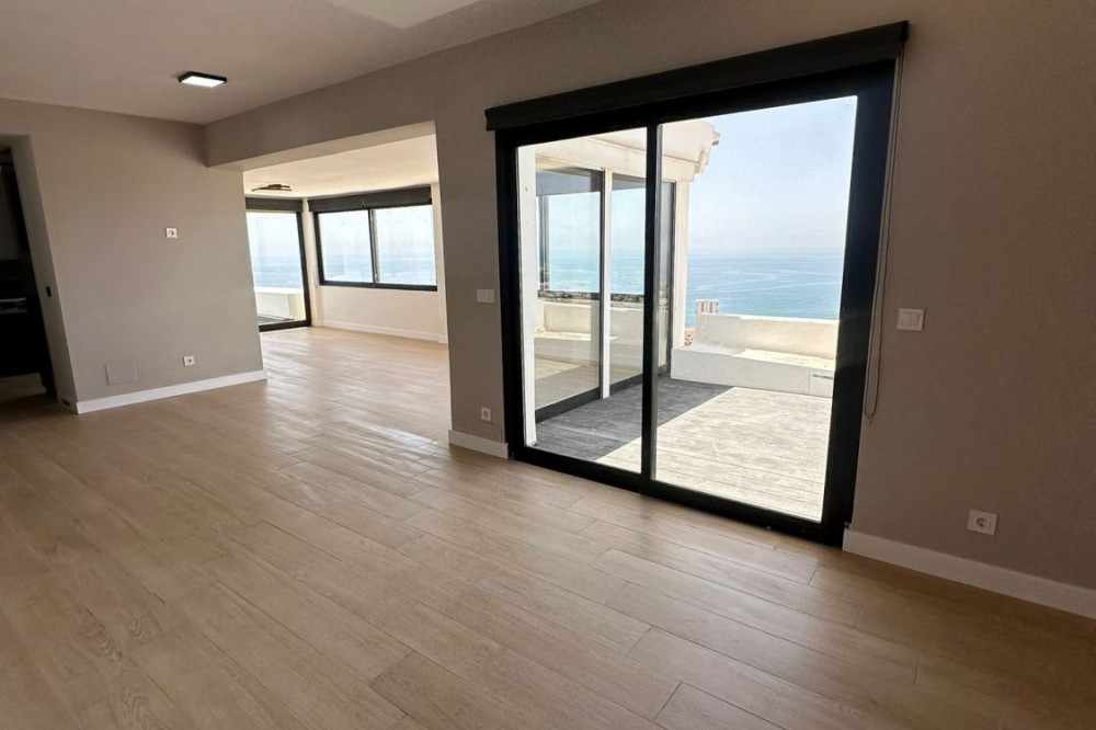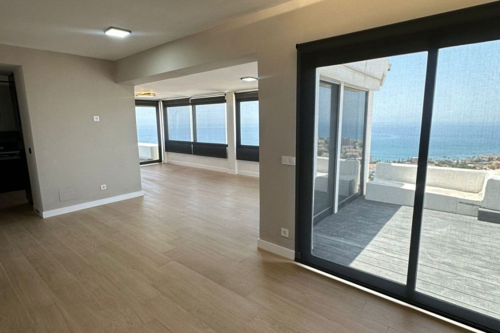 - We offer this wonderful penthouse for sale in the coastal town of Mijas, province of Málaga. Located in a gated community with a communal pool and well-maintained landscaped areas, this apartment will make your stay a healthy experience, filling you with vitality and good humor. 17 km from the center of Málaga city, it will provide you with access to all the services and facilities you may need (shops, supermarkets, sports, educational, and health centers, public transportation, hospitality and catering services, government offices, and leisure facilities, such as the Miraflores Golf Course (1.7 km) or Torre Nueva Beach (2 km), among others. This wonderful home is located on a single floor and is located in the penthouse of a residential building. This first-floor apartment, with no elevator, occupies an exclusive wing of the floor, ensuring privacy as it is not shared with neighbors. It has a constructed area of 115 m², distributed among: 3 bedrooms with built-in wardrobes, a separate kitchen, two full bathrooms (one en suite), and a spacious living-dining room with access to a 22 m² terrace. This spacious area, which seems to divide the terrace in two, is located inside the living room. It features large windows and large glass doors, from which you can enjoy the beautiful 360º panoramic sea views in any season, regardless of the weather (it is sunny for most of the day). You can also spend unforgettable moments with your loved ones enjoying the beneficial Mediterranean climate on the terrace on summer nights. This apartment is located in a residential area with a communal pool and gardens, providing a relaxing and fresh atmosphere during the summer. In terms of mobility, it has good connections by road (with easy access to the Mediterranean Motorway and the A-7) and public transport (bus service every half hour, nearby bus stop on line M-119, Fuengirola train station 18 minutes by car, and Plaza Mayor public transport station 28 minutes away), allowing quick access to neighboring towns such as Marbella and Fuengirola, and their wonderful leisure opportunities. This is a unique opportunity to acquire a home on the Costa del Sol with privacy, good transport links, and at an unbeatable price, as it is completely renovated and brand new. If you want to live in a quiet, residential area with all the amenities at your fingertips, this is your great opportunity. It is a unique opportunity to acquire this magnificent home at an exceptional price, which you can take advantage of for both your tourist and residential investment. Want to know more? NOTICE: The information contained in this advertisement may be subject to errors or omissions. Properties may be subject to price changes, sale, or withdrawal from the market. For more information, please do not hesitate to contact us. CONTACT US, WE WILL BE HAPPY TO ASSIST YOU. Our agency fees are already included in the sale price, so you will not have to pay any fees for management or real estate advice. In compliance with Andalusian Regional Government Decree 218/2005 of October 11, we inform you that notary, registry, property transfer (ITP), and other expenses inherent to the sale are not included in the price.