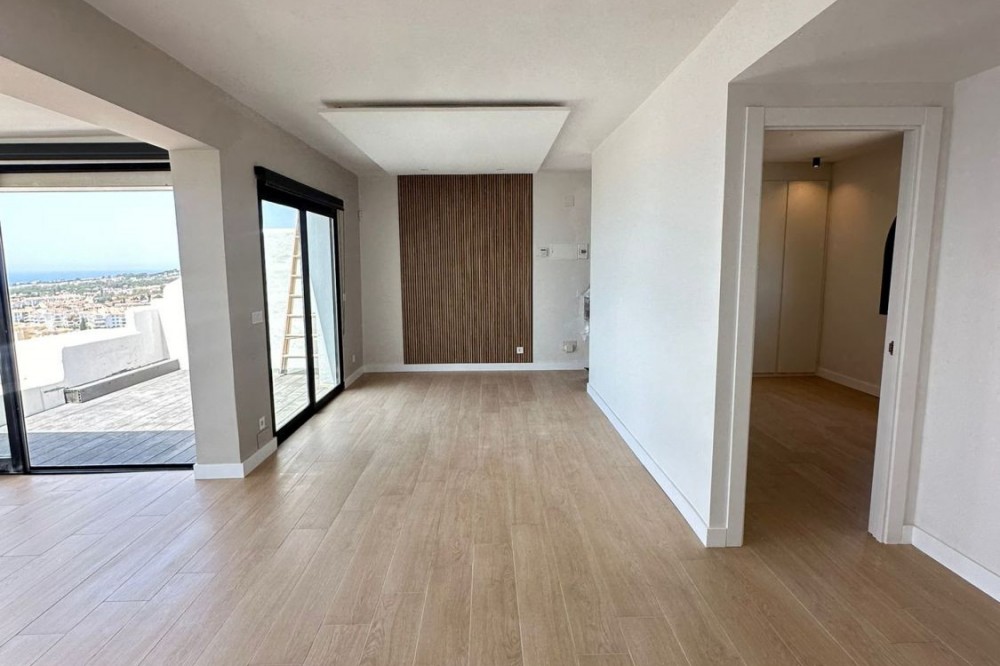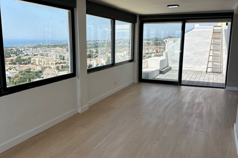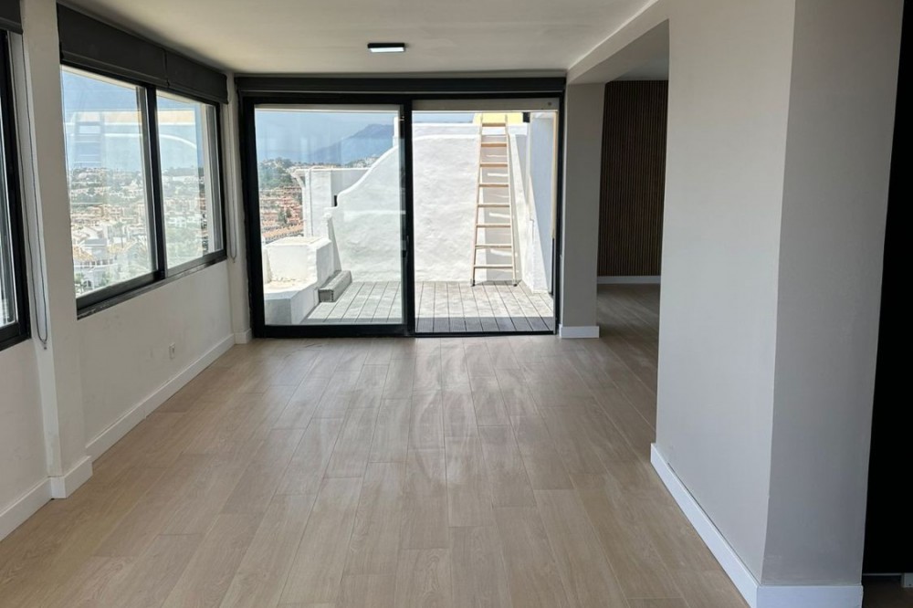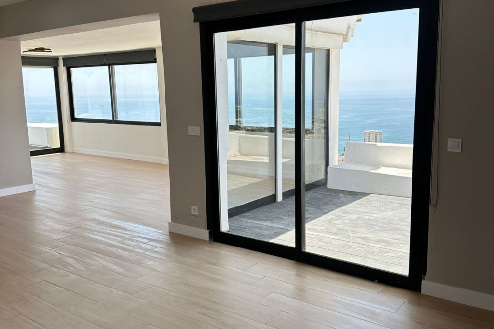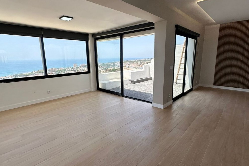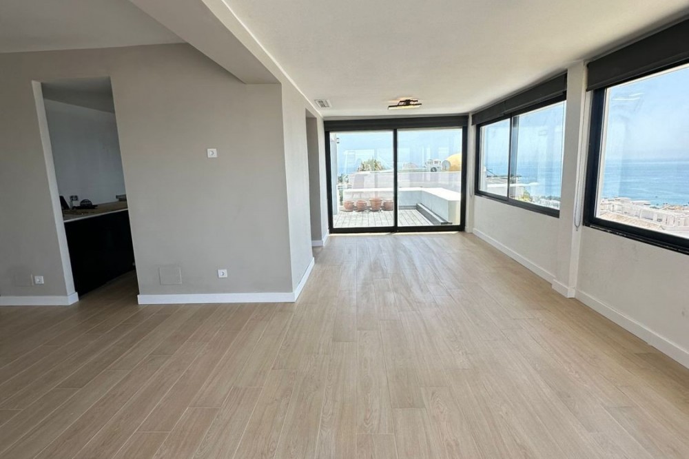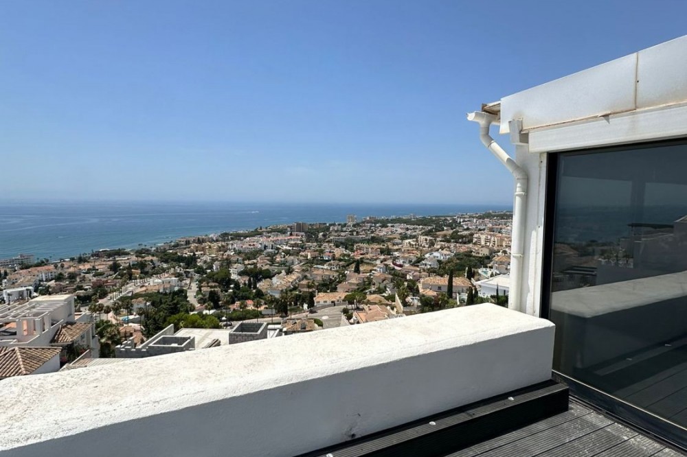- We offer this wonderful penthouse for sale in the coastal town of Mijas, province of Málaga. Located in a gated community with a communal pool and well-maintained landscaped areas, this apartment will make your stay a healthy experience, filling you with vitality and good humor. 17 km from the center of Málaga city, it will provide you with access to all the services and facilities you may need (shops, supermarkets, sports, educational, and health centers, public transportation, hospitality and catering services, government offices, and leisure facilities, such as the Miraflores Golf Course (1.7 km) or Torre Nueva Beach (2 km), among others. This wonderful home is located on a single floor and is located in the penthouse of a residential building. This first-floor apartment, with no elevator, occupies an exclusive wing of the floor, ensuring privacy as it is not shared with neighbors. It has a constructed area of 115 m², distributed among: 3 bedrooms with built-in wardrobes, a separate kitchen, two full bathrooms (one en suite), and a spacious living-dining room with access to a 22 m² terrace. This spacious area, which seems to divide the terrace in two, is located inside the living room. It features large windows and large glass doors, from which you can enjoy the beautiful 360º panoramic sea views in any season, regardless of the weather (it is sunny for most of the day). You can also spend unforgettable moments with your loved ones enjoying the beneficial Mediterranean climate on the terrace on summer nights. This apartment is located in a residential area with a communal pool and gardens, providing a relaxing and fresh atmosphere during the summer. In terms of mobility, it has good connections by road (with easy access to the Mediterranean Motorway and the A-7) and public transport (bus service every half hour, nearby bus stop on line M-119, Fuengirola train station 18 minutes by car, and Plaza Mayor public transport station 28 minutes away), allowing quick access to neighboring towns such as Marbella and Fuengirola, and their wonderful leisure opportunities. This is a unique opportunity to acquire a home on the Costa del Sol with privacy, good transport links, and at an unbeatable price, as it is completely renovated and brand new. If you want to live in a quiet, residential area with all the amenities at your fingertips, this is your great opportunity. It is a unique opportunity to acquire this magnificent home at an exceptional price, which you can take advantage of for both your tourist and residential investment. Want to know more? NOTICE: The information contained in this advertisement may be subject to errors or omissions. Properties may be subject to price changes, sale, or withdrawal from the market. For more information, please do not hesitate to contact us. CONTACT US, WE WILL BE HAPPY TO ASSIST YOU. Our agency fees are already included in the sale price, so you will not have to pay any fees for management or real estate advice. In compliance with Andalusian Regional Government Decree 218/2005 of October 11, we inform you that notary, registry, property transfer (ITP), and other expenses inherent to the sale are not included in the price.