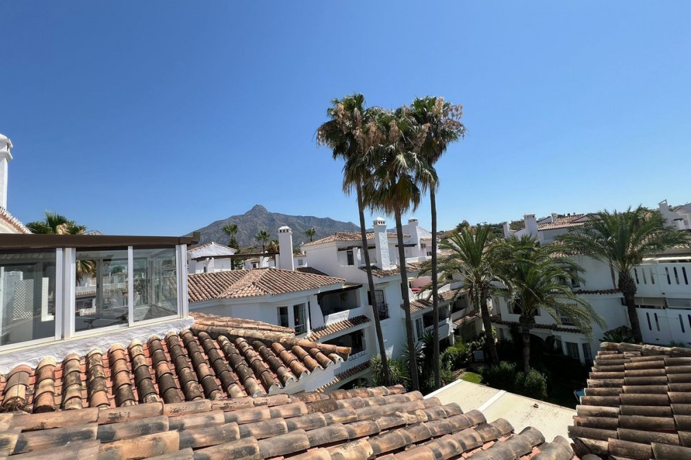 - Bright and spacious duplex penthouse in Los Naranjos, Marbella, overlooking the pool and the iconic La Concha mountain. This 145-square-meter home is located in one of Marbella's most exclusive areas. It is southeast-facing and enjoys plenty of light throughout the day. The property is spread over two floors. The first floor features a large living room with wooden floors and a fireplace that connects to a large terrace overlooking the pool, a spacious kitchen with a small balcony, a useful storage room, and finally a double bedroom with built-in wardrobes. On the second floor, we can enjoy a beautiful and spacious bedroom with mountain views. This property represents an excellent investment opportunity, combined with the surroundings and the convenience of being just minutes from Puerto Banús and close to all amenities, making it a perfect choice for those seeking quality of life or secure profitability. The sea is just 1,000 meters away, and it also has a communal parking lot, beautiful gardens for strolling, and a communal pool open all year round.