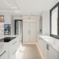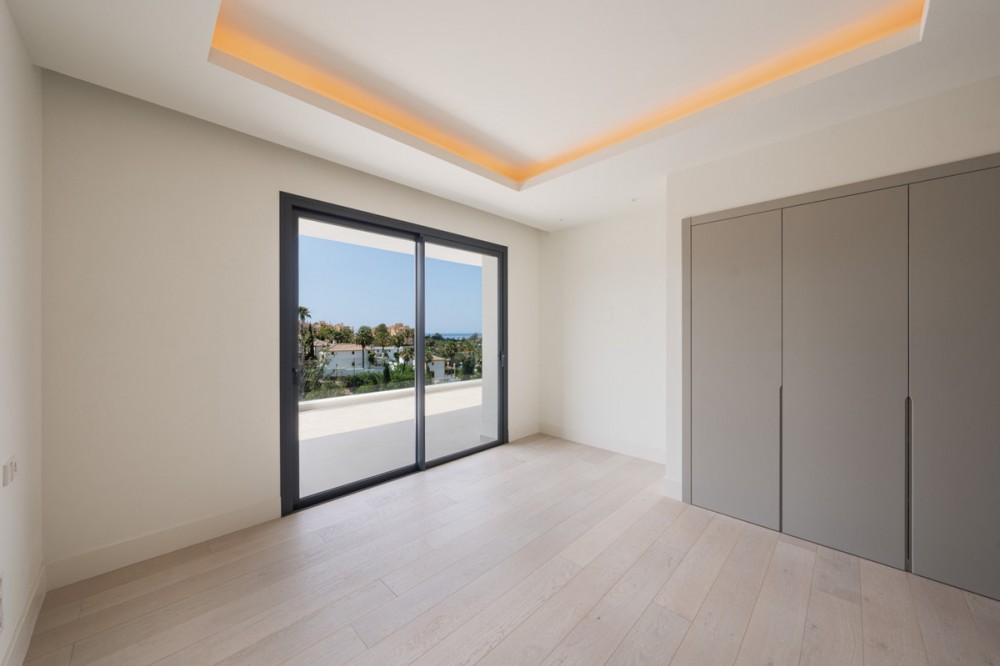 - Villa Three, located in the distinguished La Resina Golf community within Estepona’s flourishing residential zone, is an architectural statement combining contemporary sophistication and practical luxury. Designed by the acclaimed Francisco Martínez Galván, this four-level residence encompasses an impressive total built area of 674 square meters. The interior offers 503 square meters of meticulously crafted living space, while an additional 171 square meters of terrace ensures a seamless transition between indoor elegance and open-air enjoyment. The arrival experience is nothing short of memorable. Guests and residents are guided directly to the rooftop terrace via a private driveway, establishing a bold entrance that sets the tone for what lies beyond. From the rooftop, expansive views sweep across the carefully manicured fairways of La Resina Golf Course and extend to the shimmering Mediterranean Sea. This vantage point includes thoughtful features such as a Jacuzzi and a pre-installed built-in BBQ area, transforming it into an ideal setting for social gatherings or tranquil sunset moments. Descending into the main living floor reveals a layout designed for fluid movement and connection. The open-plan design integrates spacious living and dining areas, centered around a custom kitchen accented by a striking natural stone island. A side dirty kitchen supports larger entertaining needs without intruding on the clean aesthetics of the main space. Floor-to-ceiling windows welcome an abundance of natural light and create an uninterrupted visual link to the outdoor infinity saltwater pool. Surrounded by mature landscaping and tropical plants, this pool area embodies an atmosphere of privacy and leisure. The main floor also includes an en-suite guest bedroom, providing comfort and accessibility for visitors, while integrated ceiling sound systems and a pre-installed domotic setup ensure the space is ready for modern smart living. The upper level is dedicated to an expansive master suite that redefines private luxury. The suite offers direct access to a generous terrace with panoramic sea views, ideal for morning reflections or evening relaxation. A walk-in wardrobe provides ample space for curated collections, while the marble bathroom invites indulgence with its free-standing soaking tub and carefully selected finishes. An additional en-suite bedroom on this floor mirrors the same high standard of design, offering serene garden views and fostering a restful environment. Potential for further customization exists in the basement level, where future owners may choose to create additional bedrooms, a private gym, a home cinema, or a dedicated spa area, all with direct access to the lush garden. This flexibility allows the home to adapt to evolving lifestyle needs, whether for family expansion, wellness, or entertainment. La Resina Golf is celebrated for its secure, private ambiance and refined architectural style, characterized by a harmonious blend of contemporary lines and natural materials that echo the surrounding landscape. The neighborhood consists mainly of upscale villas and modern homes, creating a cohesive and sophisticated atmosphere that attracts both local and international buyers seeking a high-quality living experience. Residents benefit from excellent proximity to essential amenities and leisure attractions. The International American College is nearby, offering top-tier educational opportunities, while the newly established padel courts at Bossa Café provide dynamic social and fitness options. Local shops, schools, and popular dining spots can be reached within a brief five-minute drive. The sandy beaches and marina, including yacht moorings, are less than ten minutes away, enabling easy access to water sports and seaside relaxation. Estepona is admired for its vibrant beach clubs and traditional chiringuitos like Chiringuito Palm Beach, where one can enjoy fresh seafood and cocktails by the shore. Daily conveniences are further supported by strong connectivity. The A-7 motorway enables smooth travel along the coast, while local bus services and taxi availability ensure that exploring the region is straightforward. The Estepona bus station connects to broader destinations, and Malaga Airport, approximately 45 minutes away, offers frequent international connections, simplifying both business and leisure travel. Villa Three embodies the essence of refined coastal living, combining stunning architecture, practical luxury, and a superb location within one of Estepona’s most desirable golf communities. The residence provides an unparalleled setting for spacious family life, wellness, and entertaining, all framed by sweeping sea and golf course views. This exceptional villa stands as a testament to quality design and thoughtful planning, promising an elevated lifestyle defined by both elegance and convenience.