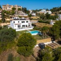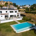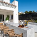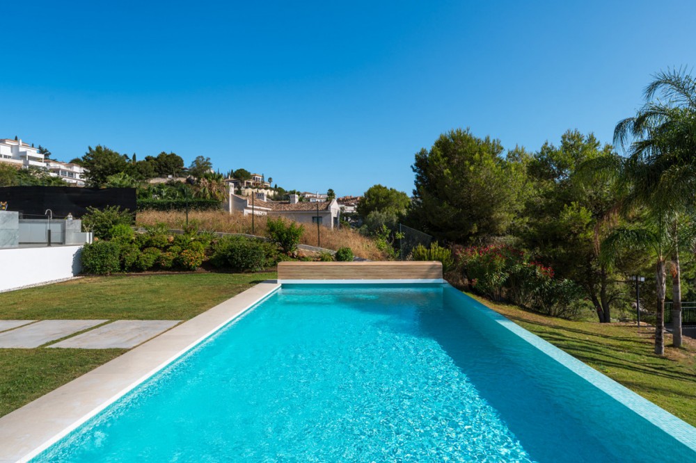 - Positioned within the prestigious Santa Maria Golf urbanization in Elviria, Villa Andrea is an extraordinary frontline golf villa for sale in Marbella offering contemporary luxury, seamless design, and a highly desirable setting. Built in 2021 on a generous plot of 1,743 square meters, the villa boasts 902 square meters built including 264m2 of terraces offering an expansive indoor-outdoor living experience tailored for both leisure and lifestyle. Spread across three levels served by a lift and a wide staircase, the villa is thoughtfully laid out to balance elegance with practicality. It features five spacious en-suite bedrooms (3 of them are in the same level). The design embraces refined materials such as ceramic stone and warm wood finishes, brought together under a sleek architectural vision. High-end details including Miele appliances, solar panels, electric blinds, and an automatic irrigation system underline the home’s intelligent, sustainable engineering. Each floor flows effortlessly to the next, with expansive terraces accessible from all bedrooms and common areas. Outdoor spaces include a covered swimming pool, private barbecue zone, and a sauna—ideal for entertaining, family life, or quiet relaxation. Panoramic views over the Santa Maria Golf course and out to the Mediterranean Sea reinforce the villa's prime positioning and tranquil atmosphere. Security and functionality go hand in hand. Villa Andrea is fitted with security shutters, a comprehensive alarm system, and private gated access. A large basement area includes a three-car garage and a storeroom—perfect for storing golf equipment or seasonal belongings—while additional outdoor parking ensures practicality for everyday living or entertaining. The villa’s location in the sought-after Elviria district places it just a five-minute drive from Carrefour supermarket and essential shops, while the golden sands and vibrant atmosphere of Nikki Beach are less than ten minutes away. Families will value the proximity to international schools such as the German International College, reachable within a few minutes by car. As part of the Santa Maria Golf Community, Villa Andrea enjoys direct access to Santa Maria Golf & Country Club’s acclaimed 18-hole course, as well as its driving range and putting green. The surrounding neighborhood features upscale villas and low-density residences, offering tranquility, scenic golf views, and a well-maintained environment. Dining, sport, and leisure options are abundant. Gastronomic highlights include El Lago Restaurant at Greenlife Golf, a Michelin-starred culinary destination, and beachfront restaurants such as Playa de la Fontanilla and Chiringuito Los Tony's. For world-class dining and entertainment, Puerto Banús is a short drive away with venues like La Sala offering international menus and a lively social scene. Luxury shopping is within easy reach, with La Cañada Shopping Center and the designer boutiques of Puerto Banús and Marbella Old Town providing extensive retail options. The villa’s connectivity is another key advantage, with the A-7 motorway offering a direct 40-minute route to Málaga-Costa del Sol Airport. Public transport links, including bus services, further support regional and local accessibility. Tennis and padel courts, fitness centers, and beach clubs add further lifestyle value, along with Elviria’s scenic surroundings ideal for walking, cycling, or unwinding outdoors. The area's refined yet relaxed character appeals to permanent residents, holiday homeowners, and investors alike. Villa Andrea represents a rare opportunity to acquire a fully modernized, frontline golf villa with large built dimensions, generous terraces, and one of the most enviable plots in Elviria. Its seamless blend of contemporary architecture, top-tier amenities, and coastal golfside location make it a standout choice for those seeking space, sophistication, and superior quality on the Costa del Sol.