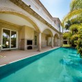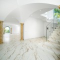 - Villa Roma is a stunning four-bedroom, four-bathroom home in the exclusive beachside area of Los Monteros, Marbella East. Just a short walk from the beach, this elegant villa sits on a 933m² plot and combines classic European design with modern coastal comfort. Spread across three levels, it offers generous living spaces, two en-suite bedrooms, and seamless indoor-outdoor flow, creating the perfect balance of style and practicality. Step inside through a grand entrance with elegant pillars and marble floors that set the tone for this exceptional home. The open-plan living room features a grand fireplace, while the upper level enjoys natural light from a domed ceiling and large windows. The master suite includes a walk-in dressing room, a Juliet balcony overlooking the pool, and a sense of calm and privacy. The lower level adds flexibility with space for a gym, cinema, or guest suite—ideal for modern living. Outside, Villa Roma offers a private haven surrounded by tall palm trees. The pool, with its four waterfalls, creates a peaceful, spa-like atmosphere, while a stone terrace with a wood-burning barbecue makes entertaining easy. A fishlake beside the terrace adds to the villa’s charm and serenity. Every detail of Villa Roma has been designed with care, making it a rare opportunity to own a truly timeless property just moments from Marbella’s finest beaches.