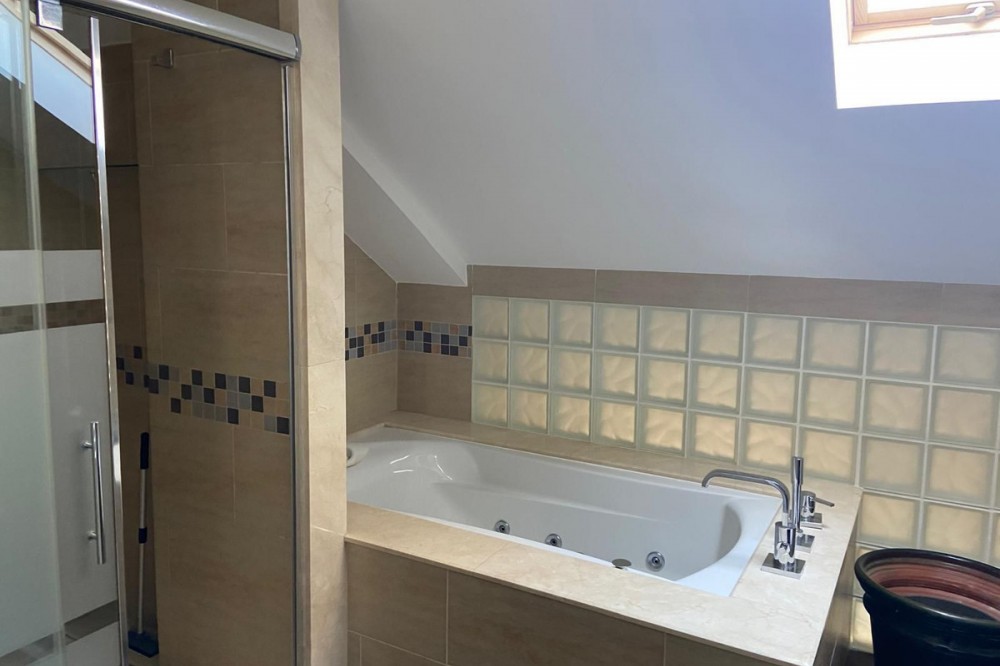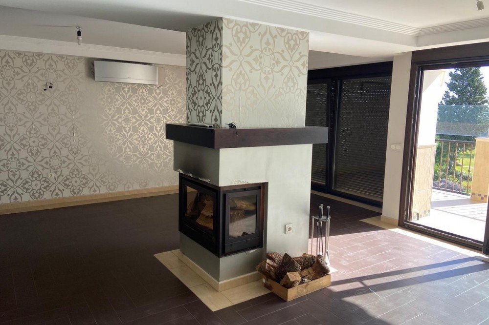 - Beautiful duplex penthouse in the prestigious Bahia Dorada urbanisation in Estepona. This urbanization very close to the marina of Estepona and the centre of the beautiful Mediterranean town, has 9 communal swimming pools, some of which are located on the beachfront and tennis court. With new décor, the space feels even more expansive (see the proposed décor renderings beside each photo) The property is situated in a building of only 4 duplex flats with spacious interiors and terraces of 16 square metres, offering beautiful views to the communal areas of the urbanization, its gardens and the sea in the background. The duplex penthouse is completely refurbished, highlighting its spacious kitchen with top brand appliances and excellent quality finishes, large storage space and cupboards. The living-dining room is very well organised, large, spacious, with a modern square fireplace, which divides the living-dining room and the living area. On the same floor there is a toilet and a walk-in wardrobe or storage room. On the upper floor we find a mezzanine, where there is a large office, to work or study or it could be used as a bedroom. also there are 3 spacious bedrooms, one of them with dressing room and a bathroom with hydro-massage bathtub and shower, very modern, with light coming in through the glazed ceiling, making it very luminous. On this floor there is also a practical laundry area with connections for washing machine and dryer with storage area. Bahia Dorada has a very strategic position, very close to Estepona, restaurants, leisure areas, next to schools, the new high resolution hospital etc... but with the tranquillity of its spacious communal areas and the tranquillity of large green areas.