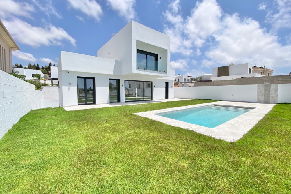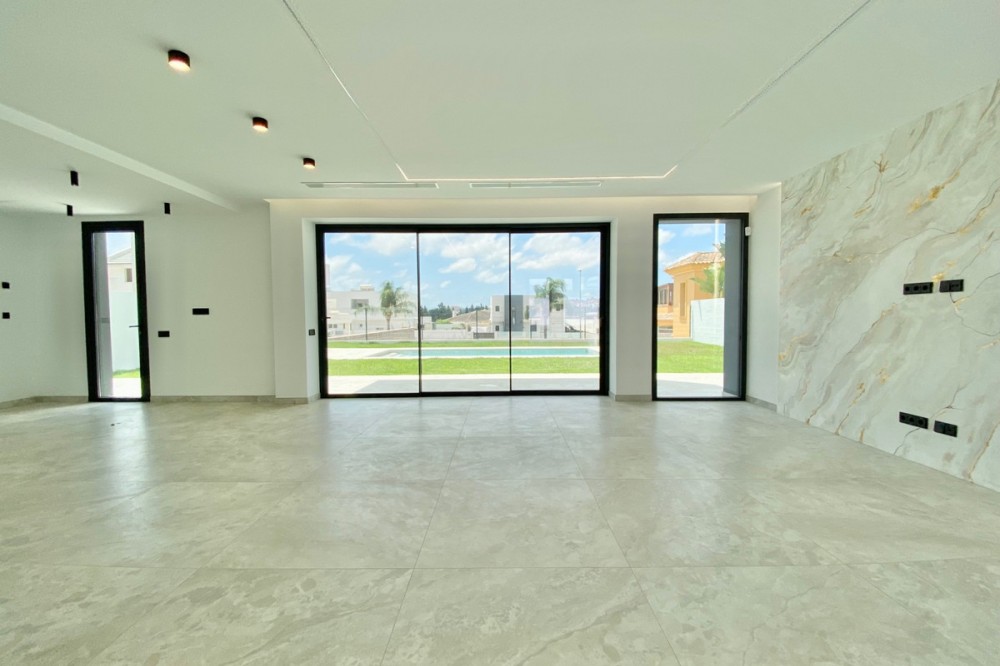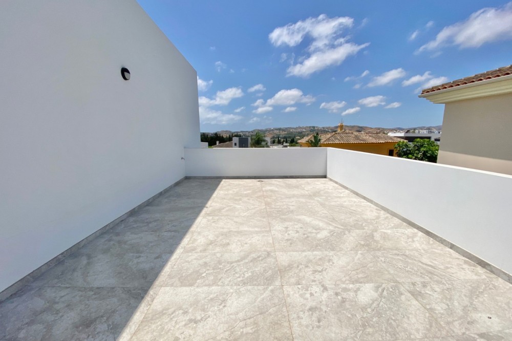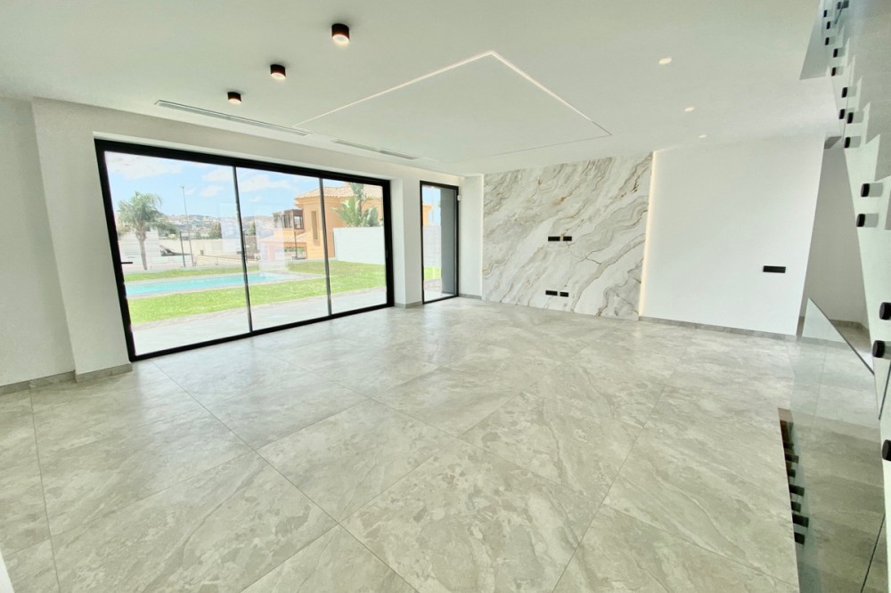 - New Development: Prices from €1,400,000 to €1,400,000. [Bedrooms: 2] [Bathrooms: 3] [Built size: 209m2]. Luxury Villa in La Sierrezuela, Mijas Costa Discover this exclusive new-build home located on a 452 m² plot in the prestigious residential area of La Sierrezuela. Its modern and elegant design, combined with high-quality finishes, offer a unique home in a peaceful and well-connected setting. Smart and Comfortable Layout The house is spread over three floors: - Main Floor: Bright, open-plan living and dining area that integrates with the terrace, garden, and private saltwater pool. Designer kitchen equipped with state-of-the-art appliances, an en-suite bedroom, and a guest toilet. - Upper Floor: Master bedroom with dressing room, en-suite bathroom, and access to two large terraces. An ideal private space for relaxation. - Basement: Multifunctional area perfect as a games room, gym, or leisure area. It also features a utility room and storage room. Quality and Technology - Porcelanosa flooring and wall coverings, Roca faucets. - Aluminum windows with thermal break. - KNX home automation system to control lighting, air conditioning, and underfloor heating. - Energy-efficient windows. - Solar panels. Prime location. Just five minutes from the beach and close to all amenities: supermarkets, schools, public transportation, and quick access to Fuengirola and other points of interest. The area is very safe, with video surveillance throughout and security vehicles. A safe investment. This villa is ideal both as a permanent residence and as an investment in one of the most sought-after areas of the Costa del Sol.