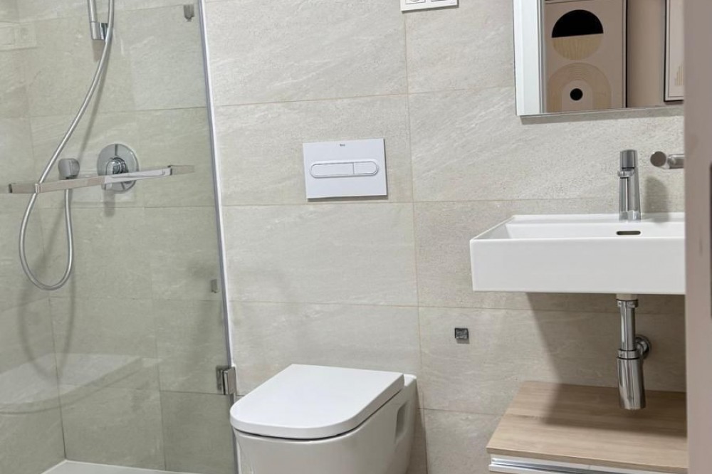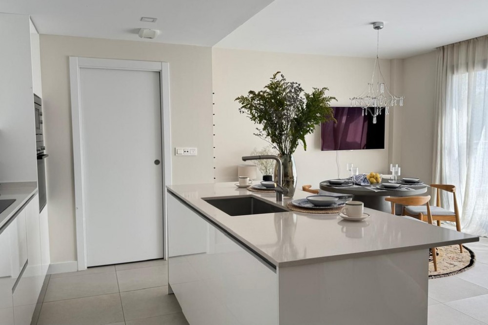 - Spacious Apartment with Sea Views in Las Mesas Homes A fully renovated three-bedroom, two-bathroom apartment for sale, located in the secure and well-maintained gated community of Las Mesas Homes. The property has undergone a complete renovation — everything is brand new, modern, and finished with great attention to detail. The open-plan kitchen and living area lead out to a large terrace with beautiful sea views — perfect for relaxing or entertaining. One of the bedrooms features a private walk-in closet. Both bathrooms are stylish and offer a high level of comfort. The urbanisation is quiet and green, with a communal swimming pool and landscaped areas. The price includes an underground parking space as well as a private storage room — a practical solution for extra space. Ideally located close to supermarkets, restaurants, parks, and all essential amenities. A perfect choice for both permanent living and investment.