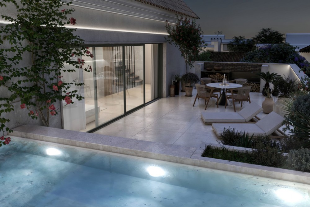 - New Development: Prices from €550,000 to €1,010,000. [Bedrooms: 1 - 3] [Bathrooms: 1 - 2] [Built size: 52m2 - 94m2]. This stunning residential development comprises 10 exclusive homes located in a privileged urban setting in the heart of Estepona. With architecture that blends classical elements with the latest trends in contemporary design, the project stands out for its exceptional quality and a concept that transforms tradition into modernity. The residences offer spacious interiors and high-spec features, available in 1-, 2-, and 3-bedroom layouts, distributed across the ground floor, first floor, second floor, and penthouse level. These designer homes feature 2 bathrooms—one of them en suite—as well as terraces, private pools, and patios, depending on the unit type. They come equipped with furnished kitchens, modern appliances, aerothermal climate control, air conditioning, heating, and double glazing. Each property includes a parking space accessible via a vehicle lift and a storage room. The building also includes an elevator, a solar energy system, and boasts a high energy rating. Designed for exceptional year-round living, this development takes full advantage of the Costa del Sol’s outstanding climate, with over 300 days of sunshine per year. Its central location in Estepona allows residents to enjoy true luxury, surrounded by top-tier amenities and with everything within easy reach.