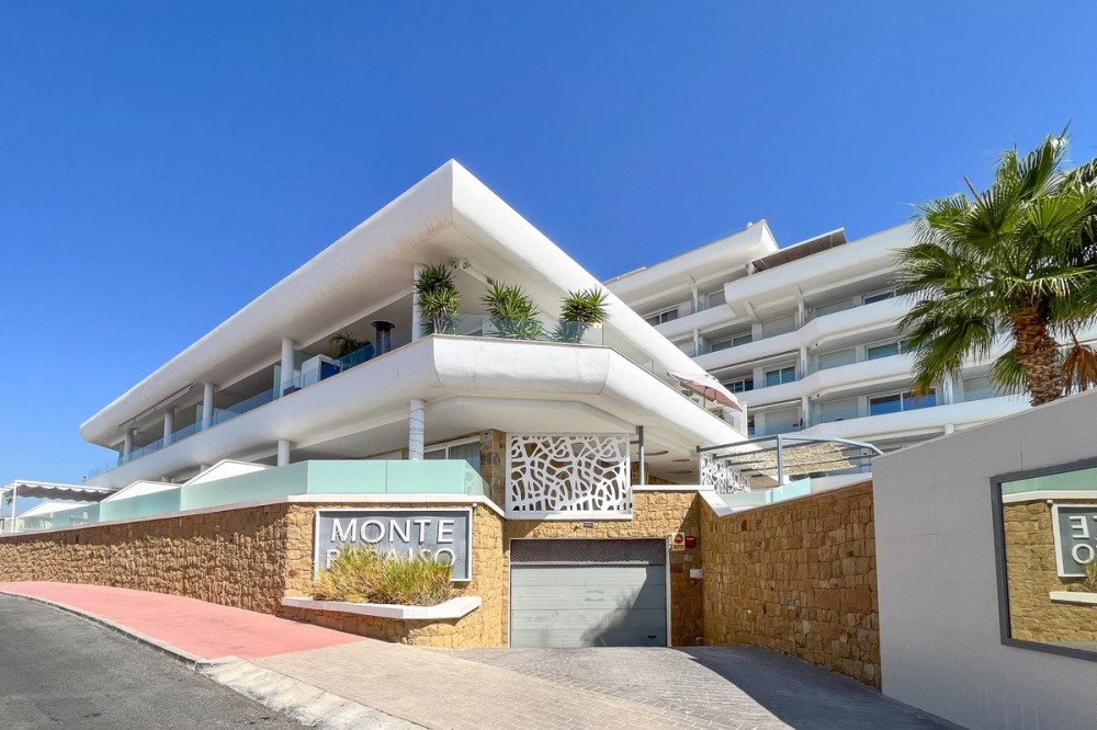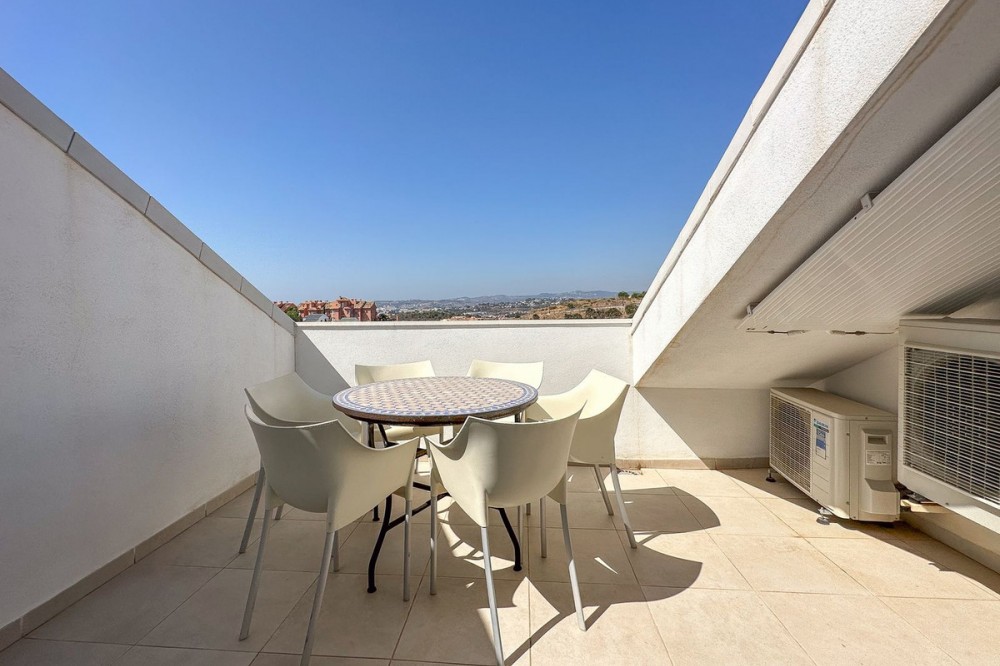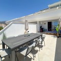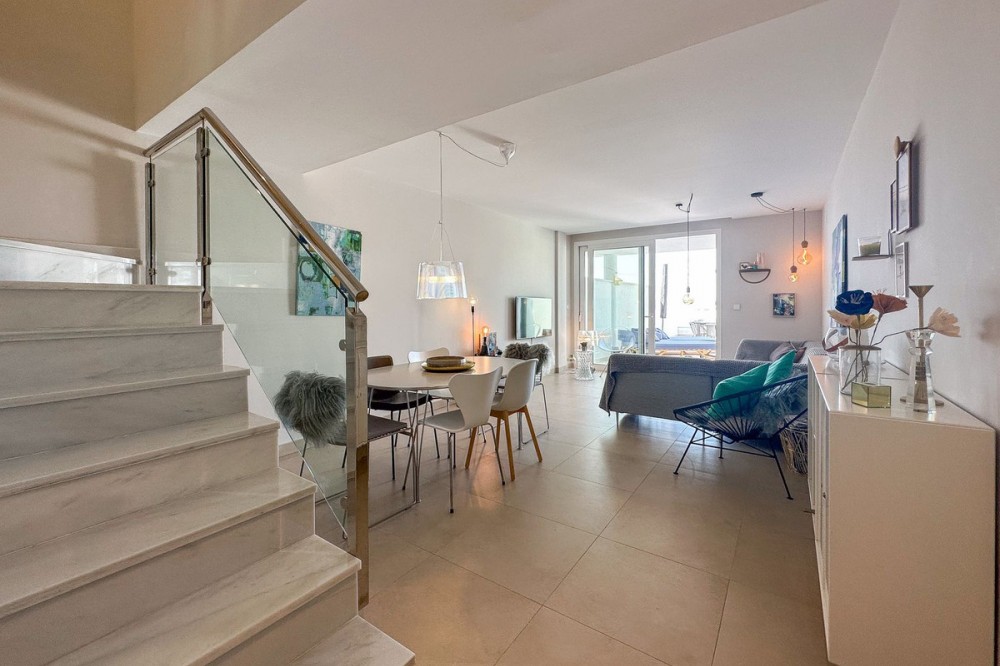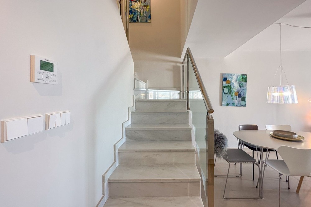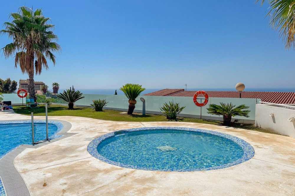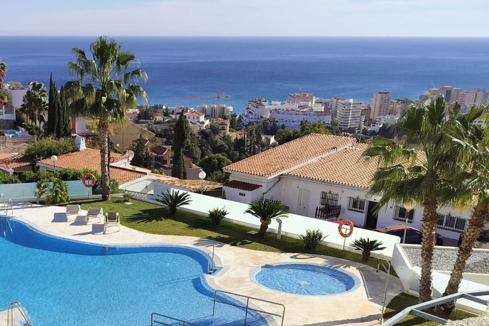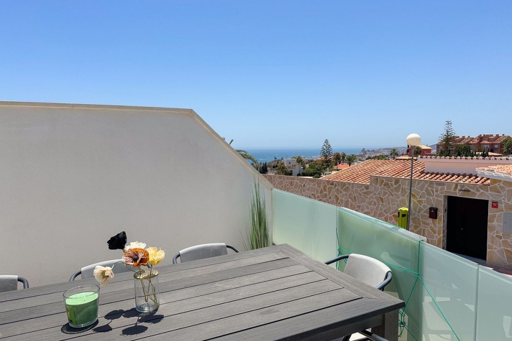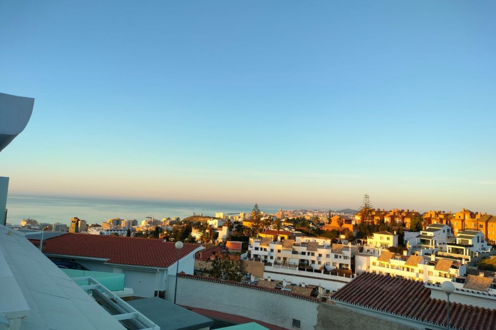 - The apartment does not have a tourist license and the owner's association does not allow it. Wonderful 2 bedroom duplex apartment from 2019 with sea and mountain views for sale, in the fantastic relaxing Monte Paraiso complex (Torreblanca). The property, is south-west facing and offers two fantastic terraces, with plenty of opportunities for relaxation and enjoying the sun. One on the 1st floor 11.5 m² with a panoramic view over the Mediterranean Sea and Fuengirola town, on the horizon you can see the mountain peaks from Morocco. On the same floor, you will find two bedrooms and a bathroom, from the master bedroom there is access to the terrace. The terrace on the ground floor is 31.5 m², of which 11.4 m² is covered, here you can enjoy the sun from the morning until it sets. The large size of the terrace makes it possible to have lounge furniture, a large dining table, sunbathing, there is also the possibility of a cold bath undisturbed by neighbours. In the evening, there is the opportunity to see the sun set behind the Mijas mountains, as well as a view over the Mediterranean Sea, Fuengirola town and the mountain peaks. In addition, there is a nice large well-functioning kitchen and toilet. The home includes 2 parking spaces at the same level as the apartment, as well as a storage room. The complex offers a nice large pool with a view (city, sea and mountains), children's pool, sauna, fitness, barbecue and common room with internet and printer. When you leave the main entrance of the complex, you will find the restaurant Case Pepe, where you can enjoy a good dinner and meet the others from the area. The bus goes from the main entrance to Torreblanca station and Los Boliches. A brisk walk to the beach takes approx. 15 min., on the way you pass Torreblanca train station.
