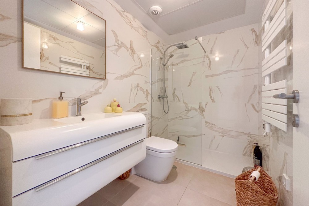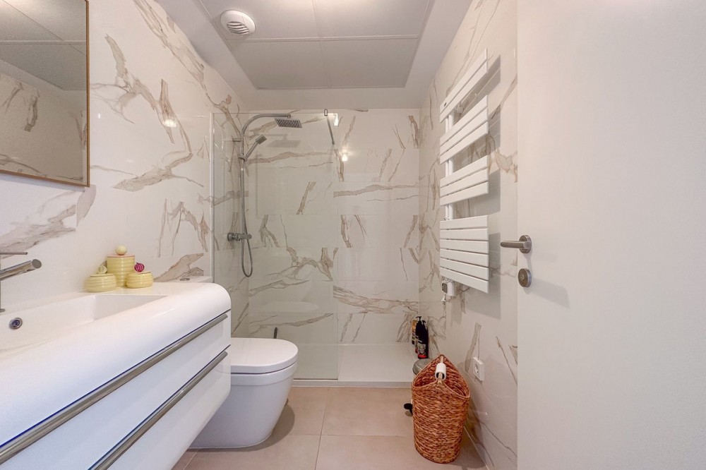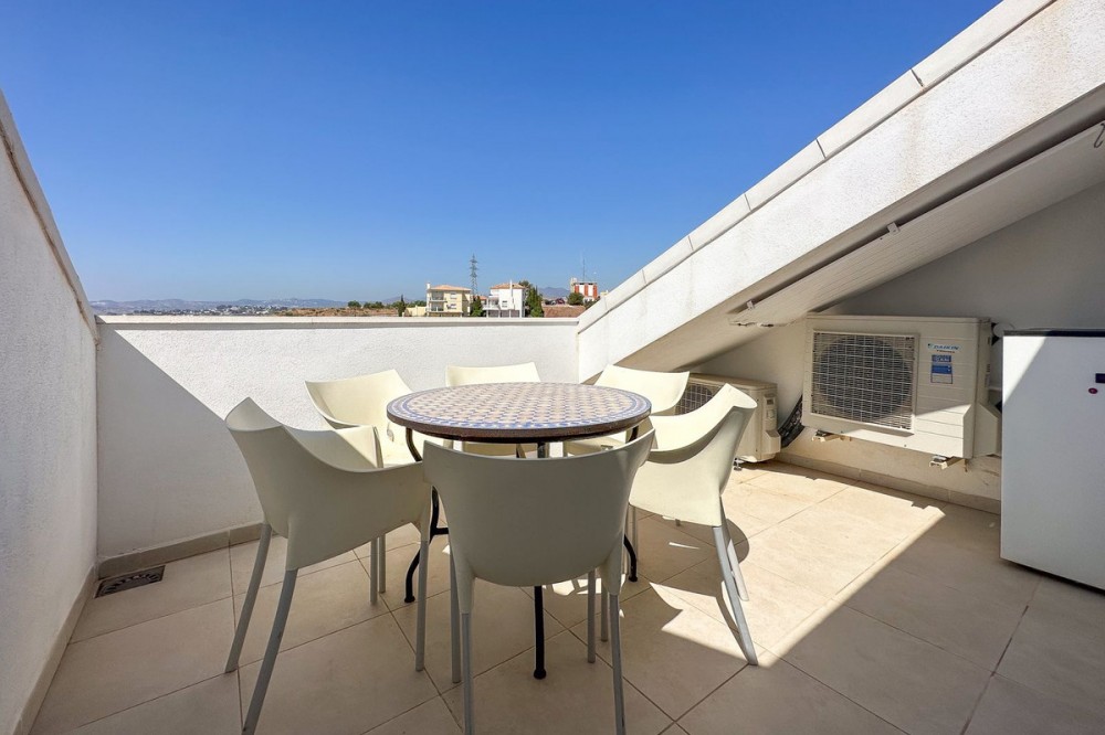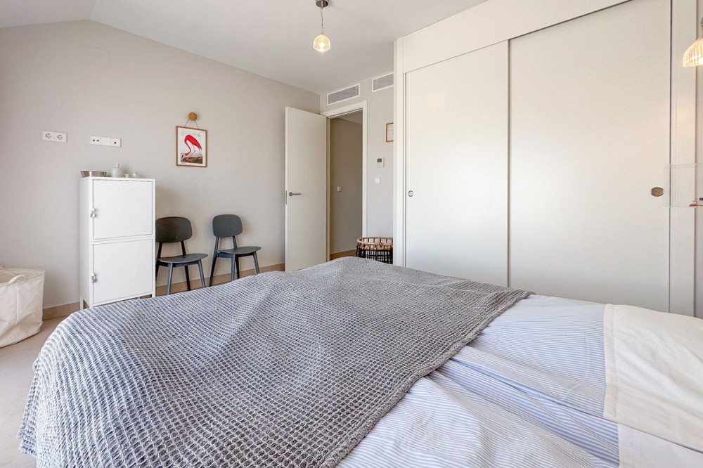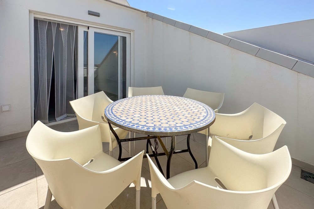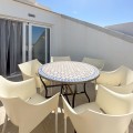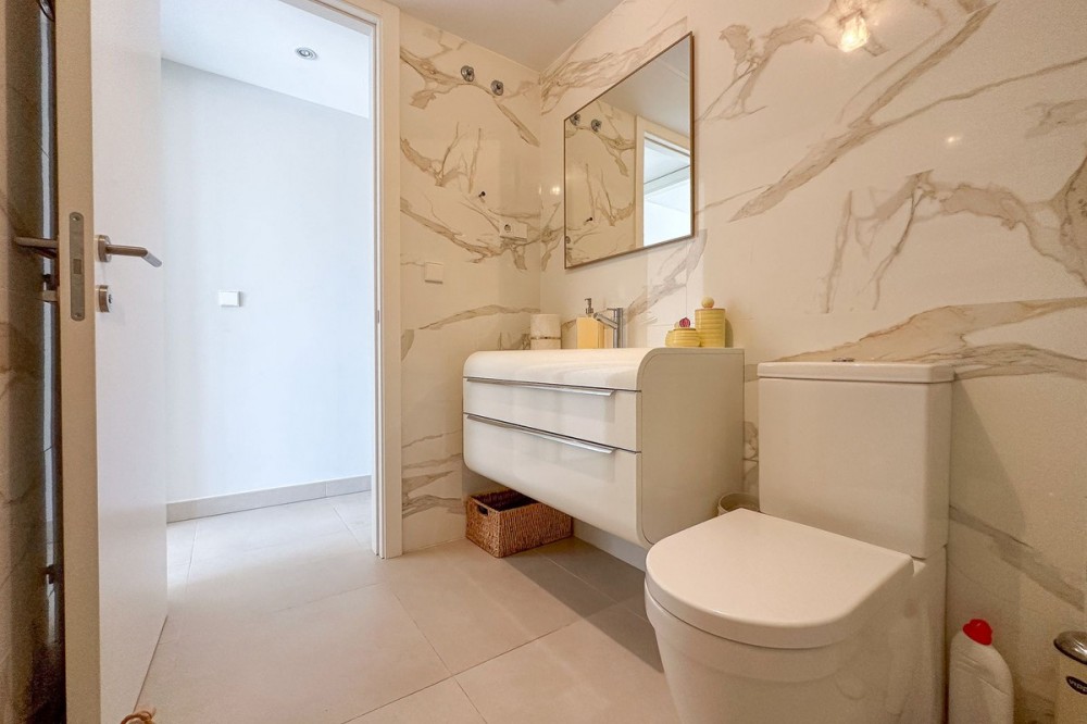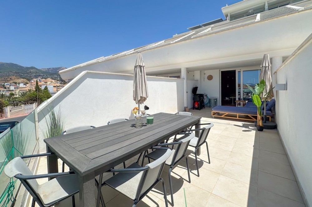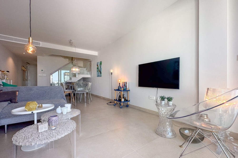 - The apartment does not have a tourist license and the owner's association does not allow it. Wonderful 2 bedroom duplex apartment from 2019 with sea and mountain views for sale, in the fantastic relaxing Monte Paraiso complex (Torreblanca). The property, is south-west facing and offers two fantastic terraces, with plenty of opportunities for relaxation and enjoying the sun. One on the 1st floor 11.5 m² with a panoramic view over the Mediterranean Sea and Fuengirola town, on the horizon you can see the mountain peaks from Morocco. On the same floor, you will find two bedrooms and a bathroom, from the master bedroom there is access to the terrace. The terrace on the ground floor is 31.5 m², of which 11.4 m² is covered, here you can enjoy the sun from the morning until it sets. The large size of the terrace makes it possible to have lounge furniture, a large dining table, sunbathing, there is also the possibility of a cold bath undisturbed by neighbours. In the evening, there is the opportunity to see the sun set behind the Mijas mountains, as well as a view over the Mediterranean Sea, Fuengirola town and the mountain peaks. In addition, there is a nice large well-functioning kitchen and toilet. The home includes 2 parking spaces at the same level as the apartment, as well as a storage room. The complex offers a nice large pool with a view (city, sea and mountains), children's pool, sauna, fitness, barbecue and common room with internet and printer. When you leave the main entrance of the complex, you will find the restaurant Case Pepe, where you can enjoy a good dinner and meet the others from the area. The bus goes from the main entrance to Torreblanca station and Los Boliches. A brisk walk to the beach takes approx. 15 min., on the way you pass Torreblanca train station.