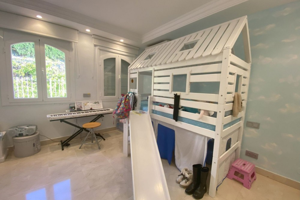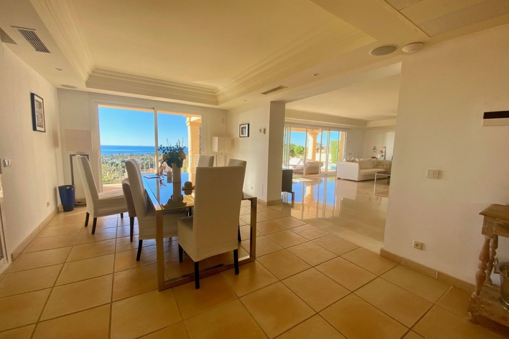 - Discover the epitome of luxury living in Elviria, Marbella East, with this captivating south-facing villa boasting unrivaled panoramic views of the Mediterranean Sea. This cozy andalucian villa, enveloped by a internal courtyard, features seven generously sized bedrooms, six of which boast en-suite, all spanning a grand total of 711 sqm. Nestled within a secure gated community on a substantial 1,019 sqm plot, the residence offers a private garden, expansive pool, and sea-view terraces, ensuring a sanctuary of exclusivity. The ground floor unveils a luminous living space, a gourmet kitchen, and the opulent master suite, while the basement hosts a leisure haven with a games room, TV lounge, gym, sauna, laundry, and additional bedrooms. An idyllic family haven in the heart of the verdant paradise of Elviria, this residence promises the perfect blend of elegance and comfort. Seize the opportunity to call this enchanting property your home, where every moment is embraced by the allure of Mediterranean splendor.