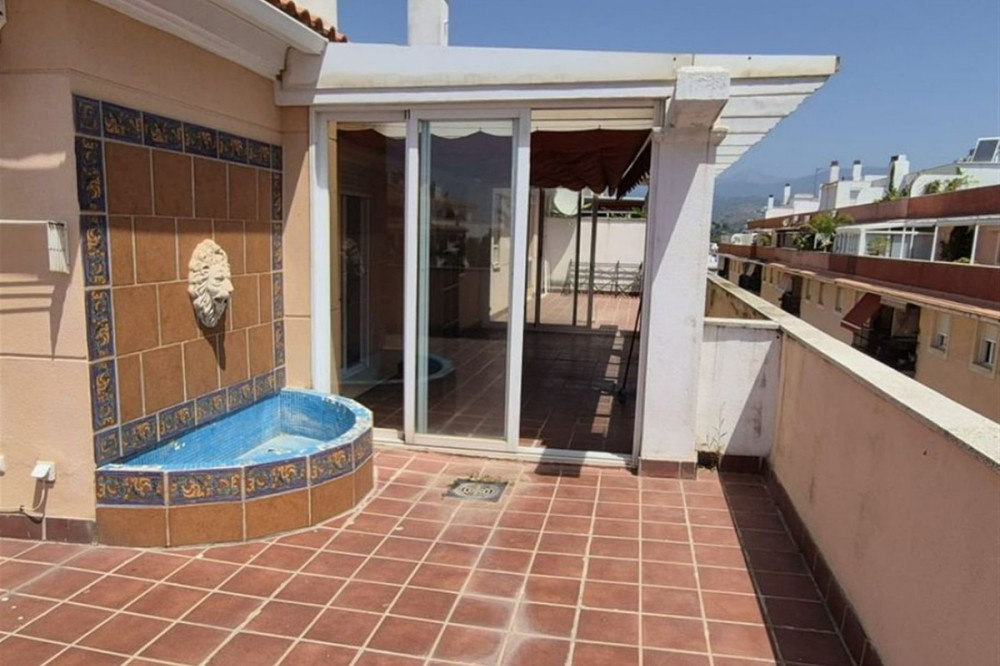 - Exceptional Penthouse in the Heart of San Pedro Alcántara with Panoramic Mediterranean Views Discover this unique opportunity to own a stunning penthouse in the vibrant center of San Pedro Alcántara. Boasting breathtaking open views and a direct line of sight to the Mediterranean Sea, this south-facing residence offers sun-drenched living all day long. Featuring 3 spacious bedrooms and 2 full bathrooms, this elegant home includes an independent kitchen, marble flooring, air conditioning, and a cozy fireplace. The highlight is the expansive 87m² private terrace—ideal for relaxing, entertaining, or enjoying al fresco meals with friends and family. Additional features include a private storage room and an underground parking space, offering both convenience and peace of mind. Perfectly located within walking distance to all essential services—schools, restaurants, markets, supermarkets, public transportation, green spaces, and more—this property allows you to enjoy a car-free lifestyle in one of Marbella’s most sought-after neighborhoods. Whether you're searching for a luxurious primary residence, a holiday retreat, or a secure investment with strong rental potential, this penthouse offers it all. Just minutes from the beach and renowned golf courses, in an area of consistently high demand for both short- and long-term rentals. A rare gem on the market—don’t miss out on this prime opportunity.