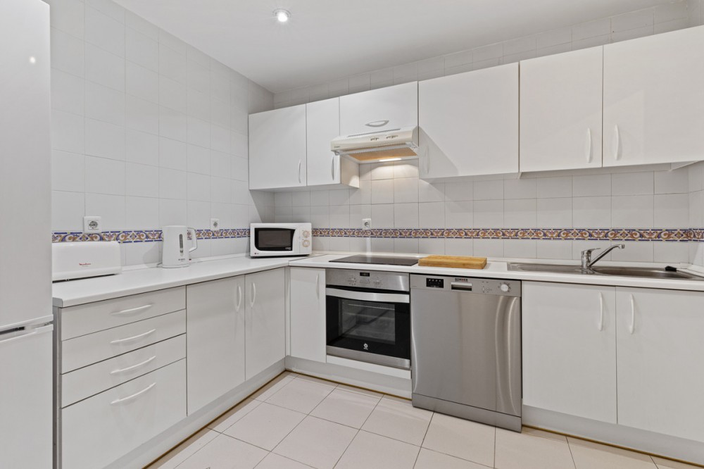 - Located within a very pleasant, secure residential community offering 24/7 security, this beautifully presented apartment combines comfort and resort-style amenities. Residents enjoy access to three swimming pools, tennis and paddle tennis courts, and beautifully maintained mature gardens. The apartment features two generously sized bedrooms, both with en-suite bathrooms and fitted wardrobes. The master bedroom opens onto a sunny, covered terrace that overlooks the communal gardens and pool—perfect for relaxing or entertaining. The second bedroom offers added charm with a Juliette terrace, allowing natural light and garden views to flood the space. Inside, the apartment is bright and inviting, with air conditioning throughout for year-round comfort. The spacious living area provides direct access to the terrace, garden, and pool area, enhancing the sense of indoor-outdoor living. An exterior awning offers shade on sunnier days, extending the use of the terrace. Additional features include communal parking, direct access to recreational facilities, and a sun-drenched layout that makes this apartment a true gem in one of the area’s most sought-after communities.