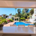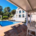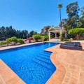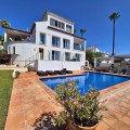 - Classical Villa with Stunning Sea Views in La Paloma, Manilva Discover this exceptional classical-style villa that perfectly blends elegance, comfort, and breathtaking sea views, ideally located in the prestigious residential area of La Paloma in Manilva. As you step inside, you're welcomed by a spacious entrance hall where the beautiful Mediterranean views immediately capture your attention. You’ll find a fully equipped kitchen with a separate laundry room, a spacious living room with fireplace, and a dining room that connects directly to a covered terrace ideal for indoor-outdoor living. There's also a guest toilet and another covered terrace accessible from several rooms. The master suite occupies the entire upper floor, offering ultimate privacy. It features a charming dressing area with high vaulted ceilings and exposed wooden beams, adding warmth and character to the space. An en-suite bathroom and stunning sea views complete this peaceful and private retreat. On the lower ground floor, you’ll find four additional bedrooms and a second living room, which can easily be converted into a sixth bedroom. From here, step out onto another terrace that leads to the spacious pool area and garden, designed for pure relaxation with various lounge zones, a pergola, a pool bar, and an outdoor dining area — perfect for entertaining. The villa boasts a beautifully modernized interior while retaining its classical charm. Multiple terraces offer captivating views of the sea, surrounding countryside, and mountains, creating a unique atmosphere of peace and luxury. A private covered parking area within the plot provides space for two cars, adding convenience to this remarkable home. Located within walking distance to the beach and the popular Chiringuito Tubalitas, and close to the picturesque beaches and vibrant towns of Sotogrande and Estepona, this villa offers the perfect blend of tranquility and accessibility. An unparalleled opportunity to enjoy luxurious Mediterranean living in one of the Costa del Sol’s most desirable locations.