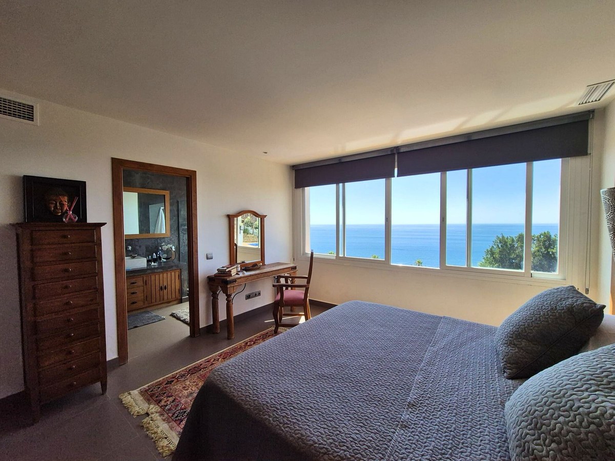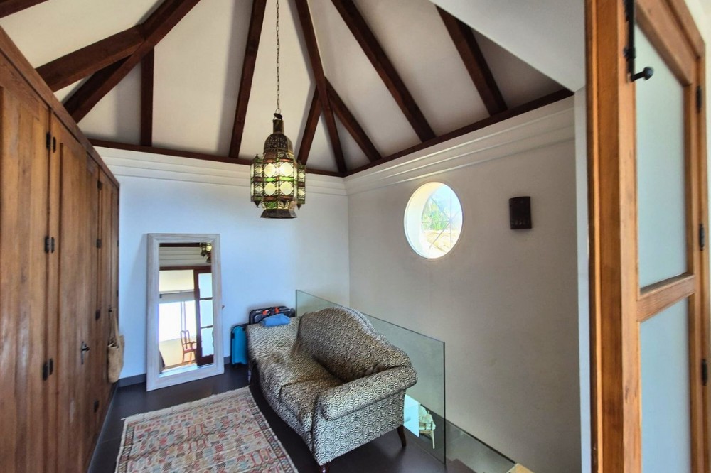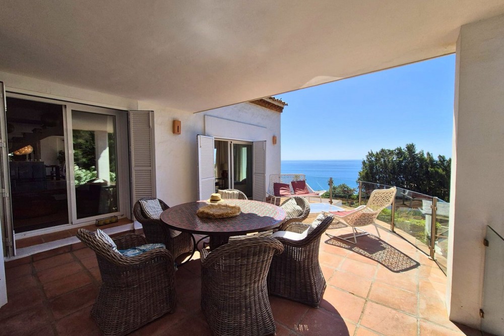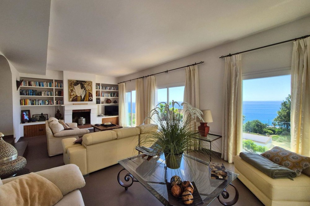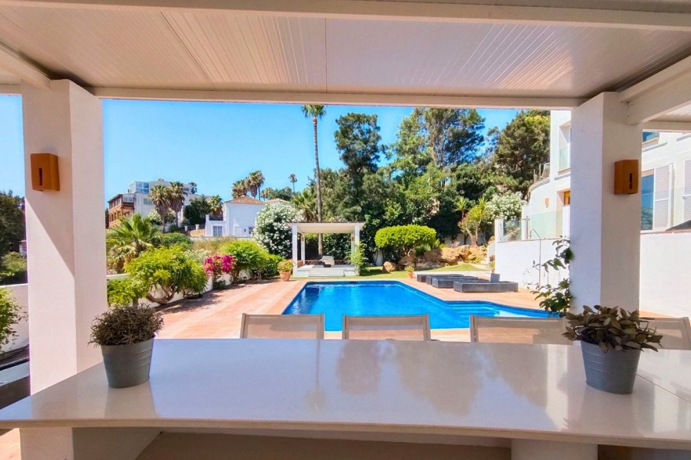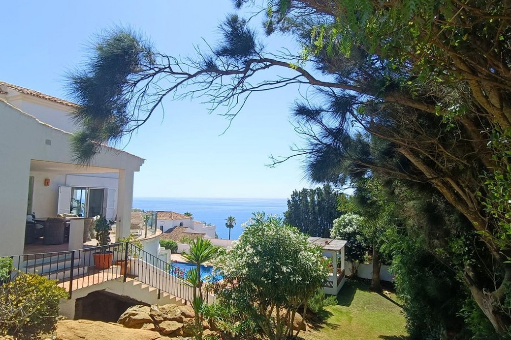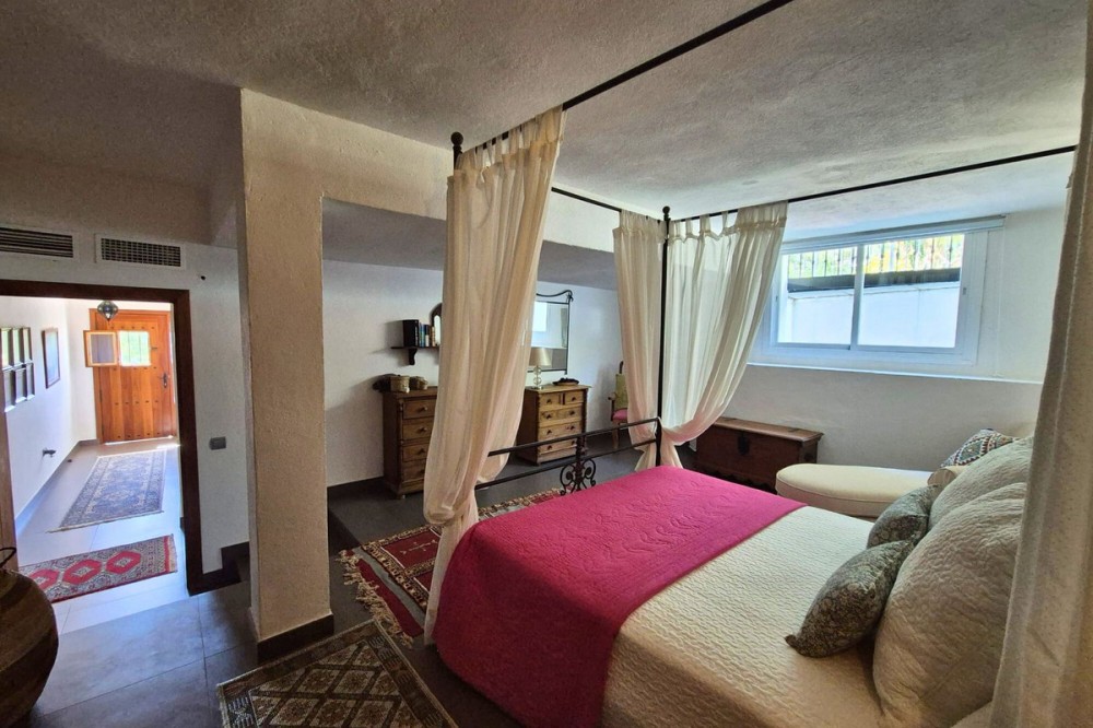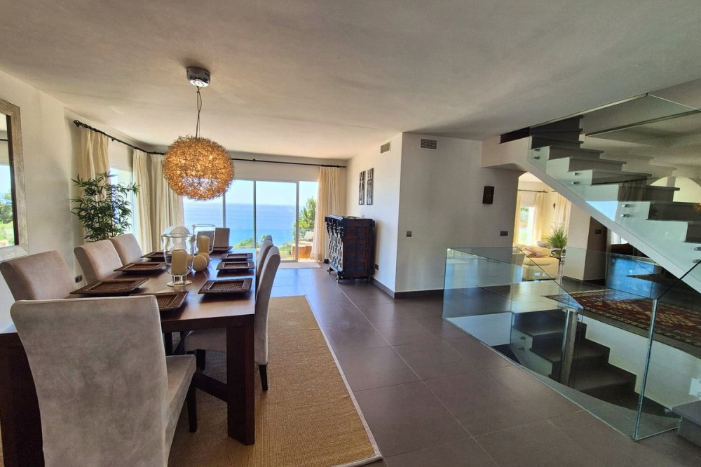 - Classical Villa with Stunning Sea Views in La Paloma, Manilva Discover this exceptional classical-style villa that perfectly blends elegance, comfort, and breathtaking sea views, ideally located in the prestigious residential area of La Paloma in Manilva. As you step inside, you're welcomed by a spacious entrance hall where the beautiful Mediterranean views immediately capture your attention. You’ll find a fully equipped kitchen with a separate laundry room, a spacious living room with fireplace, and a dining room that connects directly to a covered terrace ideal for indoor-outdoor living. There's also a guest toilet and another covered terrace accessible from several rooms. The master suite occupies the entire upper floor, offering ultimate privacy. It features a charming dressing area with high vaulted ceilings and exposed wooden beams, adding warmth and character to the space. An en-suite bathroom and stunning sea views complete this peaceful and private retreat. On the lower ground floor, you’ll find four additional bedrooms and a second living room, which can easily be converted into a sixth bedroom. From here, step out onto another terrace that leads to the spacious pool area and garden, designed for pure relaxation with various lounge zones, a pergola, a pool bar, and an outdoor dining area — perfect for entertaining. The villa boasts a beautifully modernized interior while retaining its classical charm. Multiple terraces offer captivating views of the sea, surrounding countryside, and mountains, creating a unique atmosphere of peace and luxury. A private covered parking area within the plot provides space for two cars, adding convenience to this remarkable home. Located within walking distance to the beach and the popular Chiringuito Tubalitas, and close to the picturesque beaches and vibrant towns of Sotogrande and Estepona, this villa offers the perfect blend of tranquility and accessibility. An unparalleled opportunity to enjoy luxurious Mediterranean living in one of the Costa del Sol’s most desirable locations.