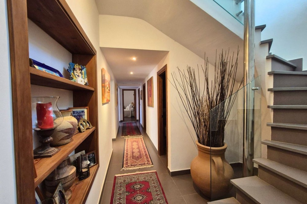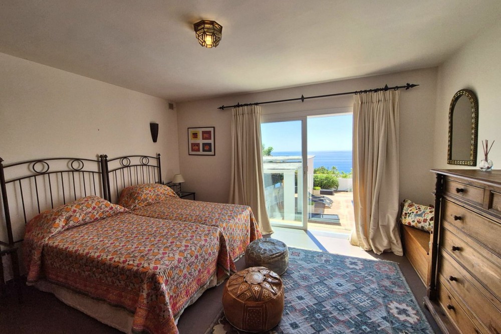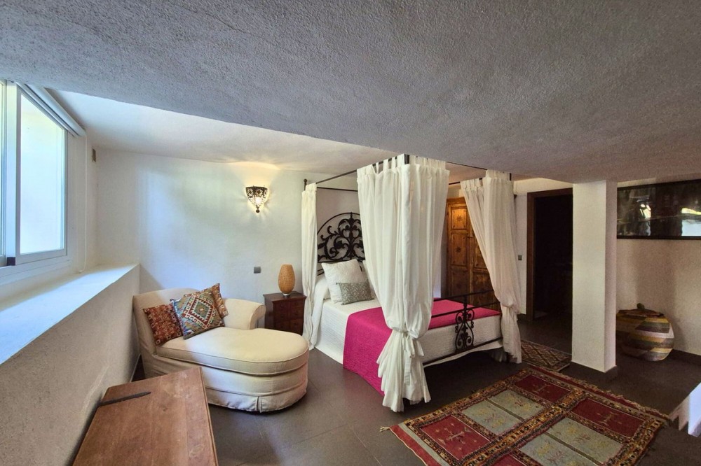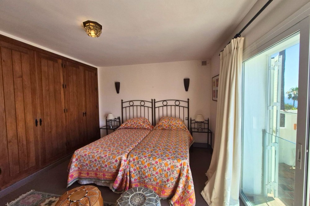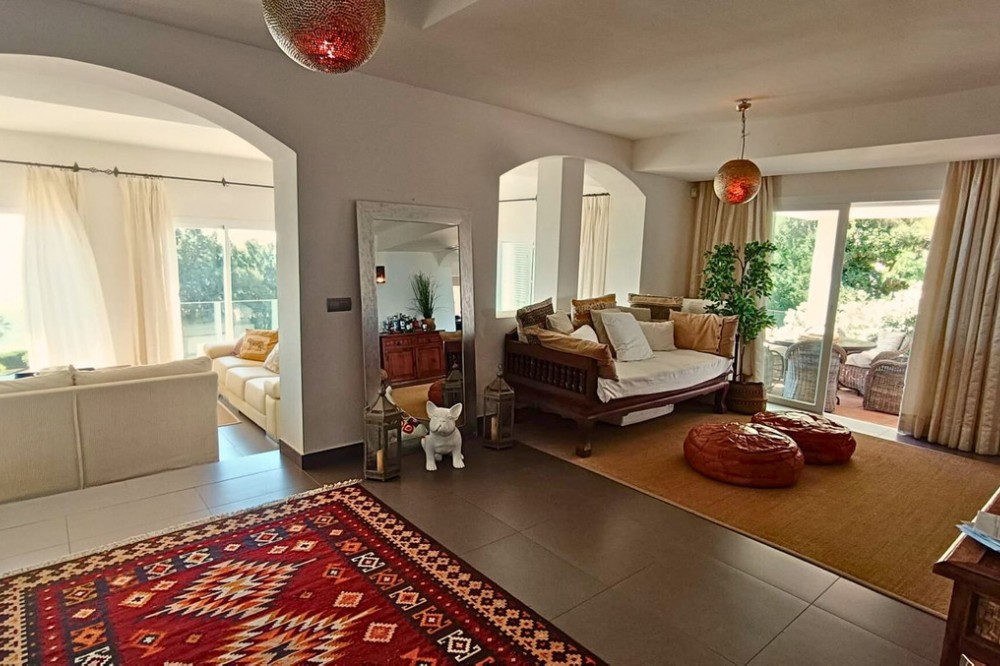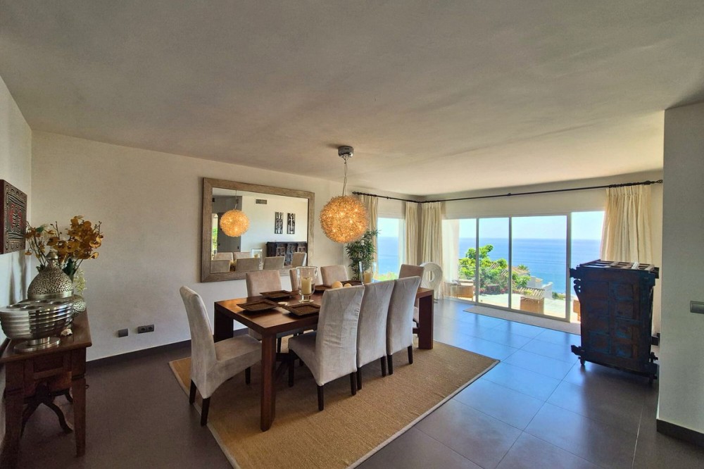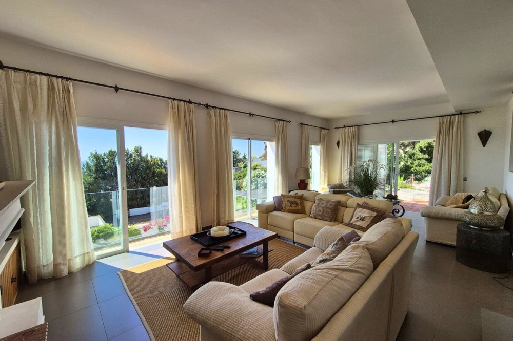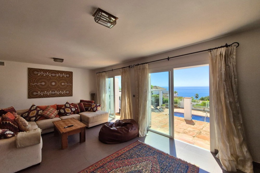 - Classical Villa with Stunning Sea Views in La Paloma, Manilva Discover this exceptional classical-style villa that perfectly blends elegance, comfort, and breathtaking sea views, ideally located in the prestigious residential area of La Paloma in Manilva. As you step inside, you're welcomed by a spacious entrance hall where the beautiful Mediterranean views immediately capture your attention. You’ll find a fully equipped kitchen with a separate laundry room, a spacious living room with fireplace, and a dining room that connects directly to a covered terrace ideal for indoor-outdoor living. There's also a guest toilet and another covered terrace accessible from several rooms. The master suite occupies the entire upper floor, offering ultimate privacy. It features a charming dressing area with high vaulted ceilings and exposed wooden beams, adding warmth and character to the space. An en-suite bathroom and stunning sea views complete this peaceful and private retreat. On the lower ground floor, you’ll find four additional bedrooms and a second living room, which can easily be converted into a sixth bedroom. From here, step out onto another terrace that leads to the spacious pool area and garden, designed for pure relaxation with various lounge zones, a pergola, a pool bar, and an outdoor dining area — perfect for entertaining. The villa boasts a beautifully modernized interior while retaining its classical charm. Multiple terraces offer captivating views of the sea, surrounding countryside, and mountains, creating a unique atmosphere of peace and luxury. A private covered parking area within the plot provides space for two cars, adding convenience to this remarkable home. Located within walking distance to the beach and the popular Chiringuito Tubalitas, and close to the picturesque beaches and vibrant towns of Sotogrande and Estepona, this villa offers the perfect blend of tranquility and accessibility. An unparalleled opportunity to enjoy luxurious Mediterranean living in one of the Costa del Sol’s most desirable locations.